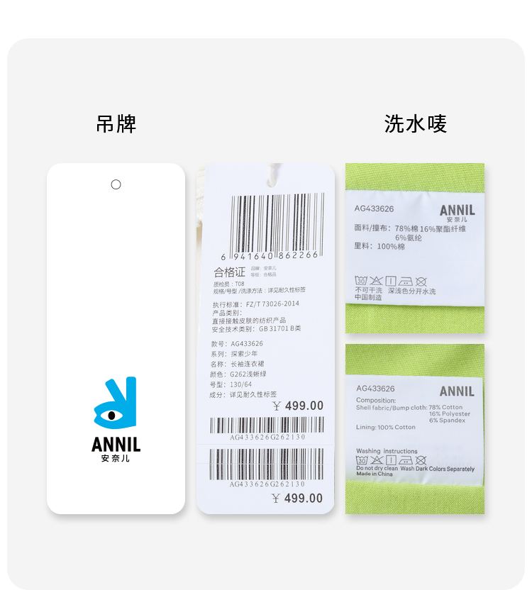 女童轻运动风长袖裙子安奈儿童装实体店同款AG433626