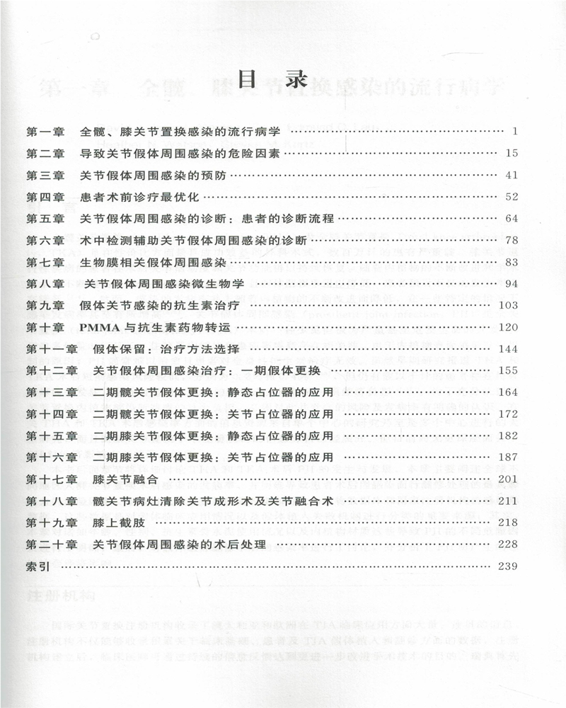 关节假体周围感染的出现对于患者和临床医师而言都是令人遗憾的。虽然关节假体感染并不常见,但随着关节置换手术量的不断增多,虽然在总的假体植入手术量中所占百分比较小,但实际的感染数量仍然较大。因此,对每个关节置换手术医师而言,掌握一个对此类感染的诊治流程是十分有必要的。本书作者对国际上关节假体感染专家组的相关经验进行了总结,这有助于医师对此棘手问题的预防、诊断、治疗和处理。读者会发现,如按照本书提出的原则处理,则患者会获得持续的、令人满意的治疗效果。