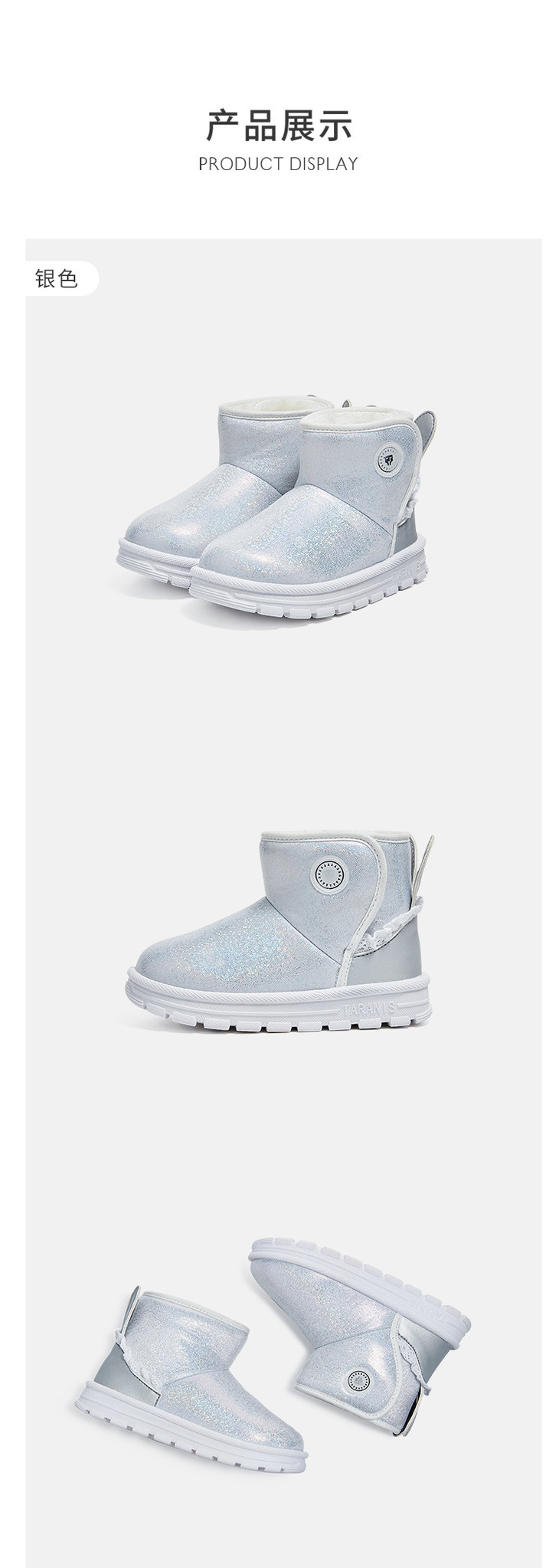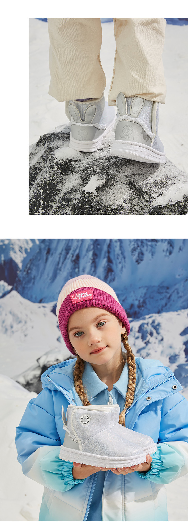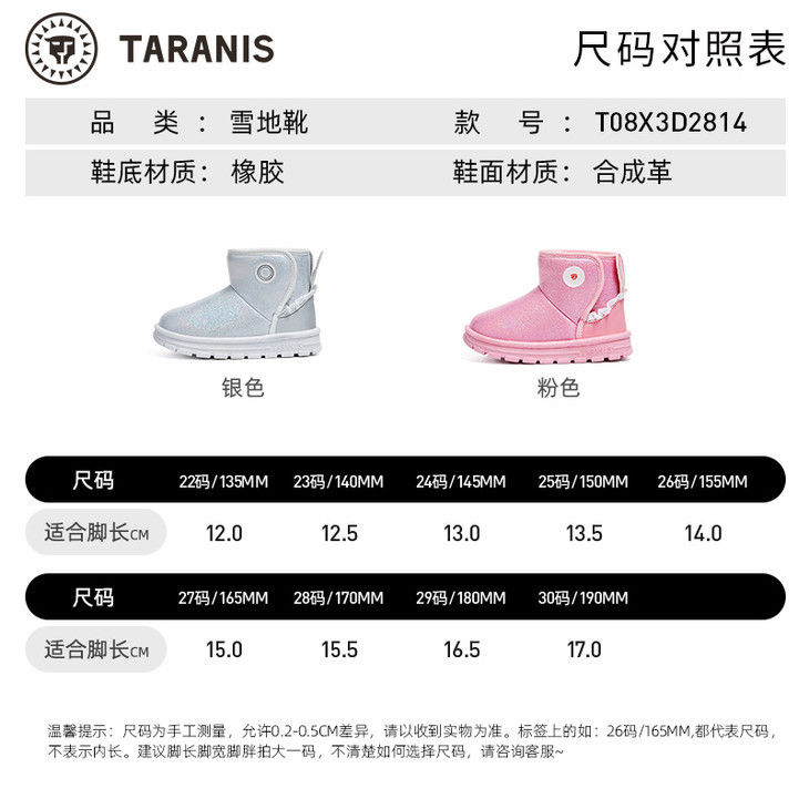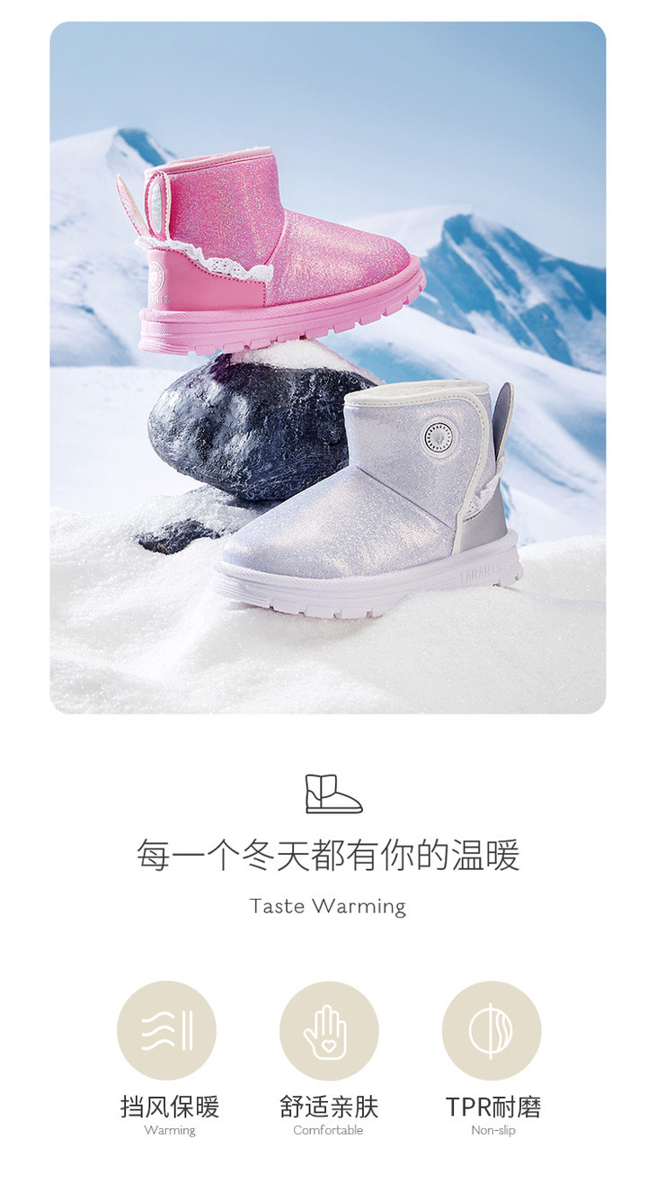【泰兰尼斯】小童段女童可爱兔耳防冻保暖雪地靴T08X3D2814