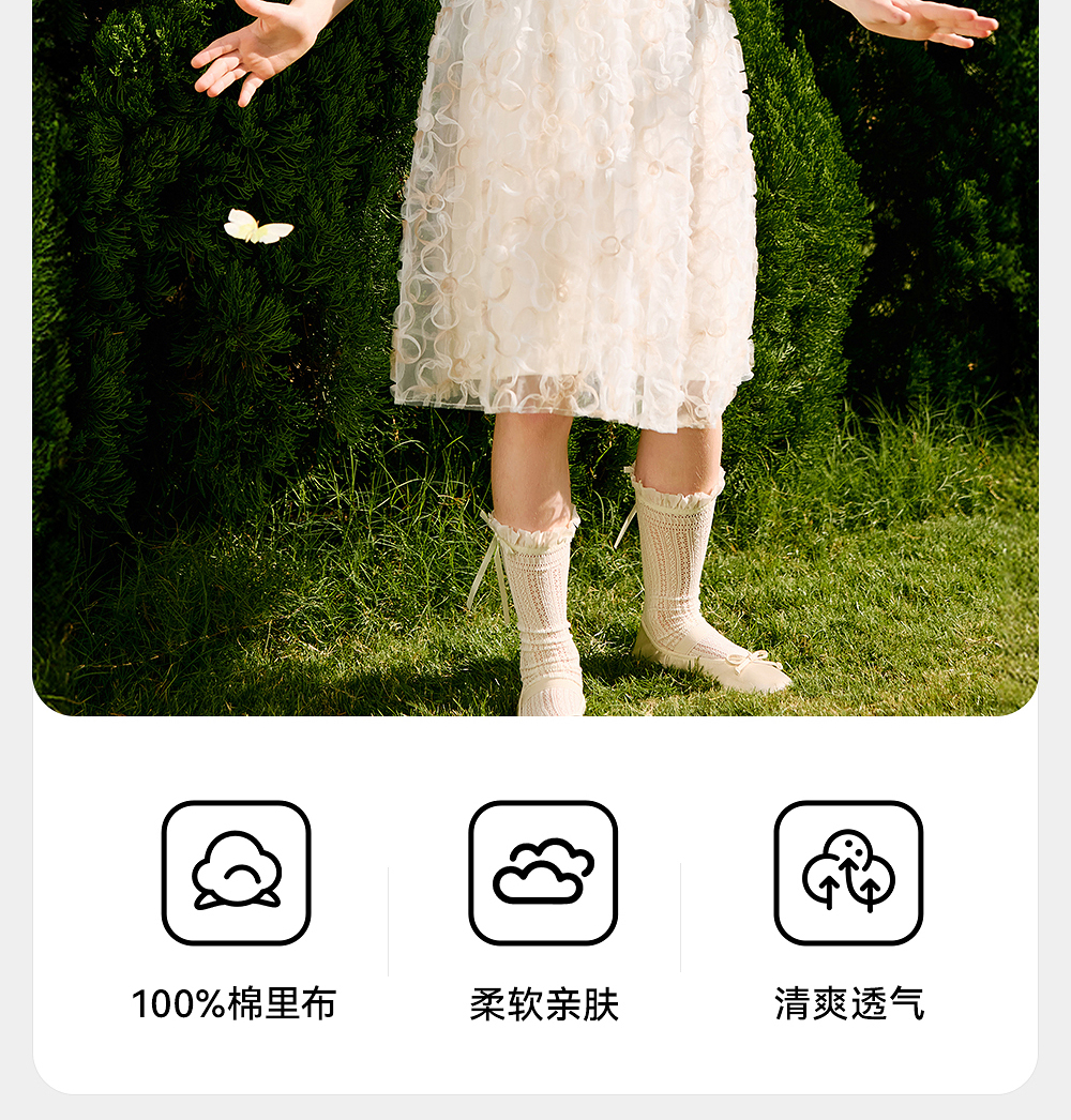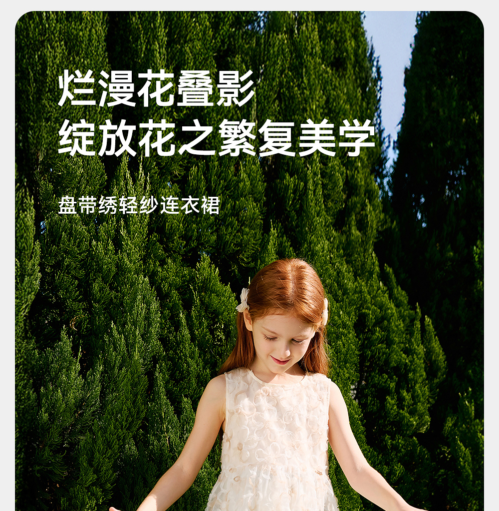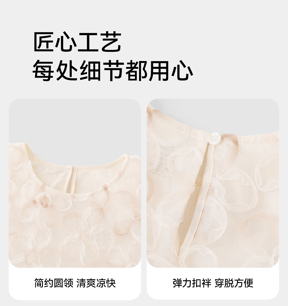 英氏儿童裙子夏季透气网纱女童公主裙可爱纯棉裙子2025新款连衣裙