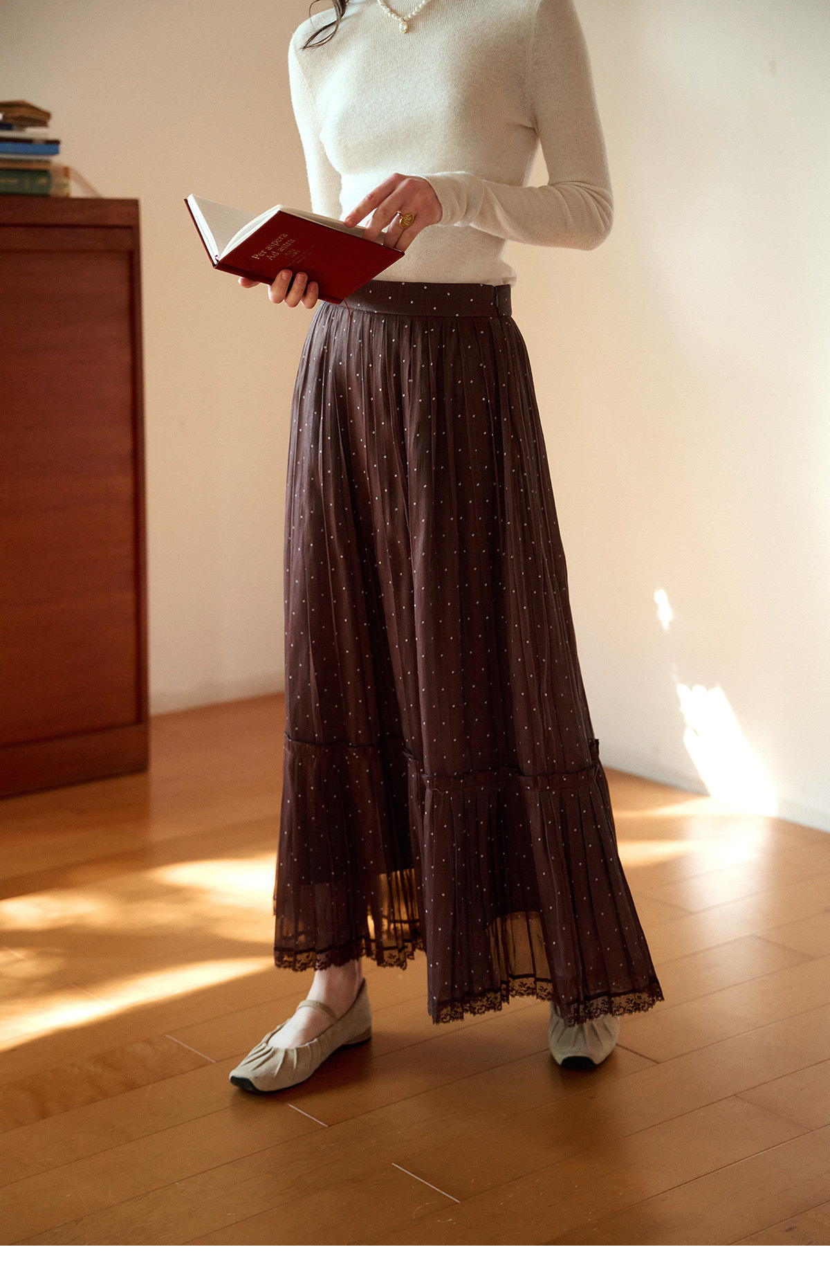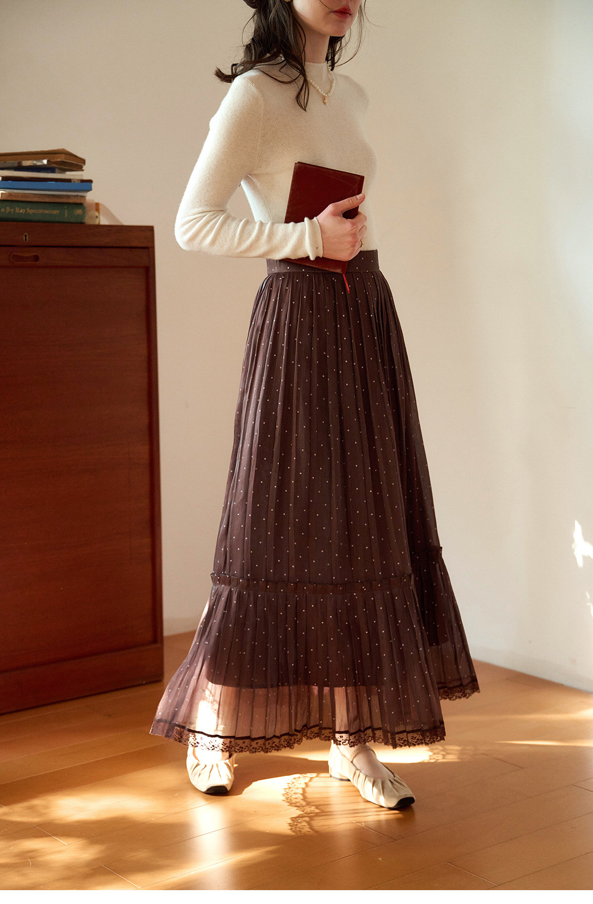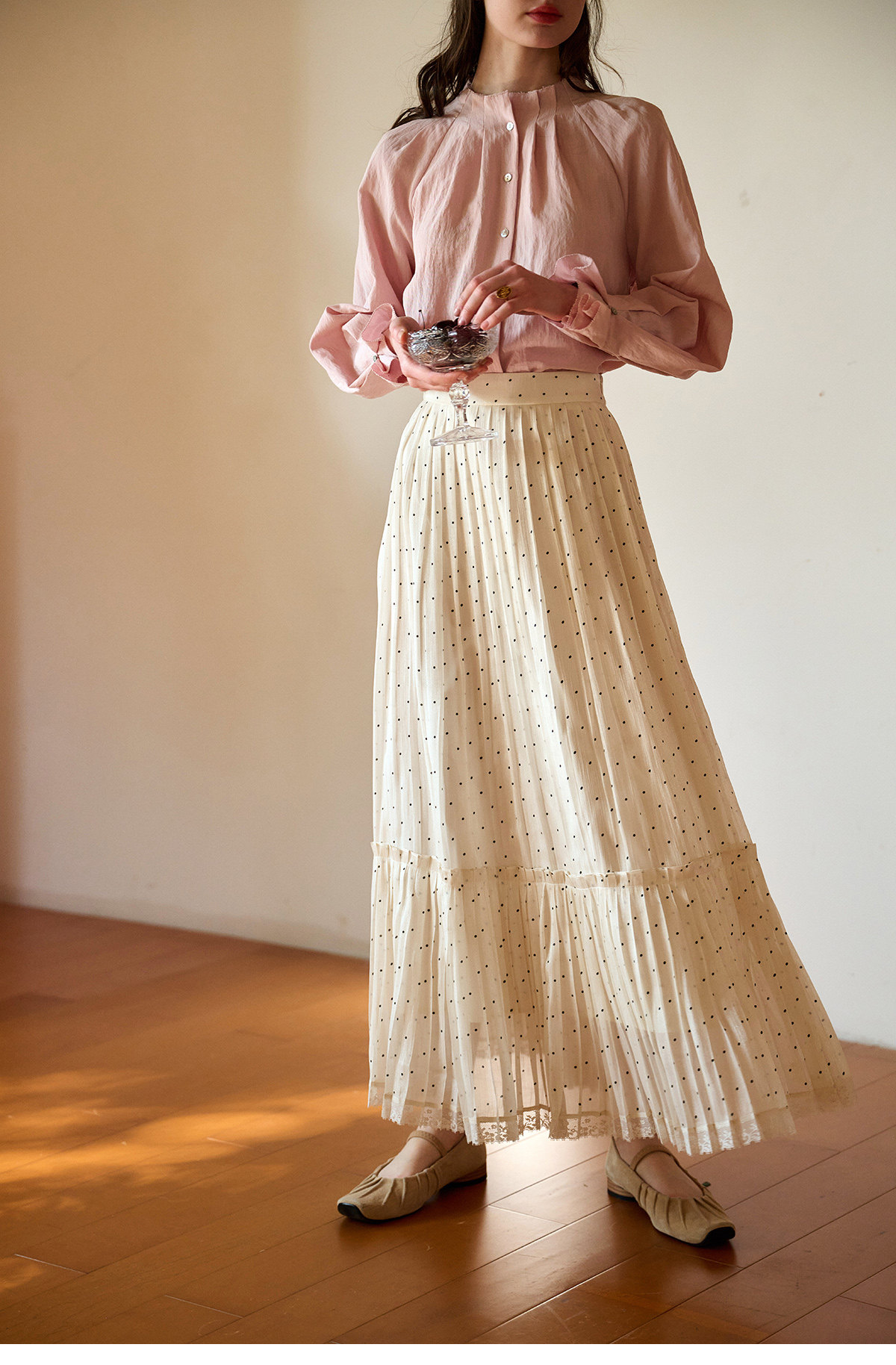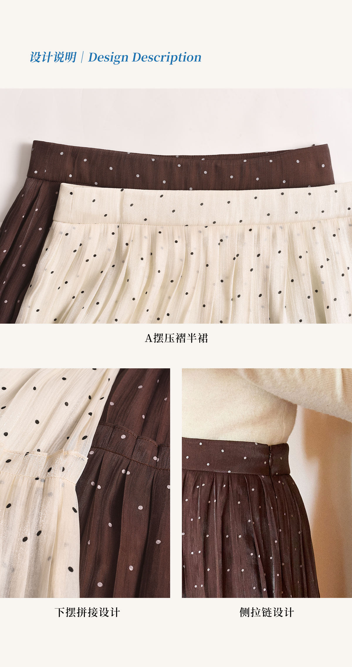 (小眠专属)SimpleRetro牛奶浓巧·法式复古细闪波点半身裙