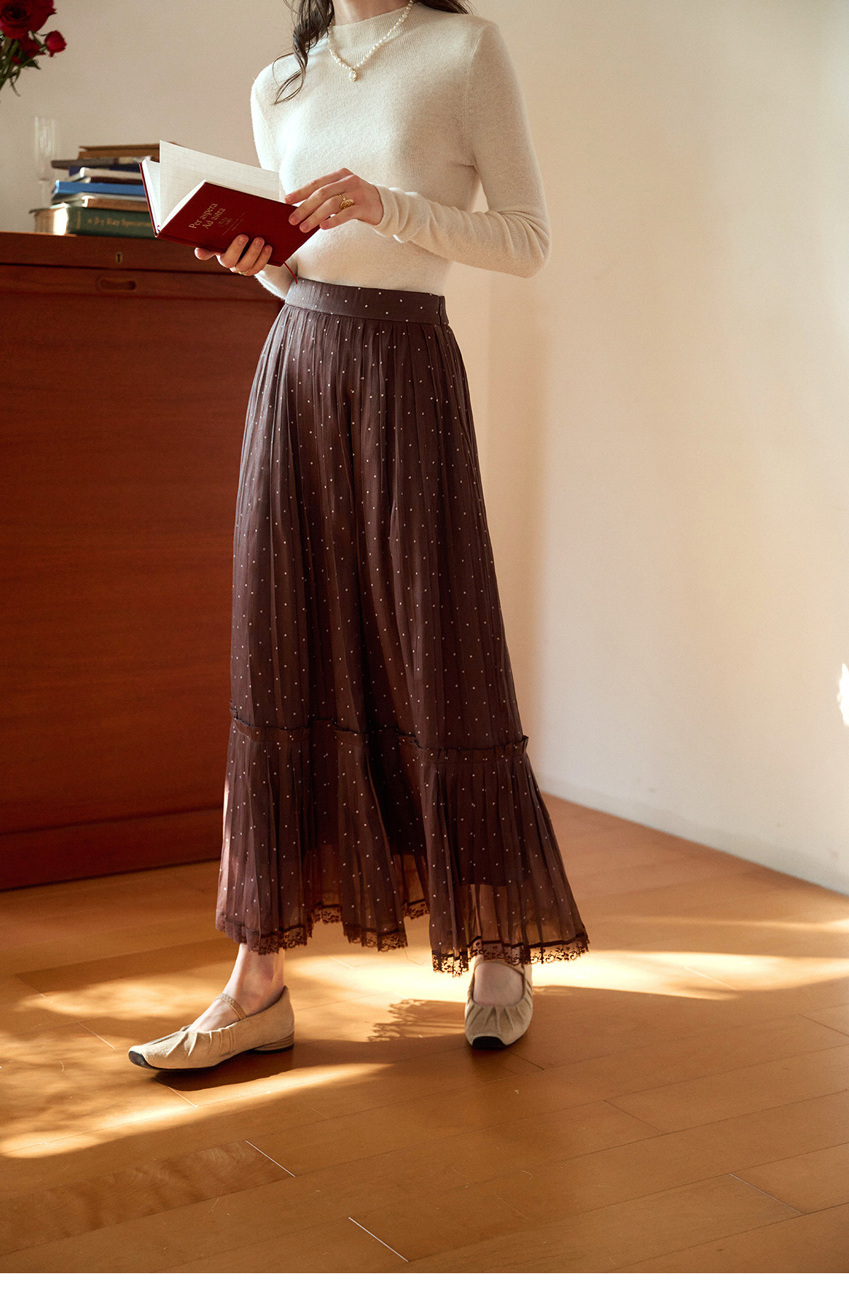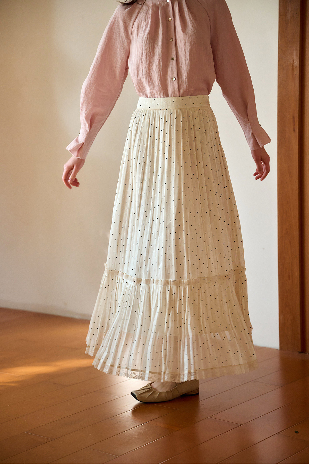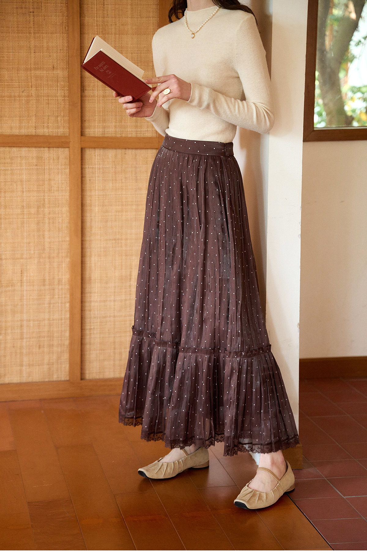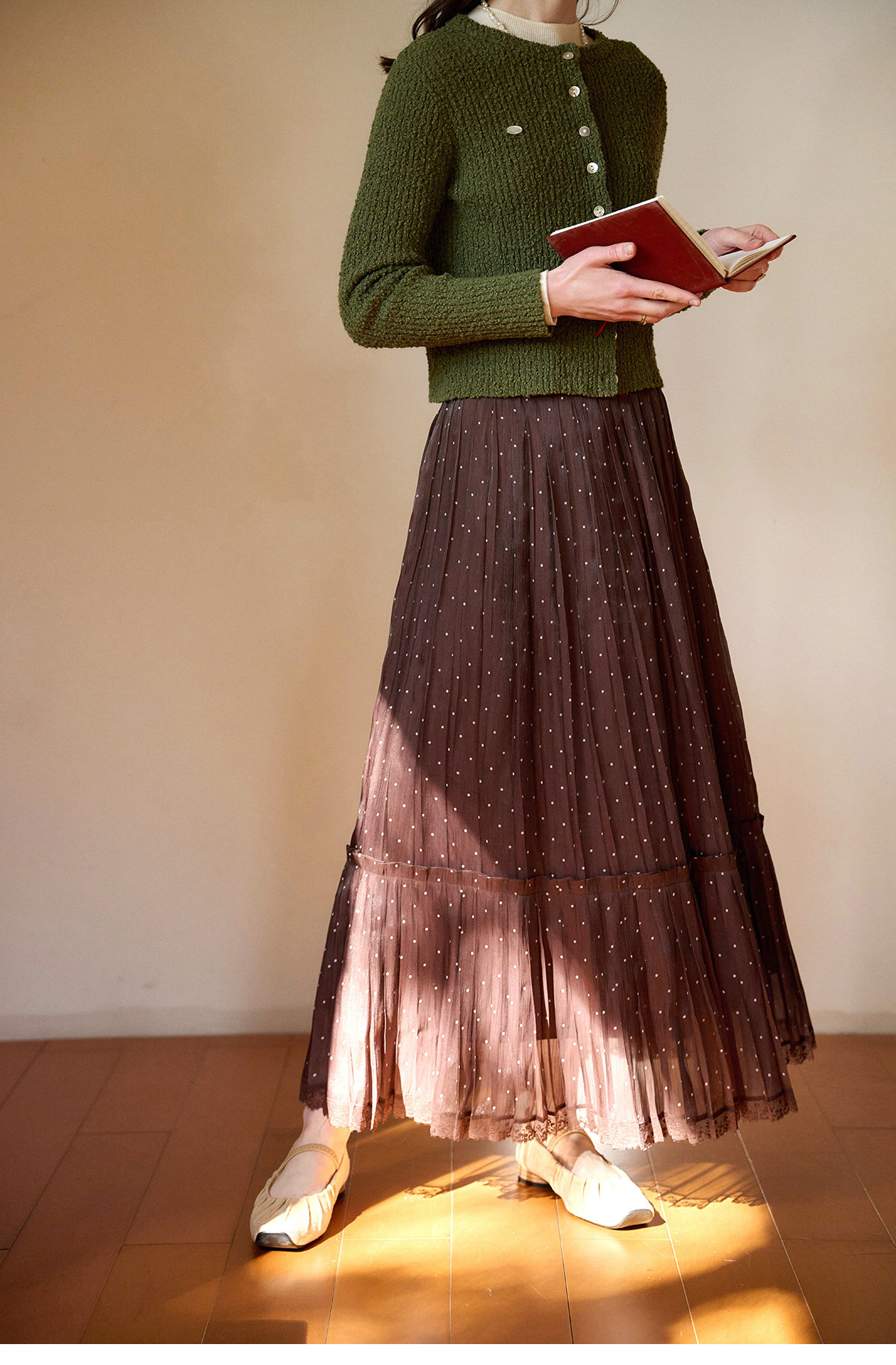 (小眠专属)SimpleRetro牛奶浓巧·法式复古细闪波点半身裙