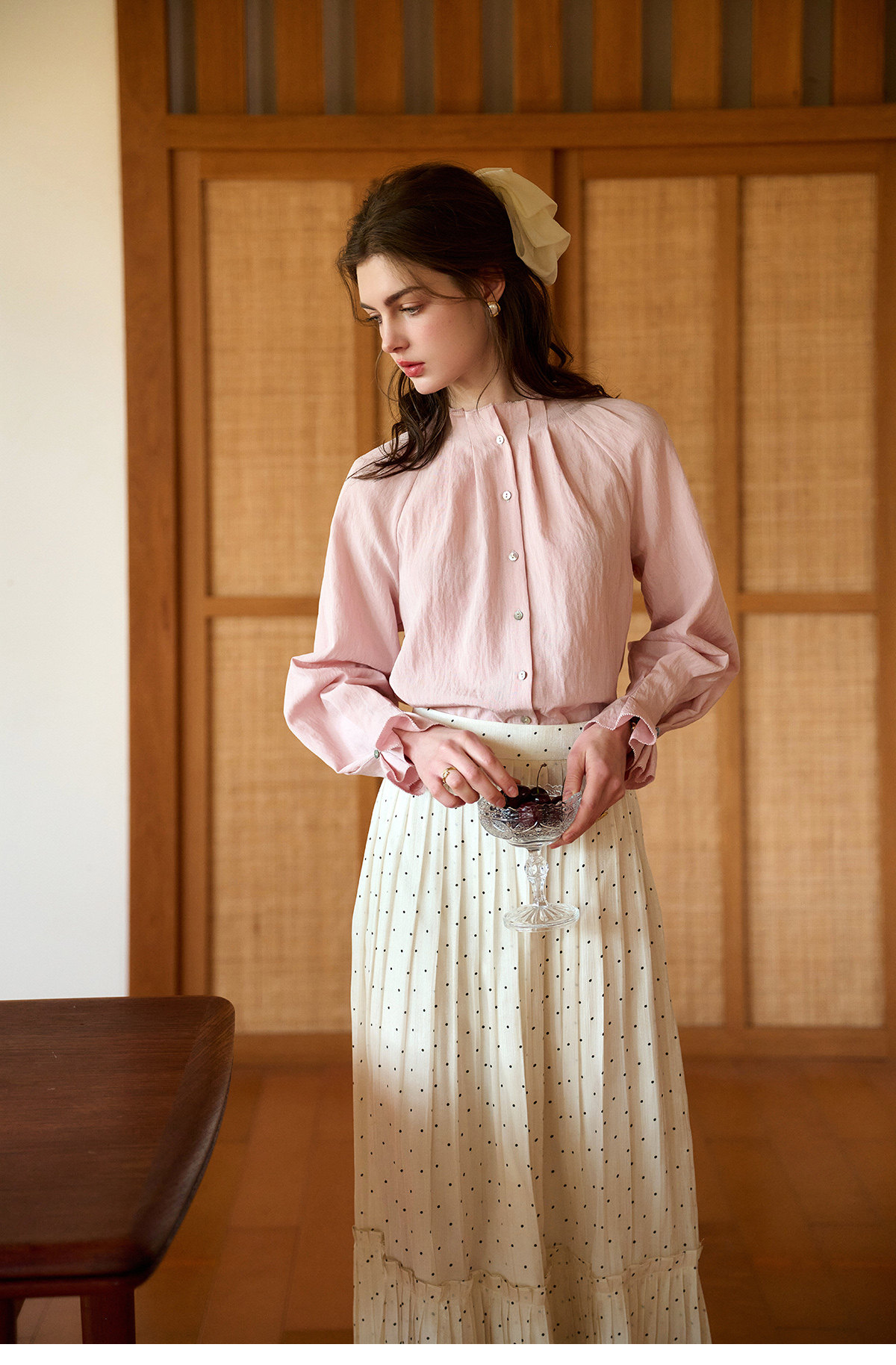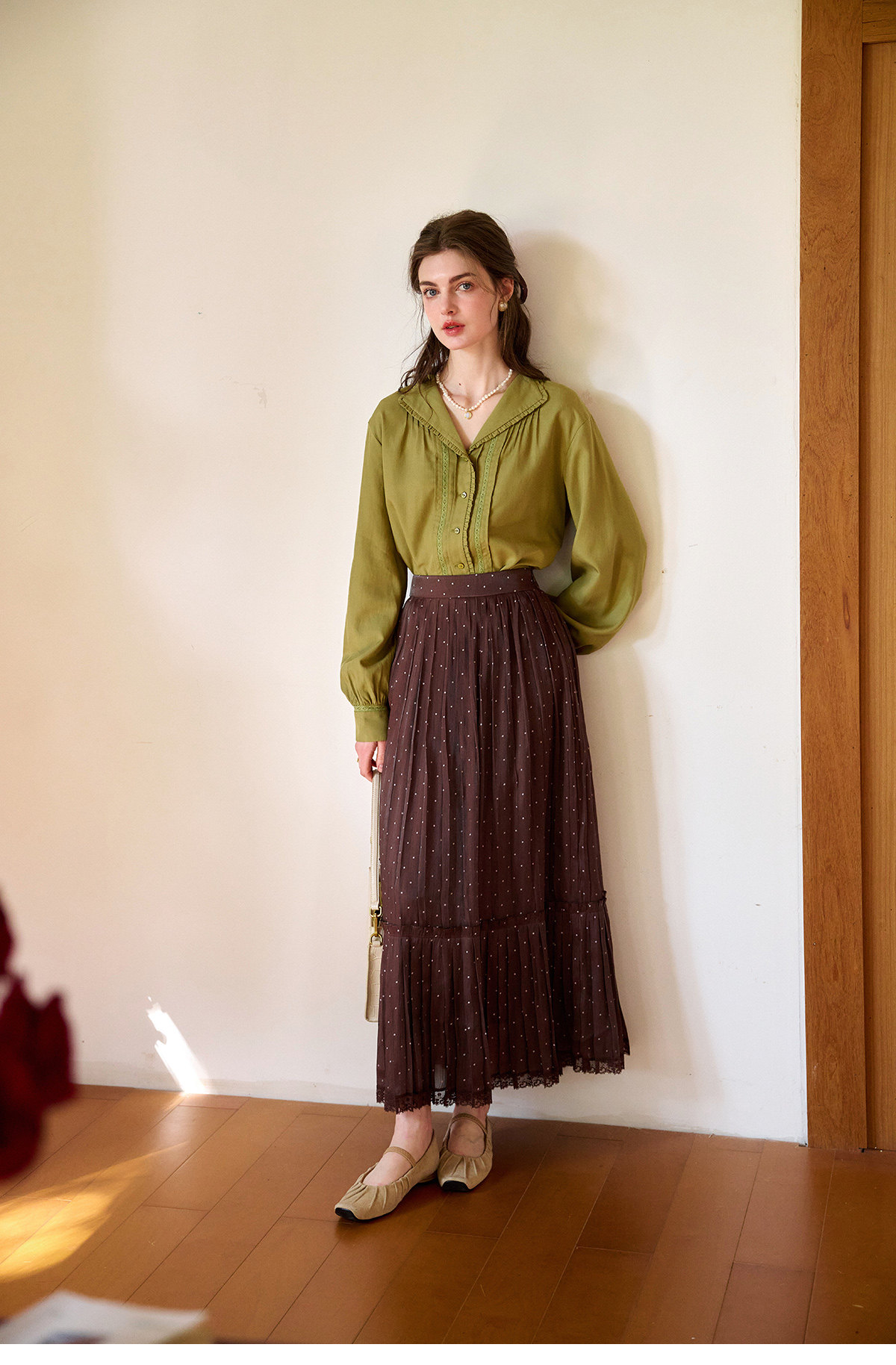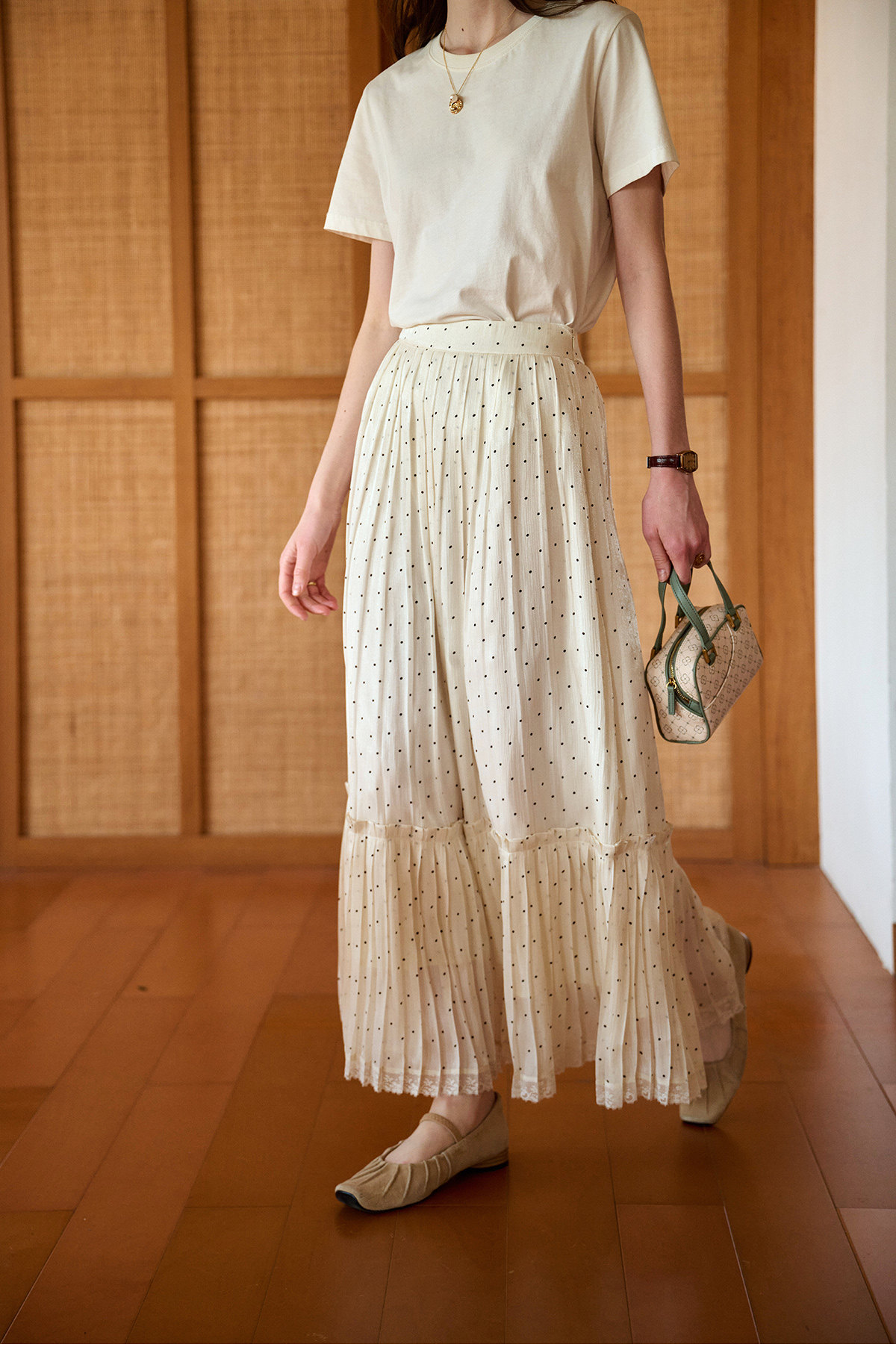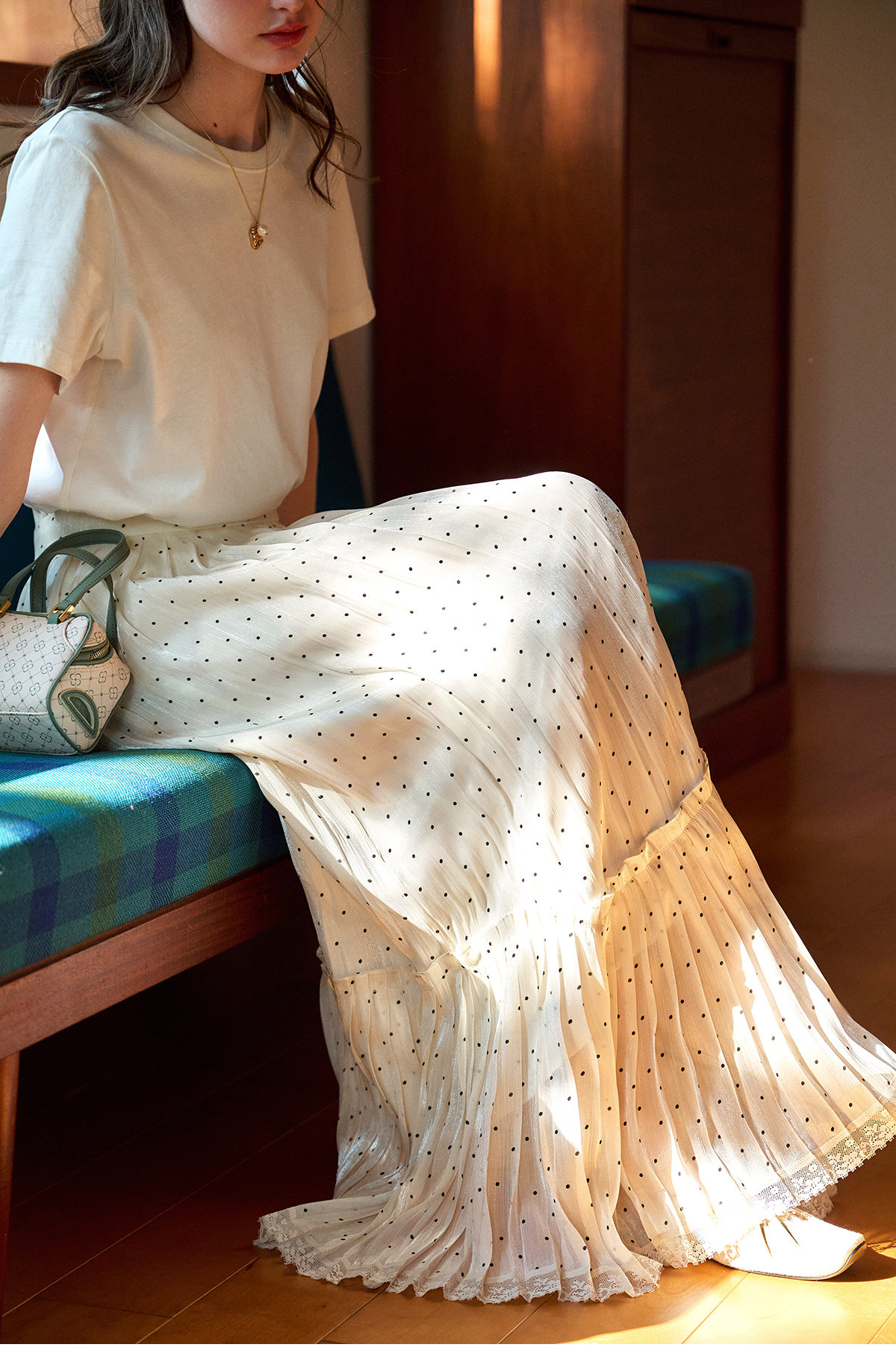 (小眠专属)SimpleRetro牛奶浓巧·法式复古细闪波点半身裙