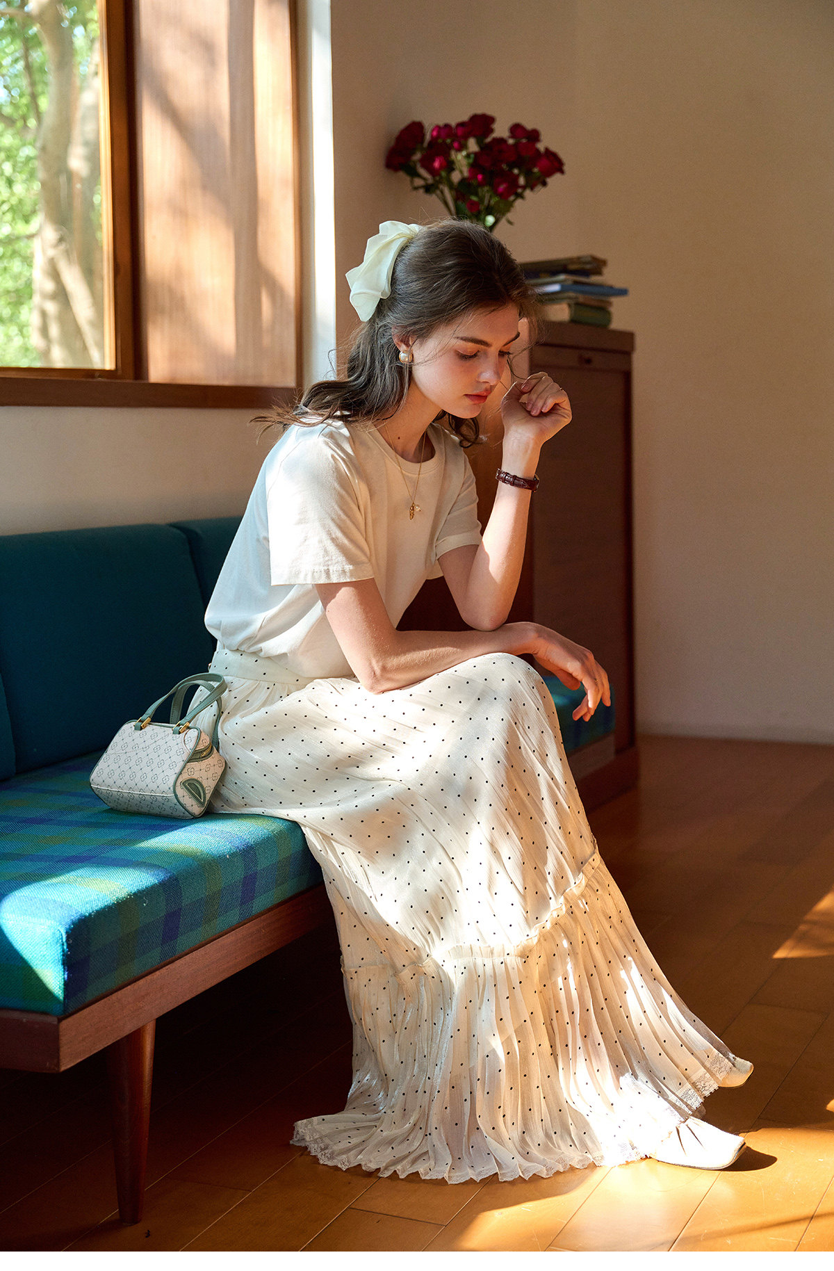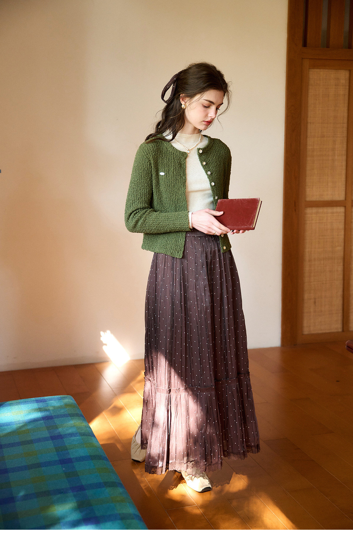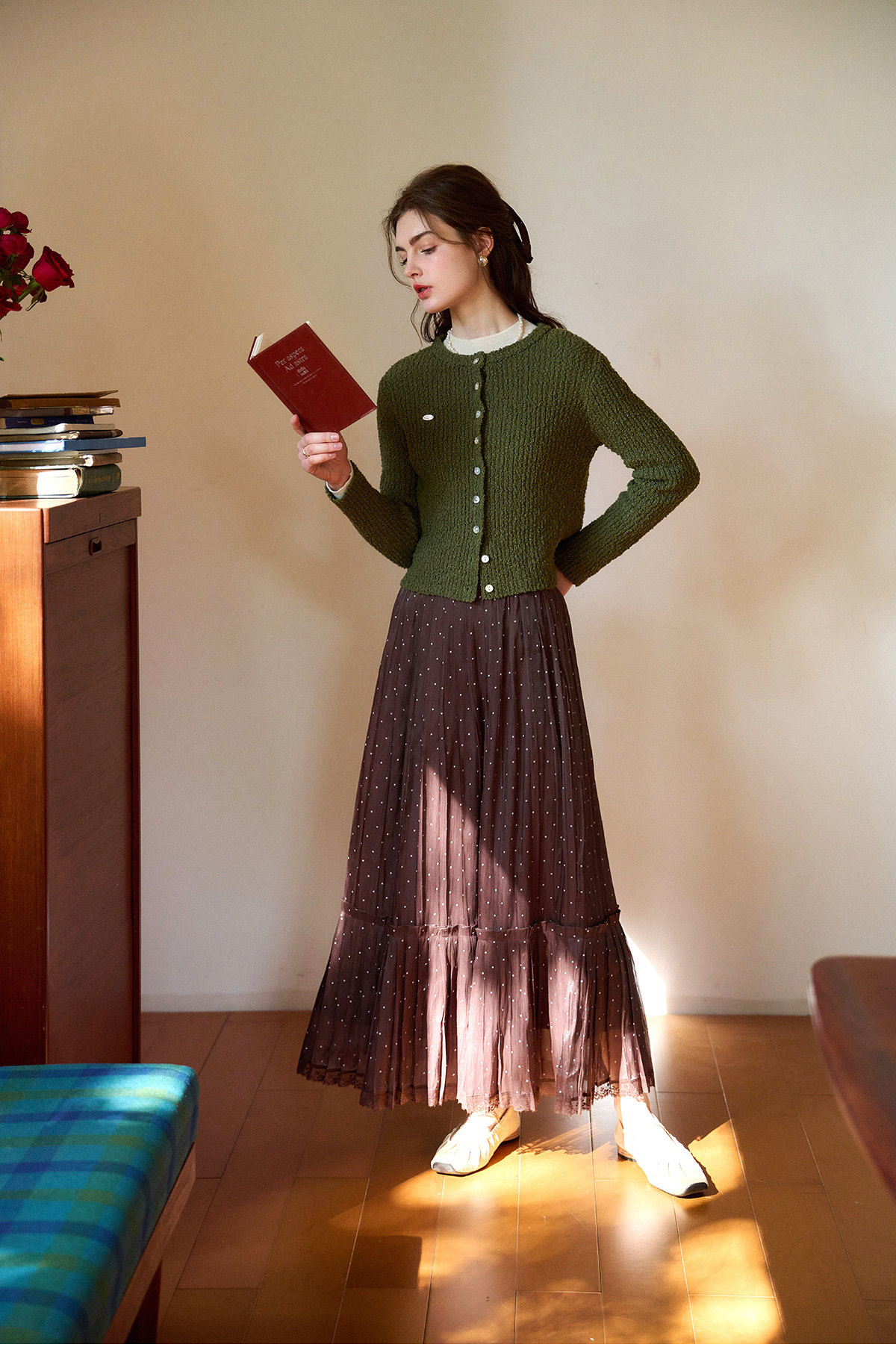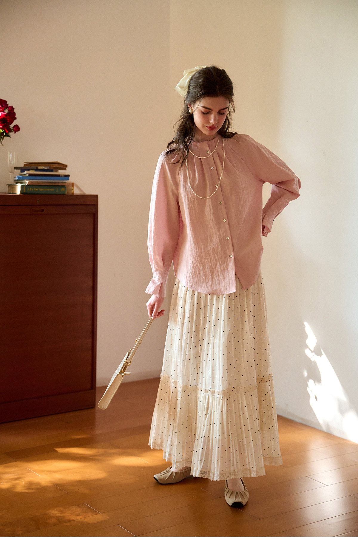 (小眠专属)SimpleRetro牛奶浓巧·法式复古细闪波点半身裙