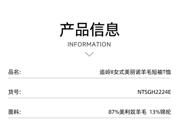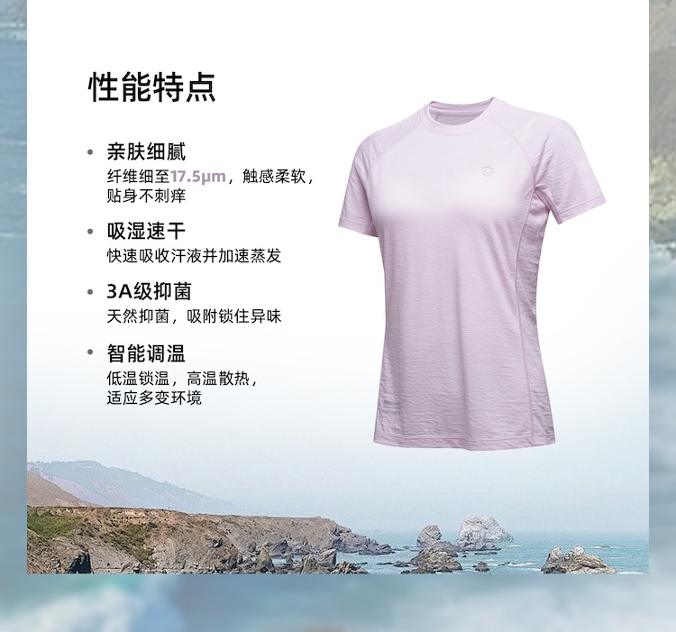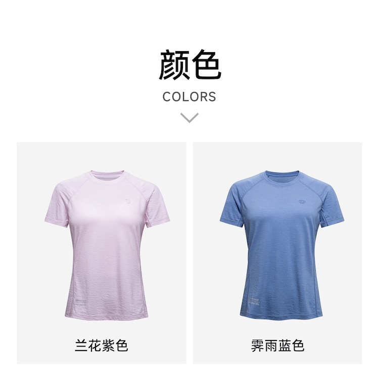 诺诗兰 追岭II女式美丽诺羊毛短袖T恤 触感柔软细腻,贴身穿着不刺痒。3A级天然抑菌技术有效吸附异味,智能调温功能适应多变环境,吸湿速干,让肌肤时刻干爽舒适。NTSGH2224E