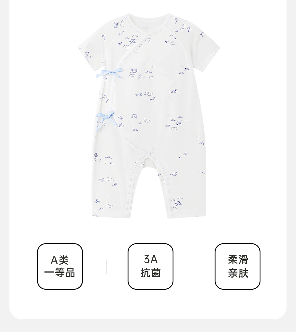【商场同款】英氏婴儿衣服夏季轻薄透气新生儿连体衣抗菌2025新款