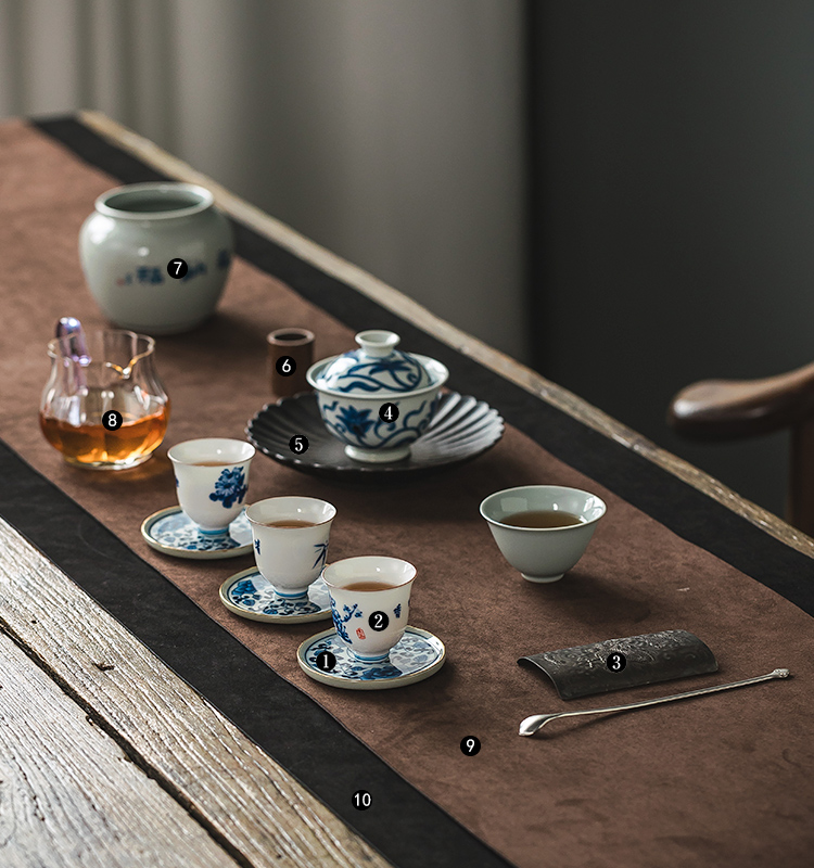 茶香记陶泥描金青花缠枝牡丹圆形杯托陶瓷茶托茶道零配杯垫茶具