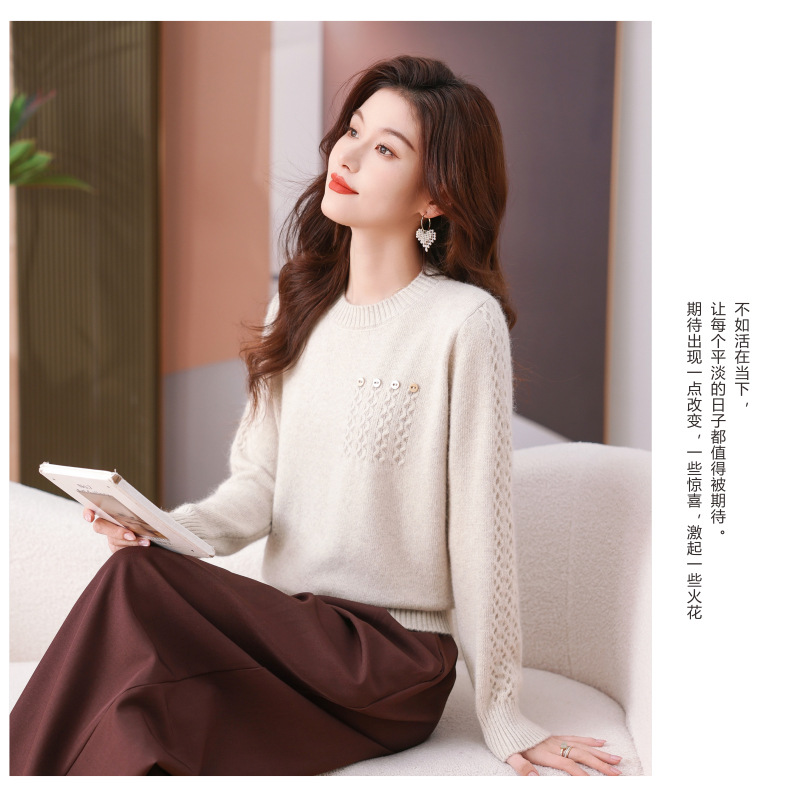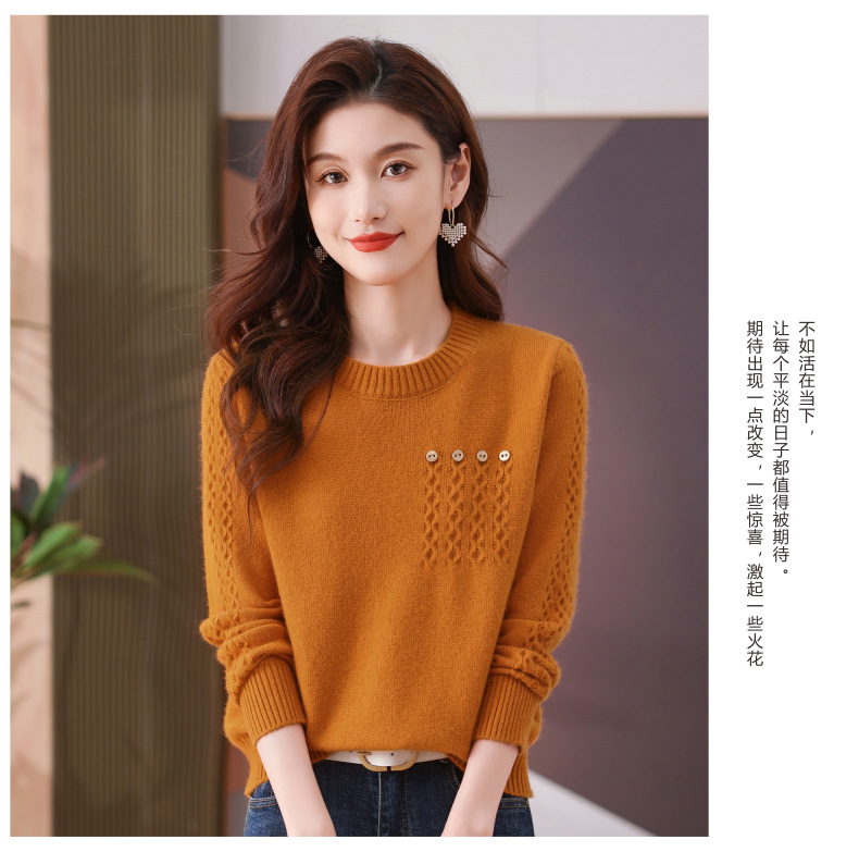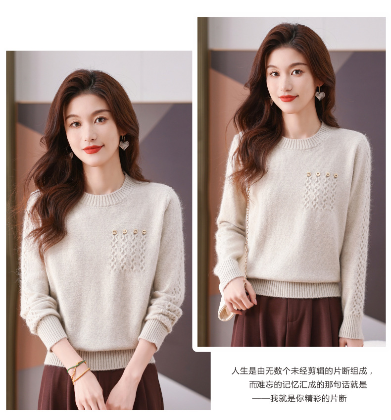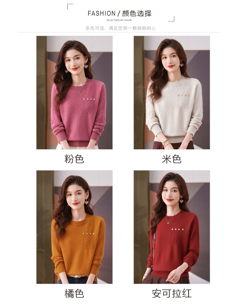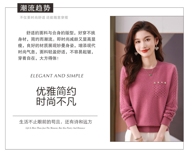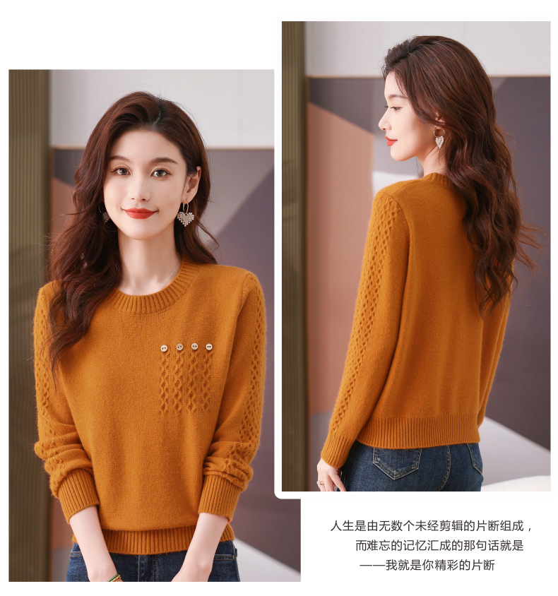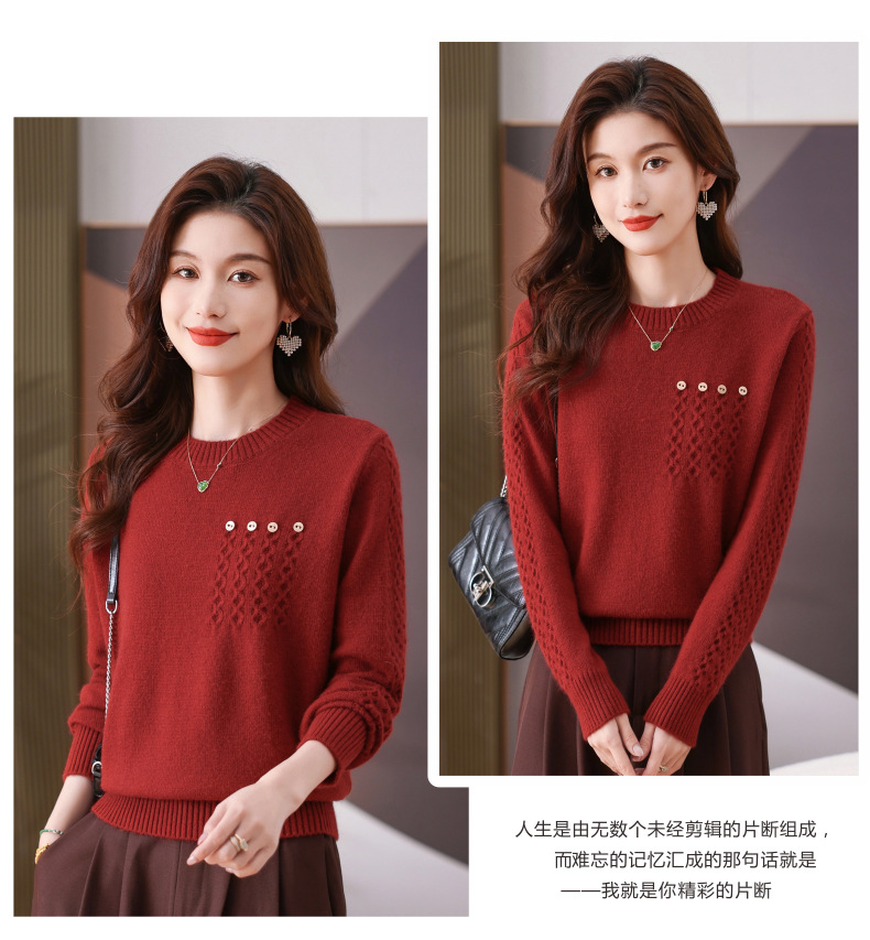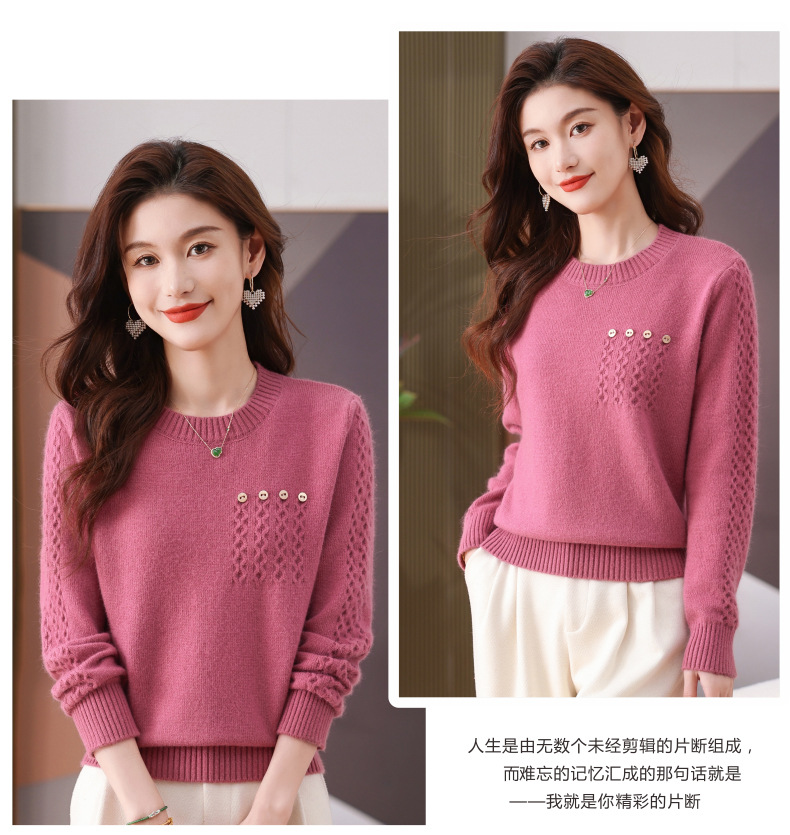CC-101-56732小个子毛衣女士2024新款秋冬季洋气圆领提花针织短上衣内搭打底衫