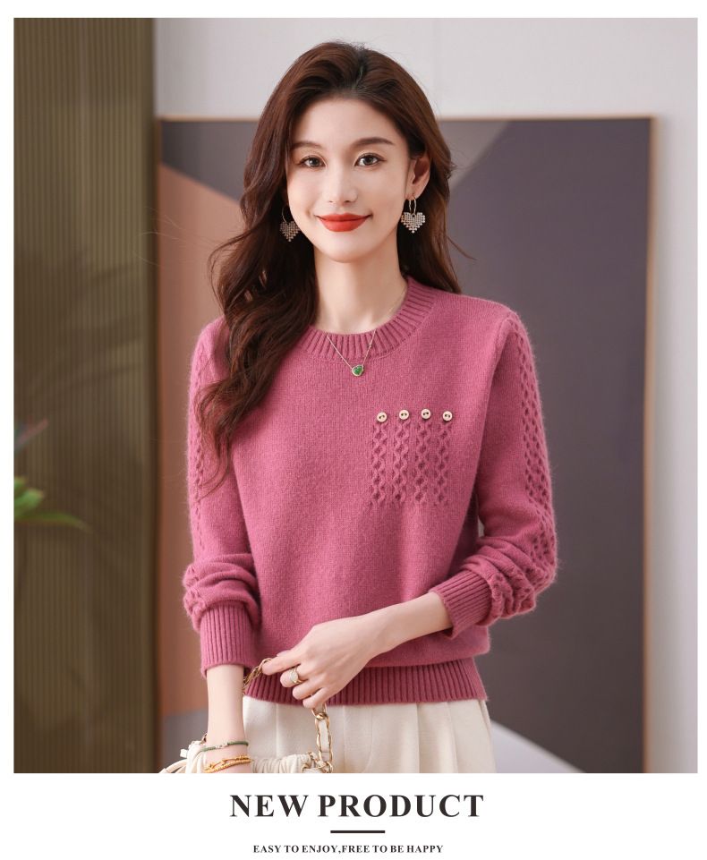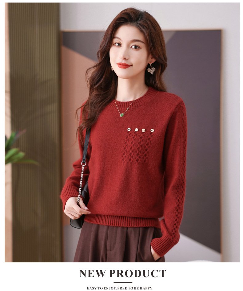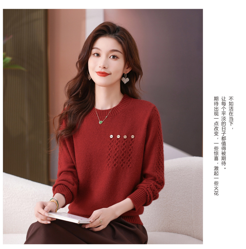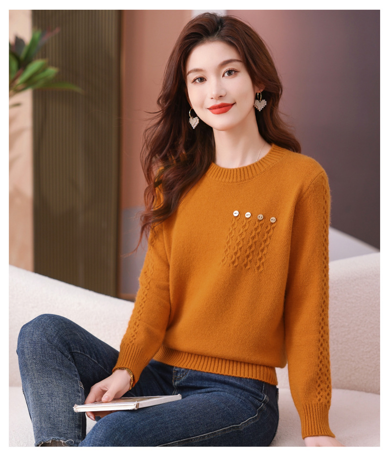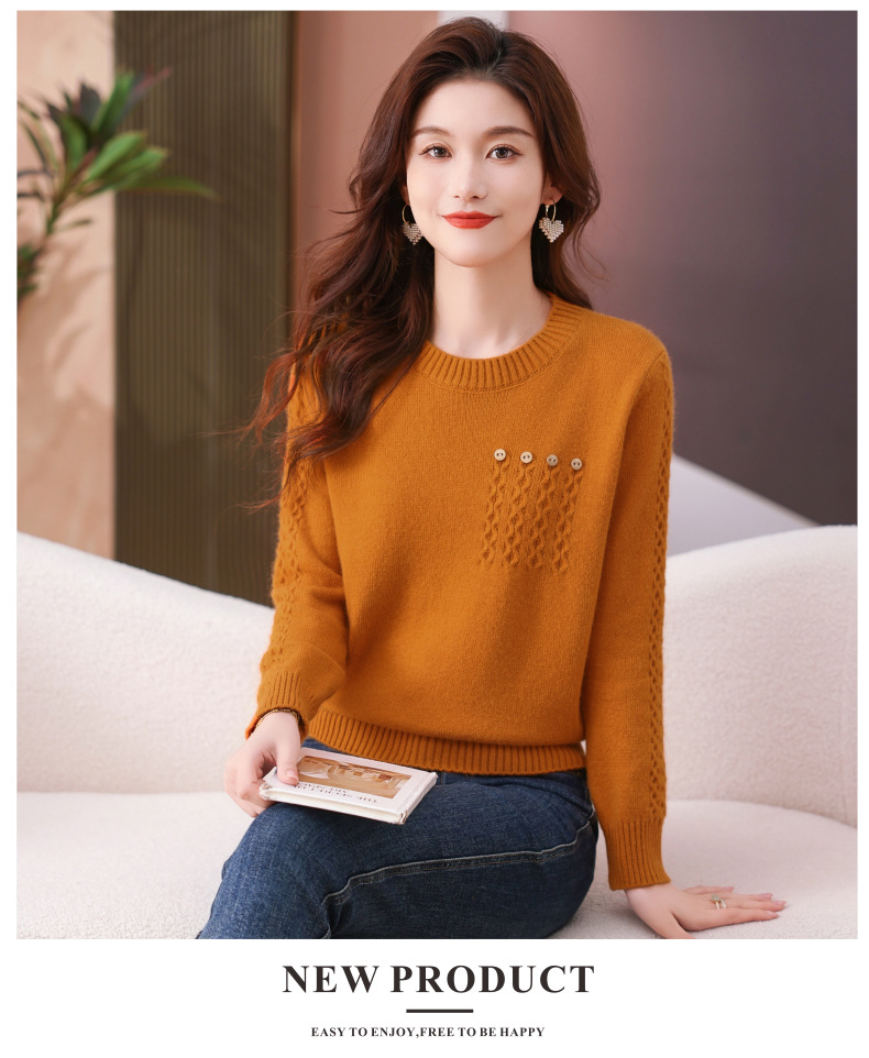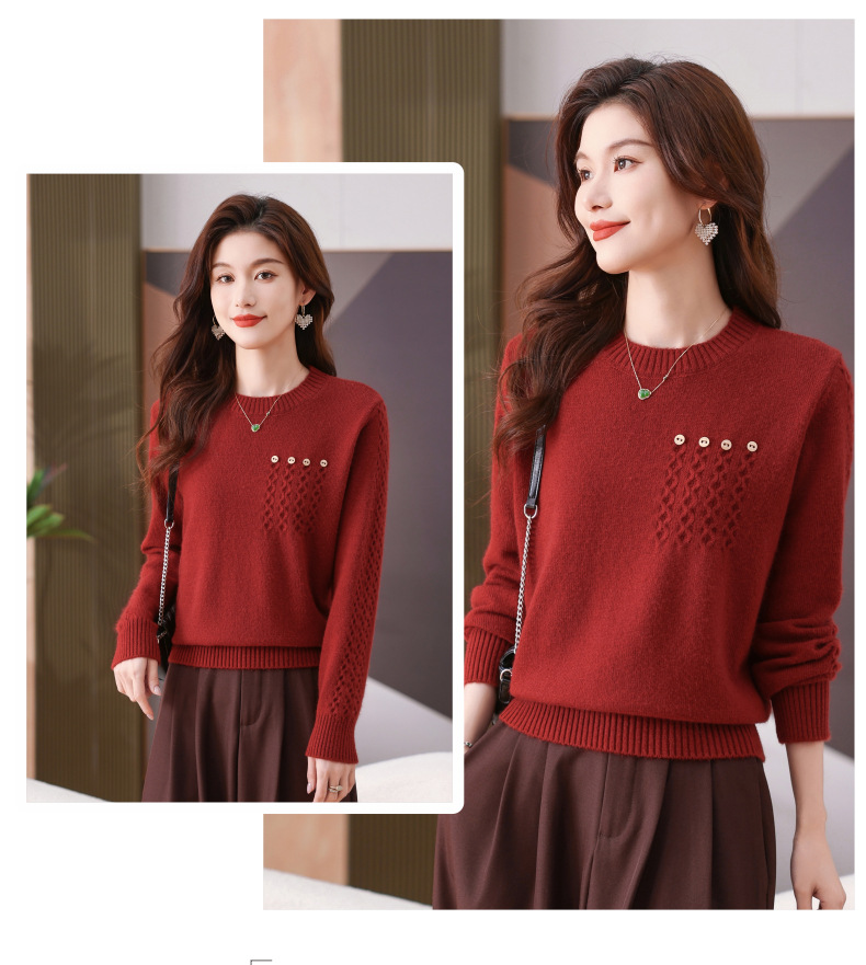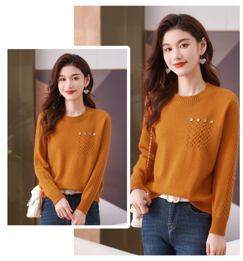 CC-101-56732小个子毛衣女士2024新款秋冬季洋气圆领提花针织短上衣内搭打底衫