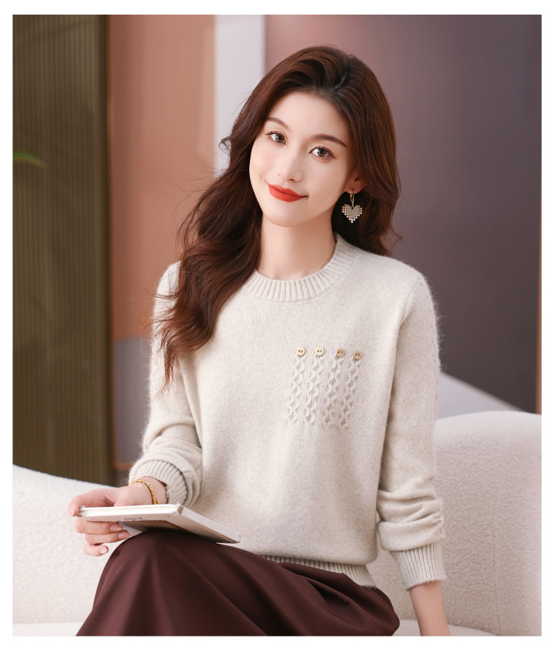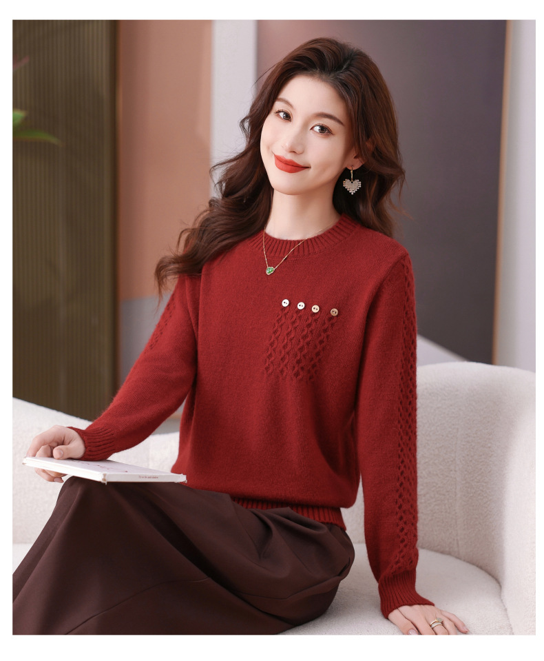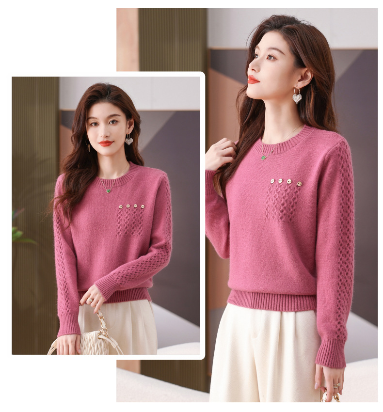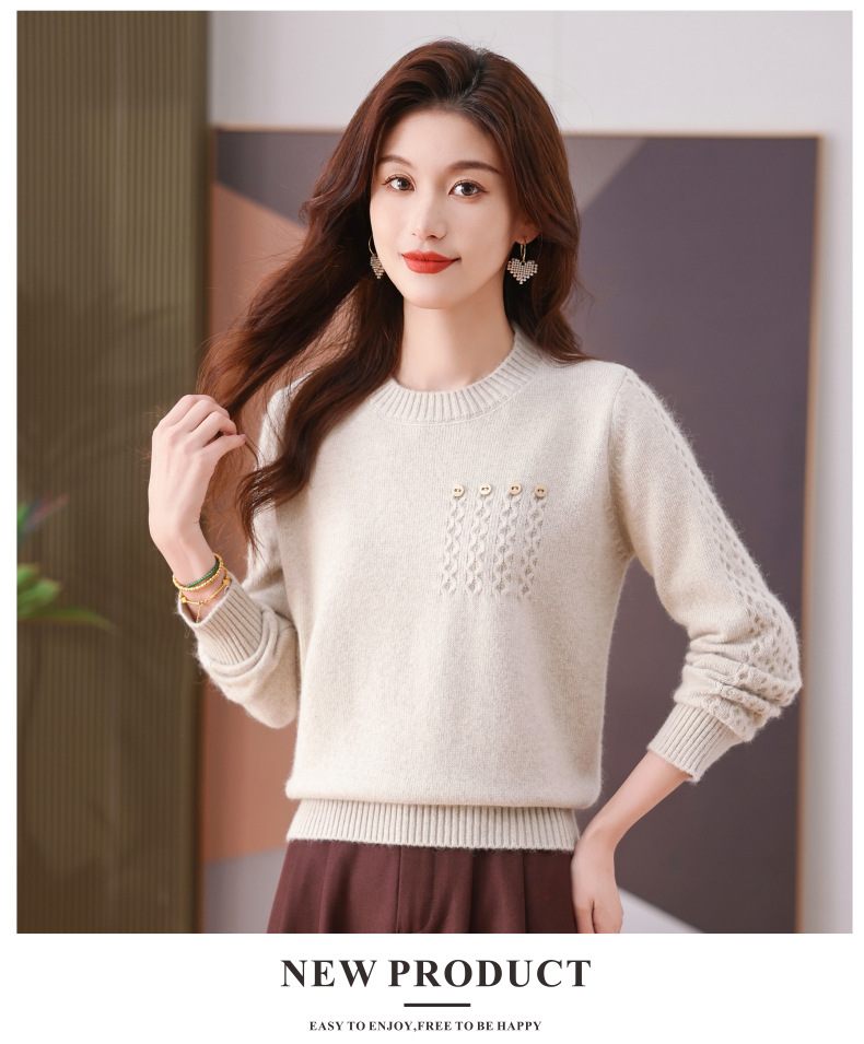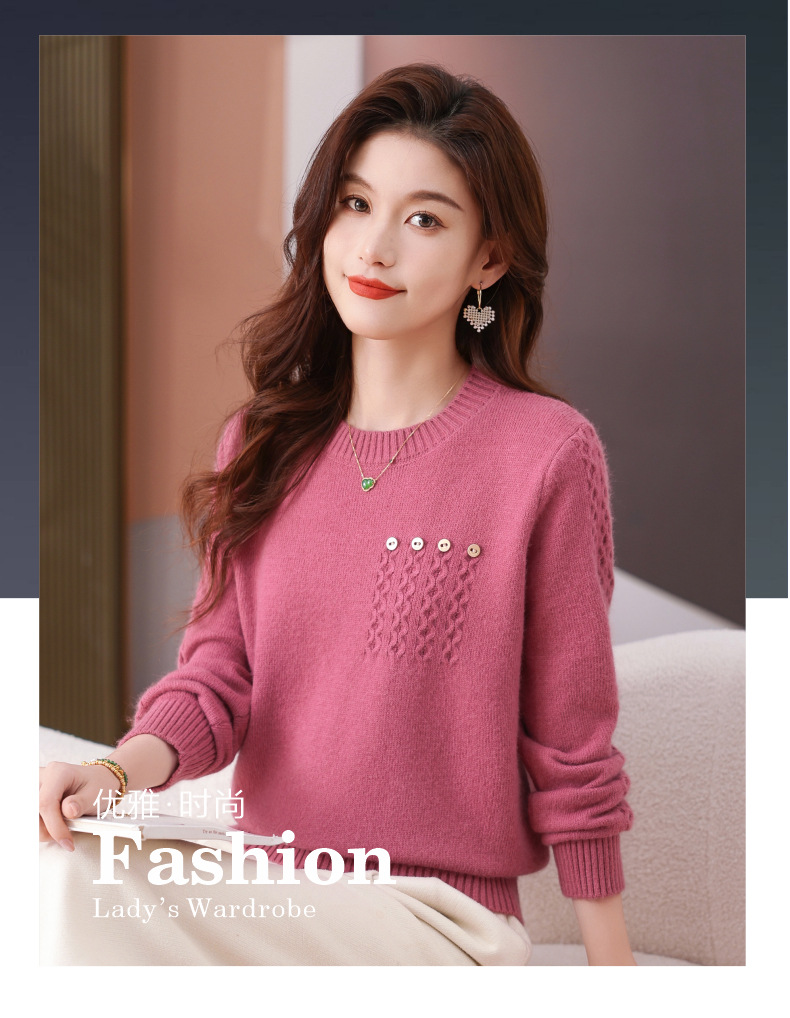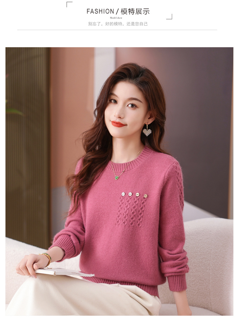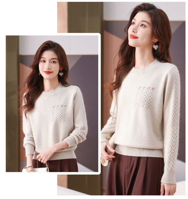 CC-101-56732小个子毛衣女士2024新款秋冬季洋气圆领提花针织短上衣内搭打底衫