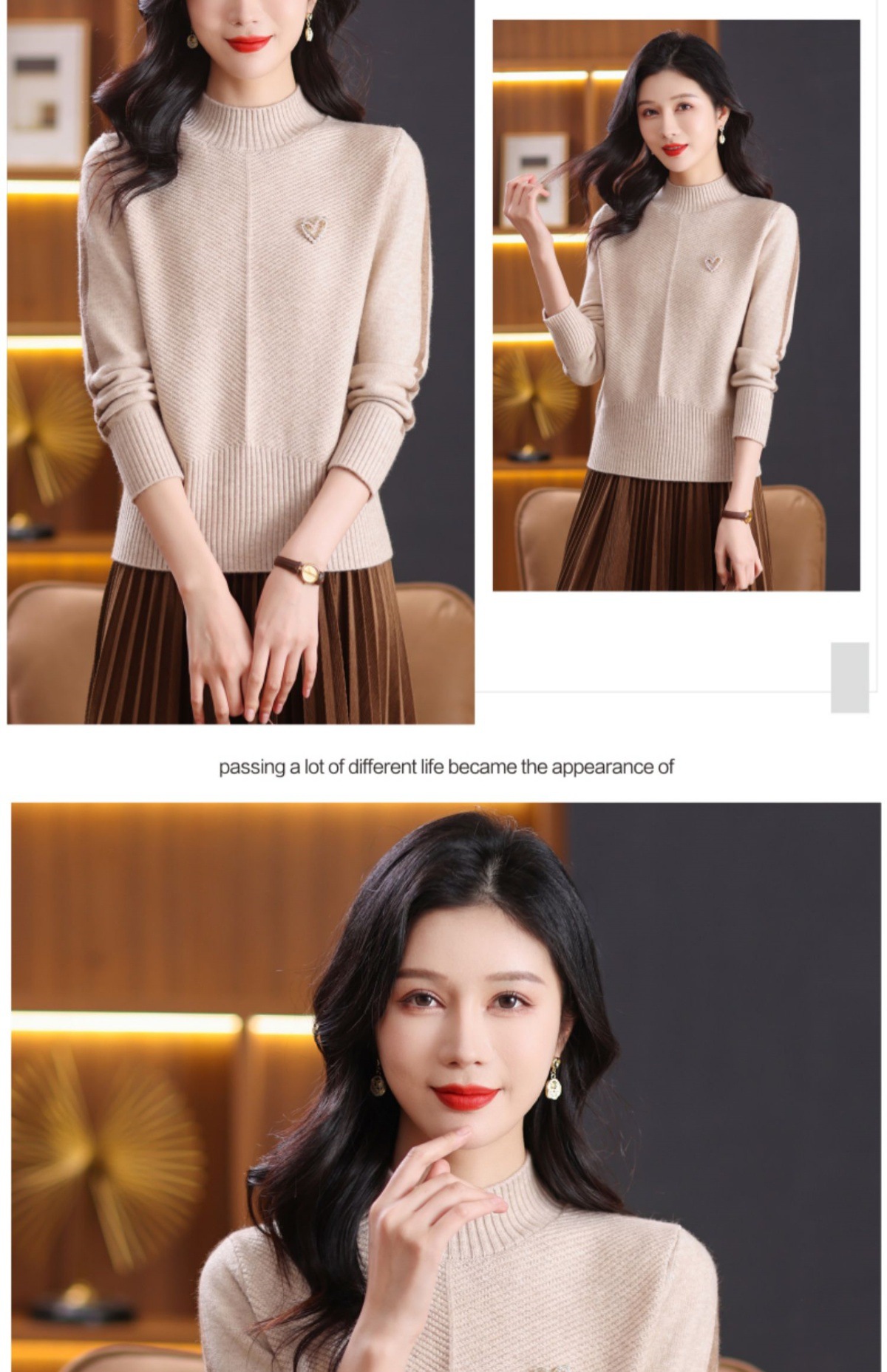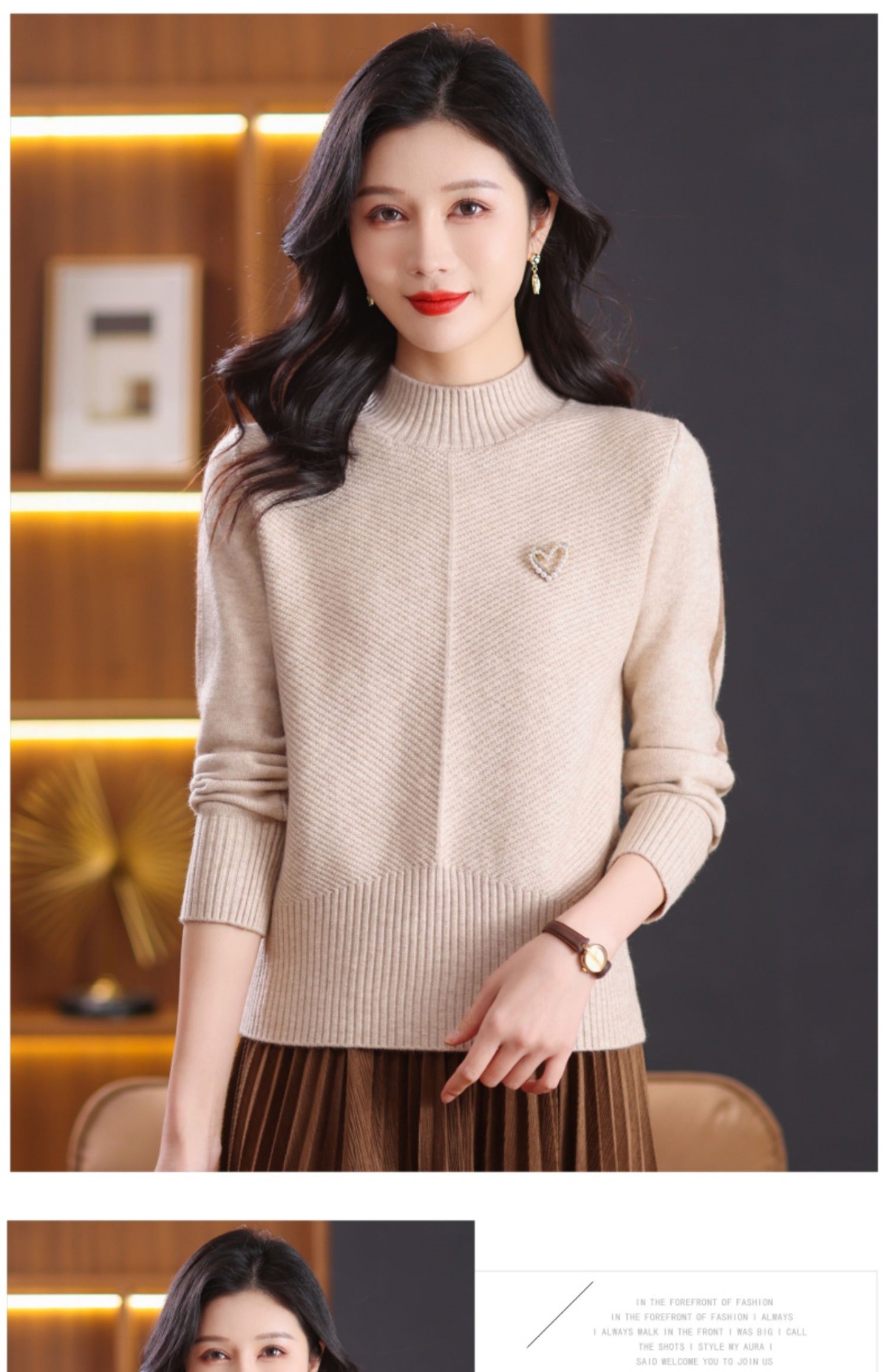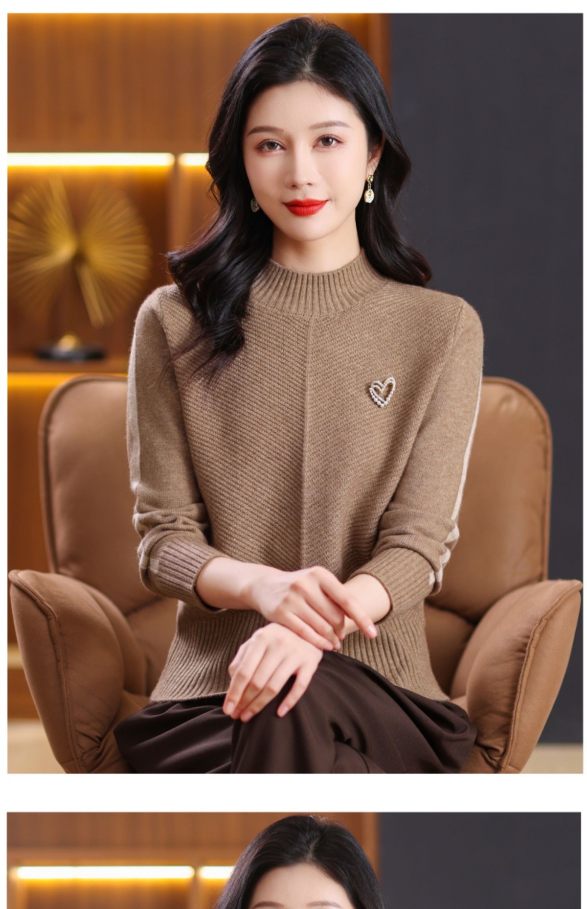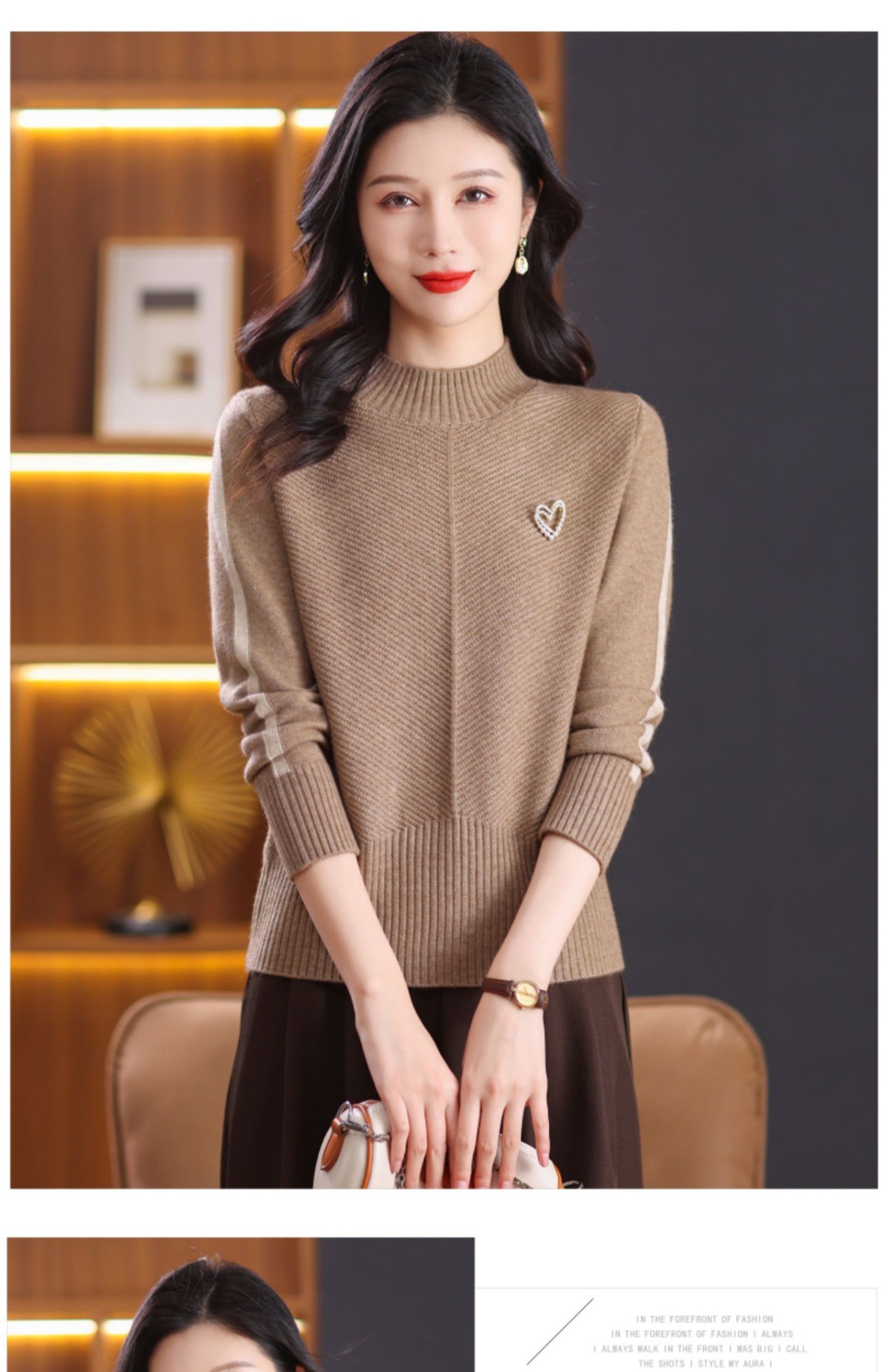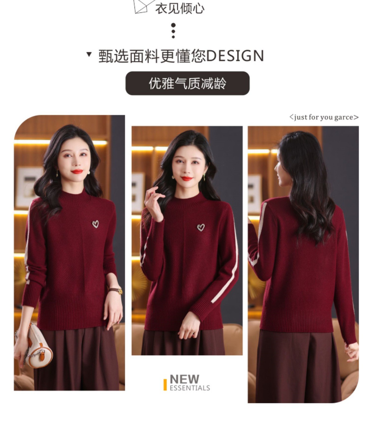CC-89-3805秋冬季新款简约百搭套头设计感纯色毛衣针织打底衫上衣女