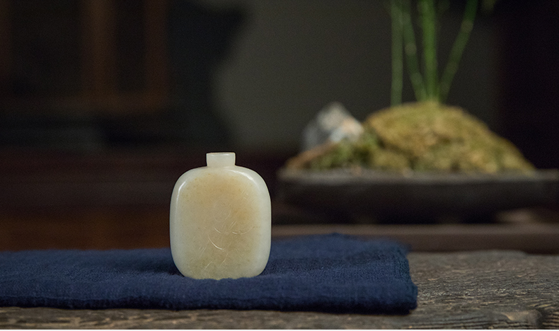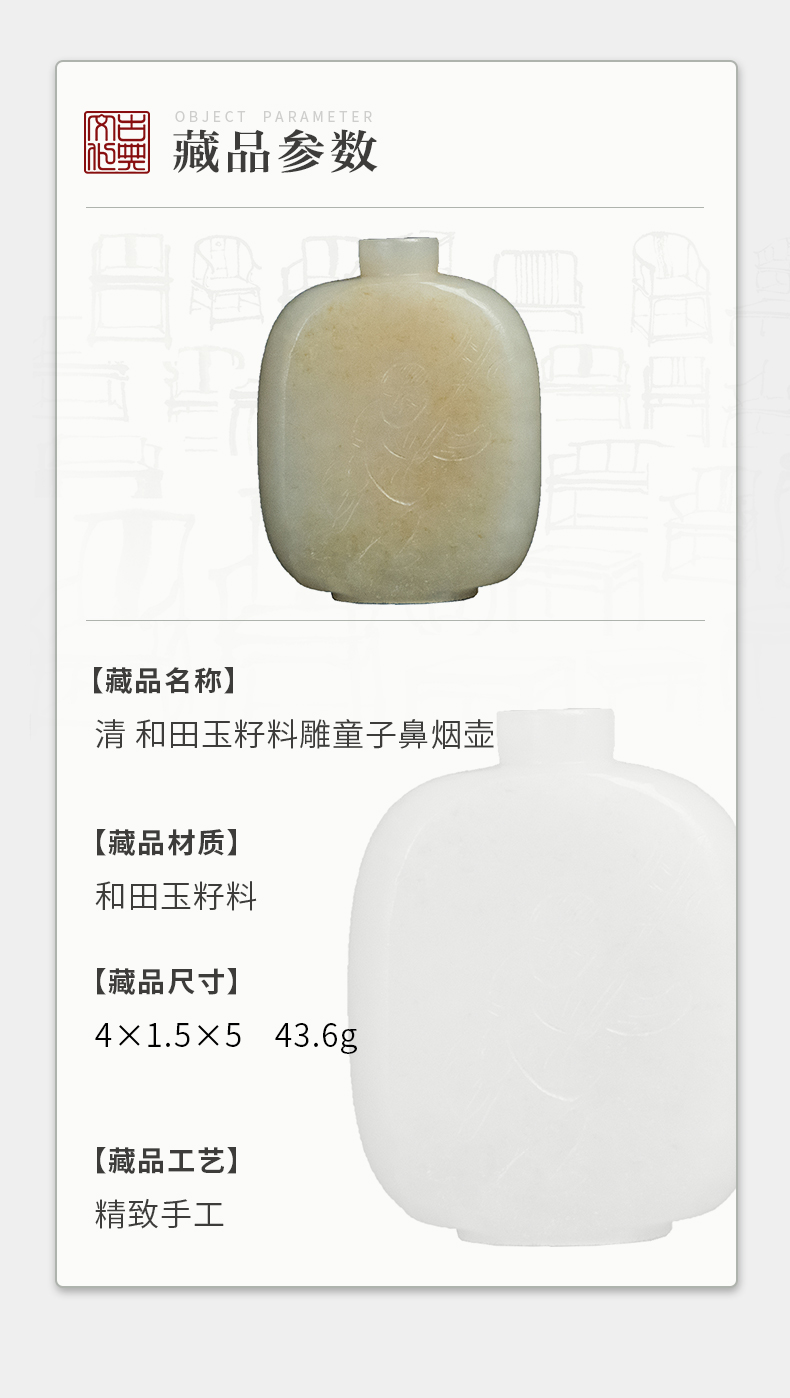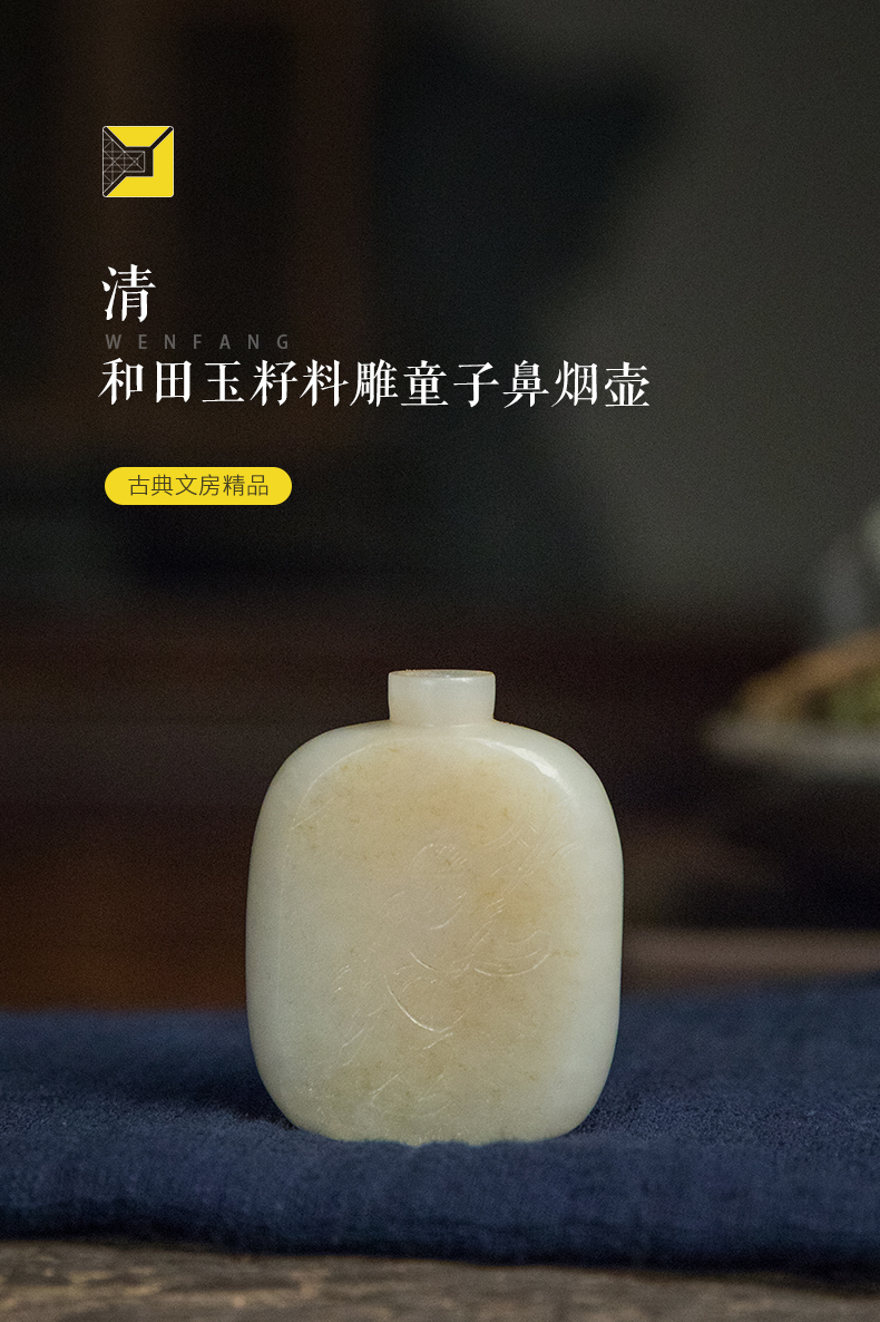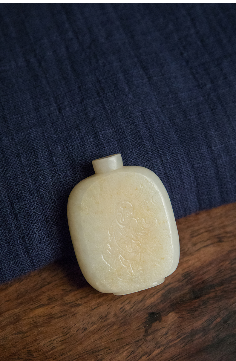 清 和田玉籽料雕童子鼻烟壶