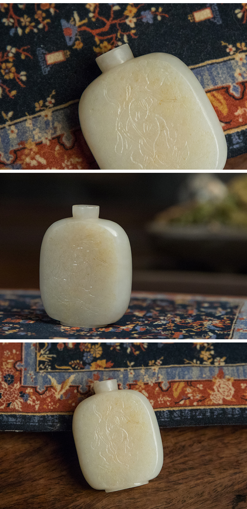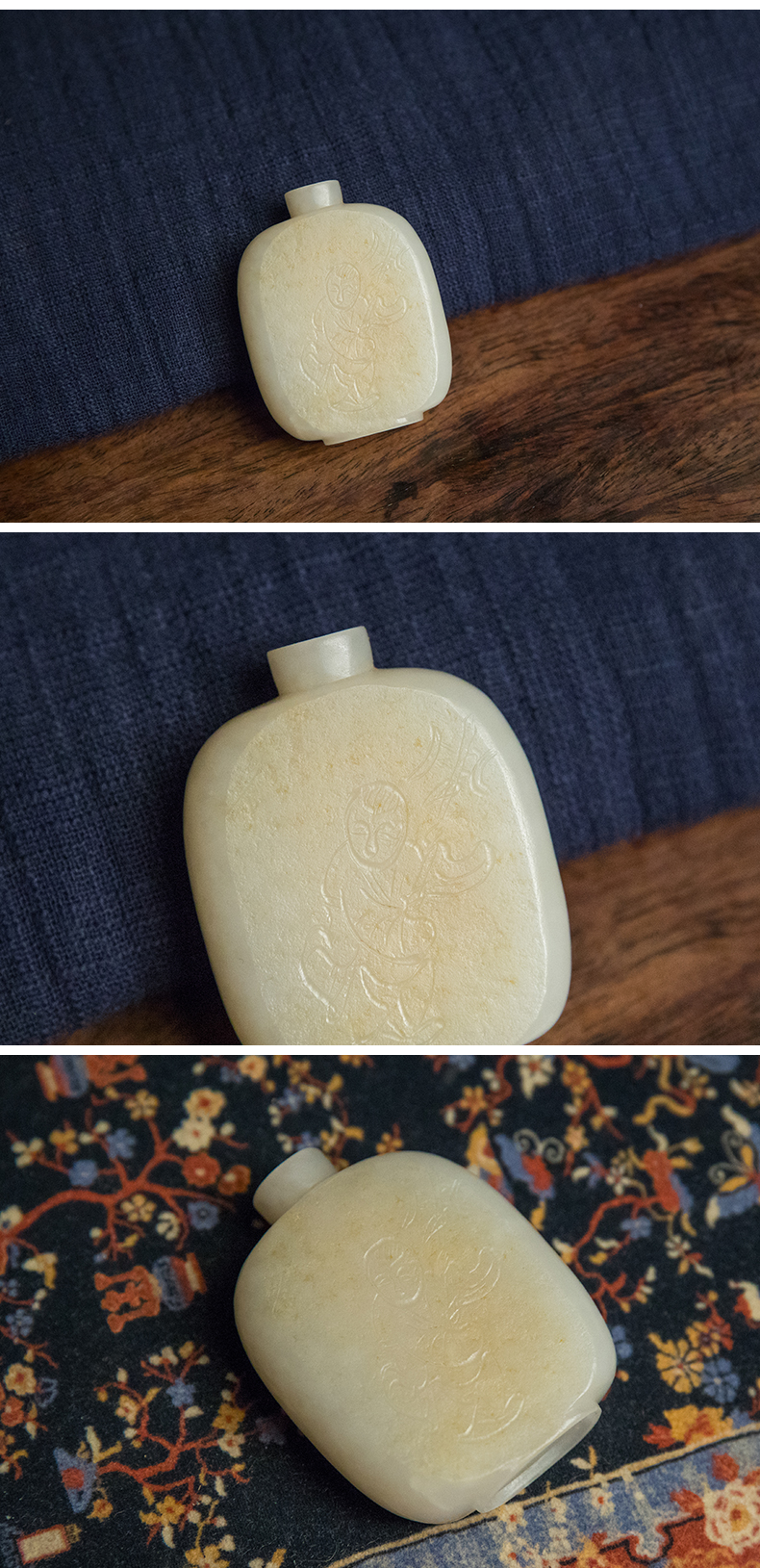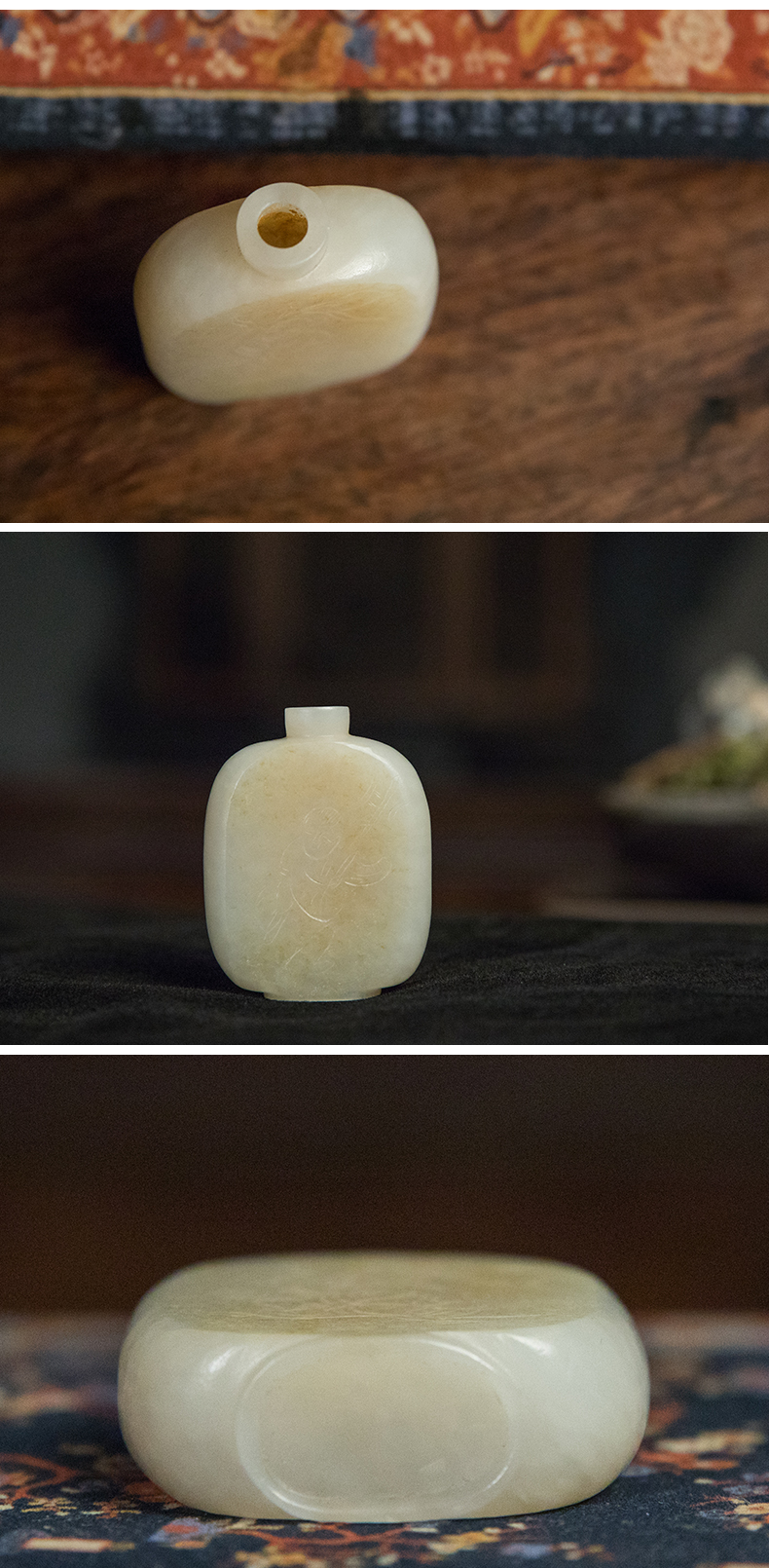 清 和田玉籽料雕童子鼻烟壶