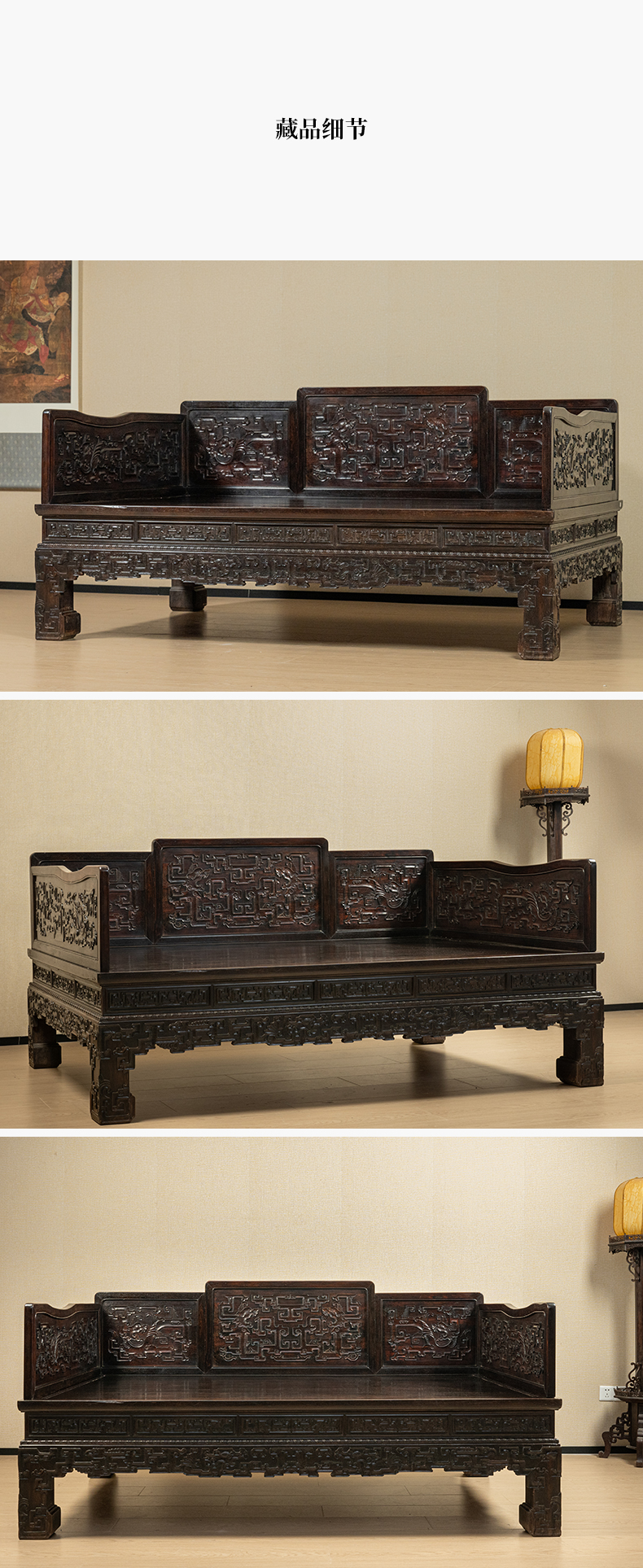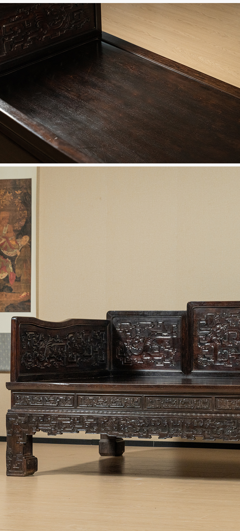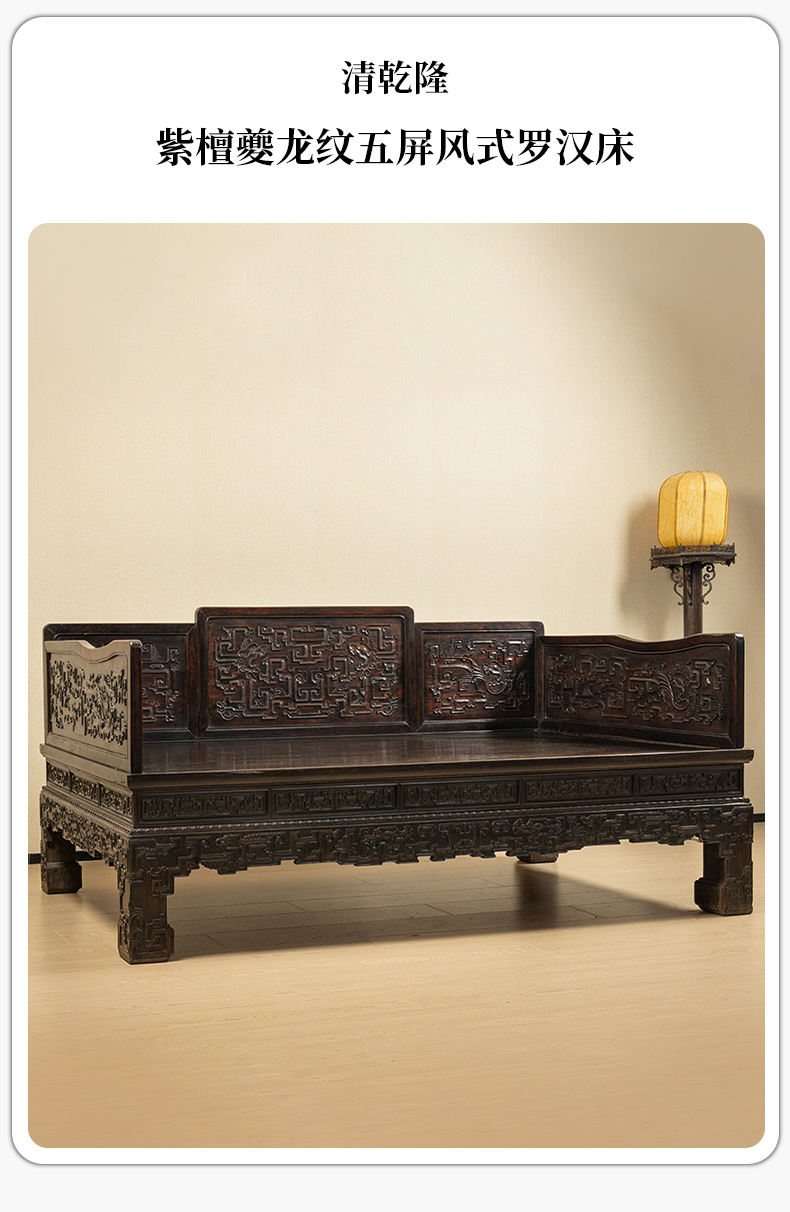 清乾隆 紫檀夔龙纹五屏风式罗汉床
