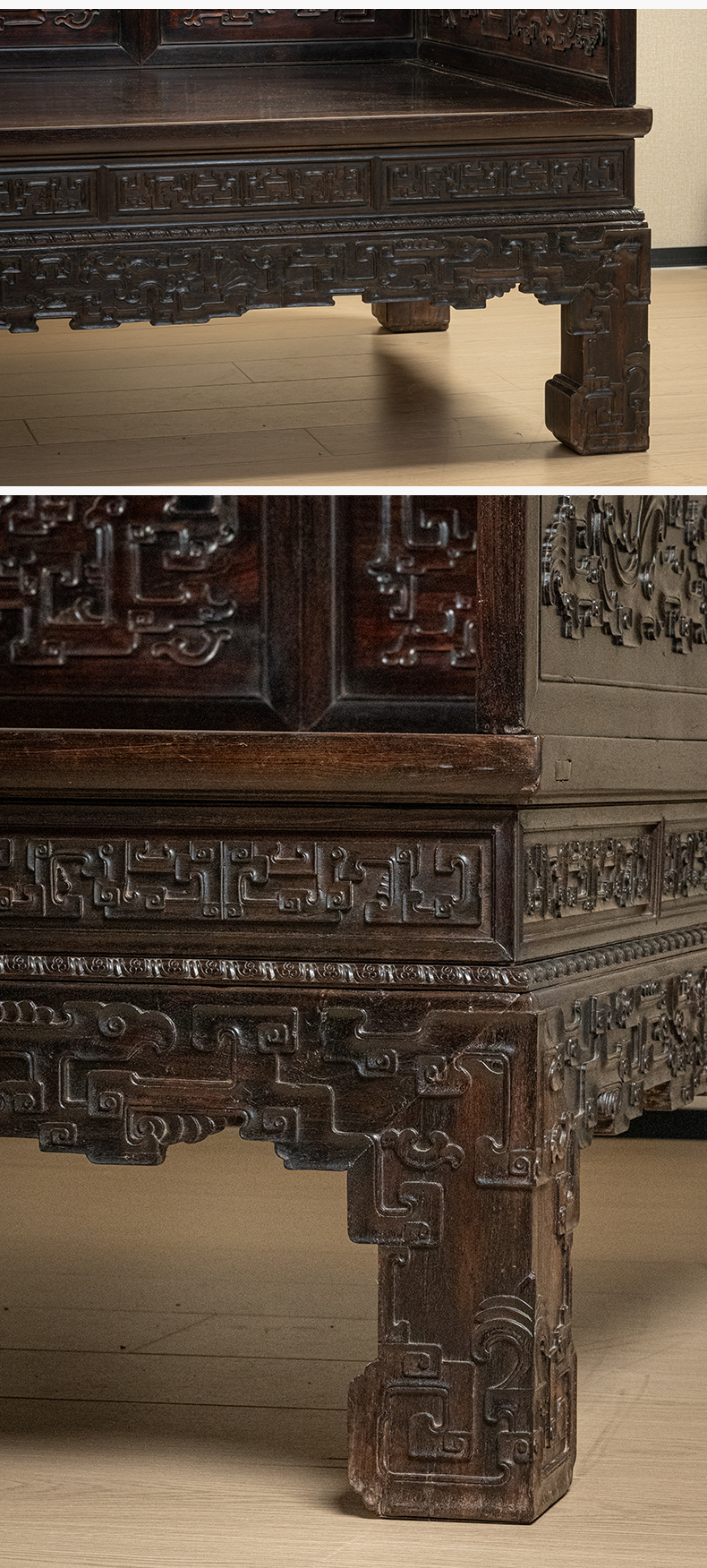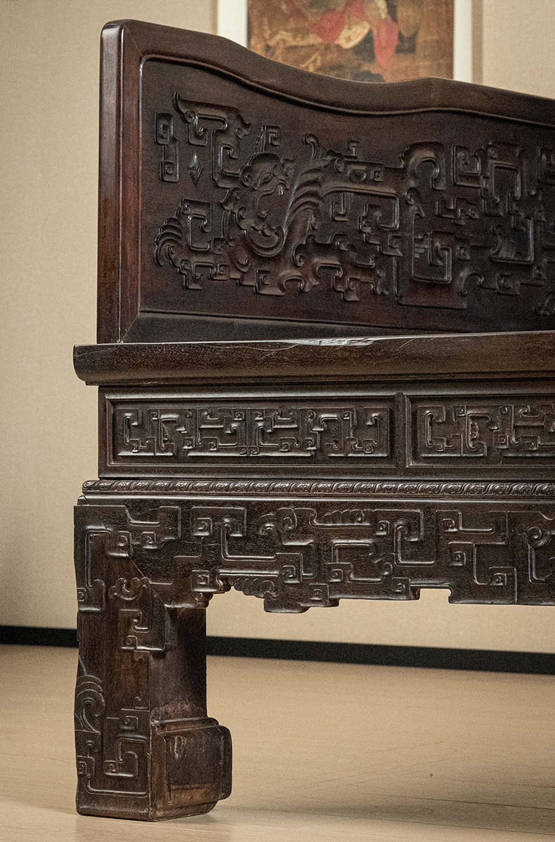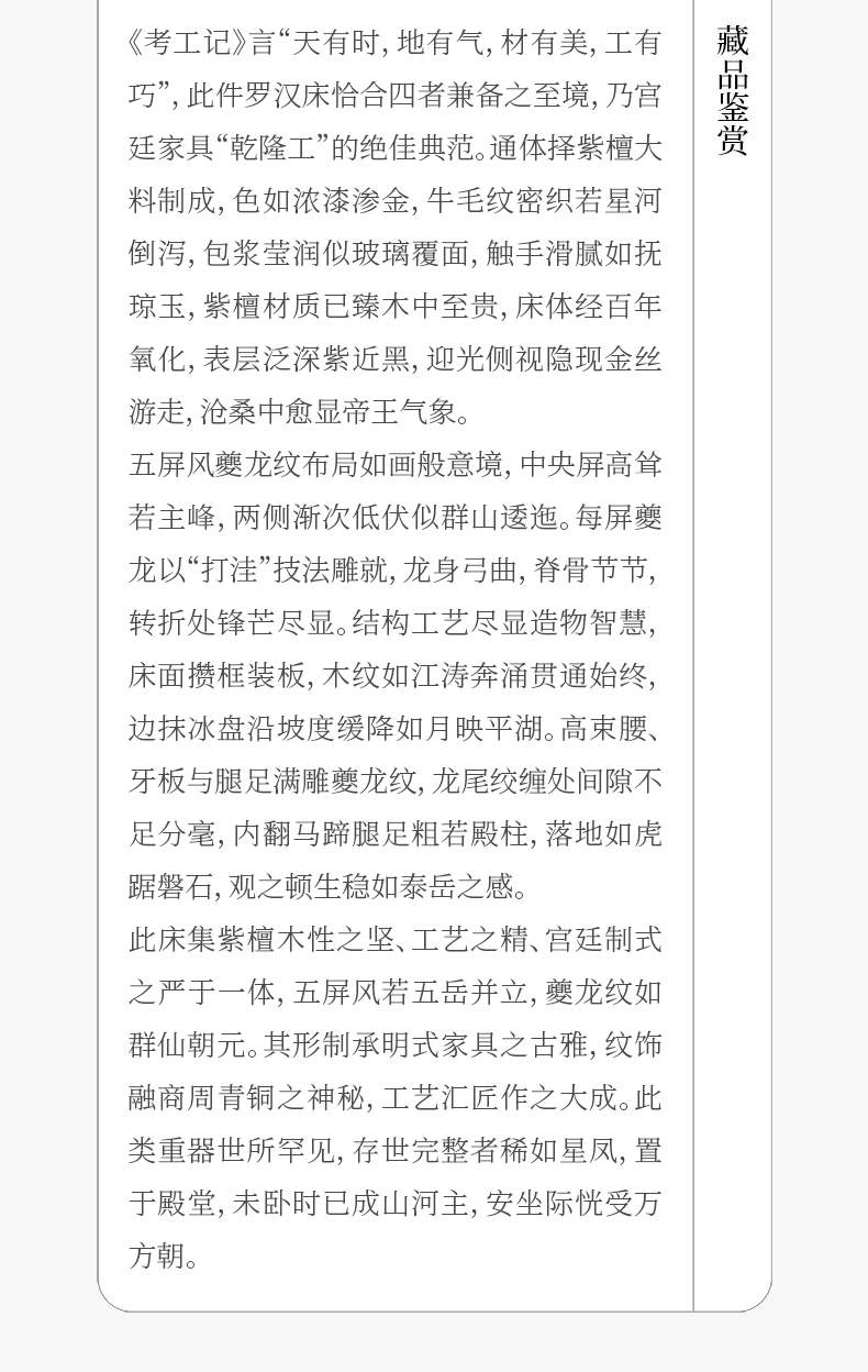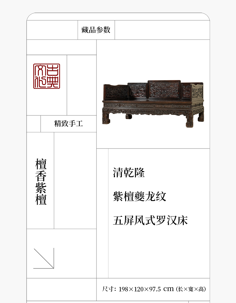 清乾隆 紫檀夔龙纹五屏风式罗汉床