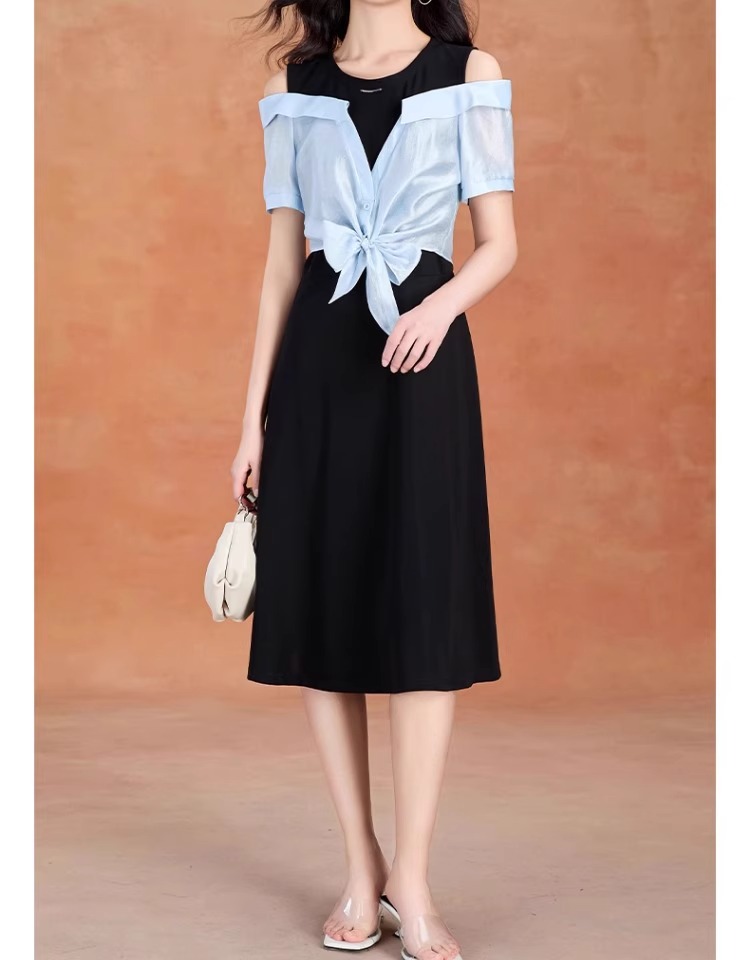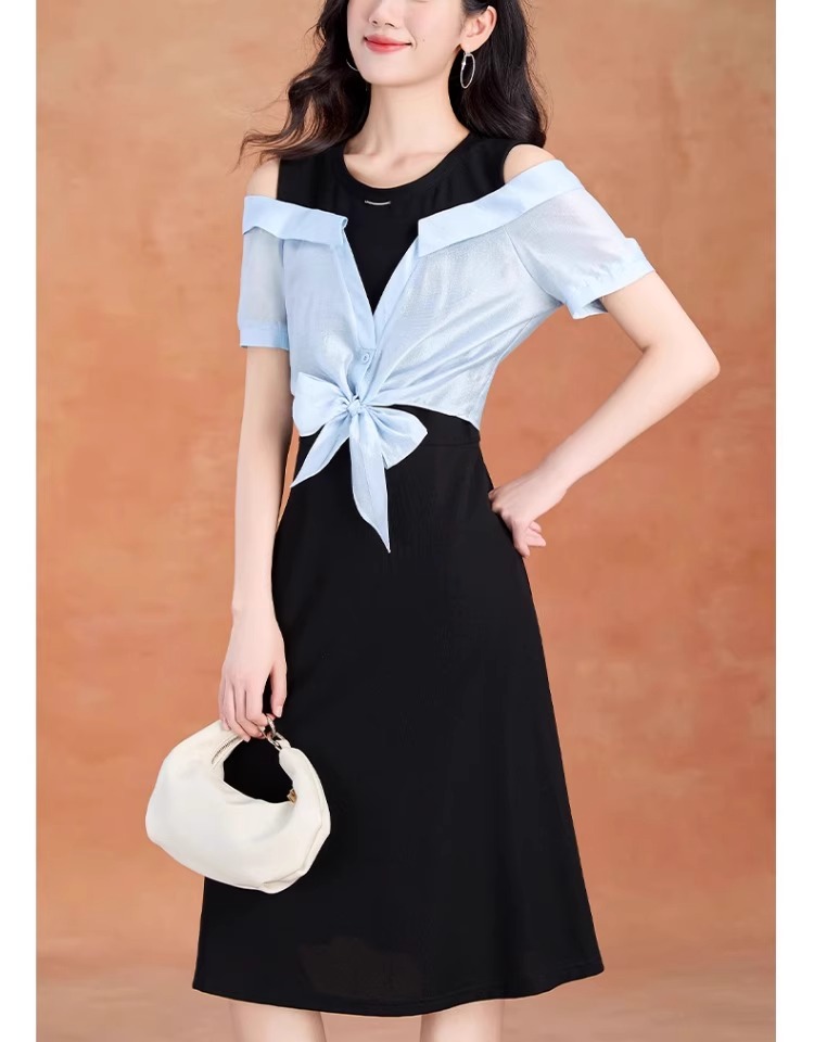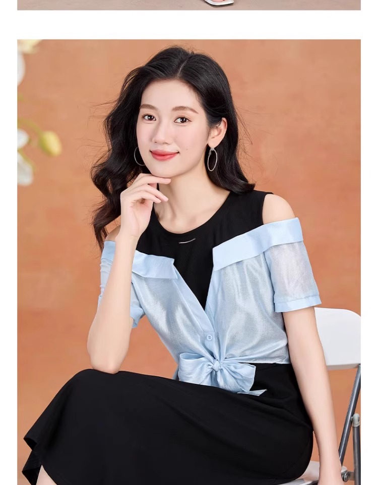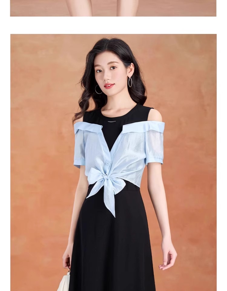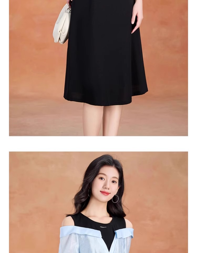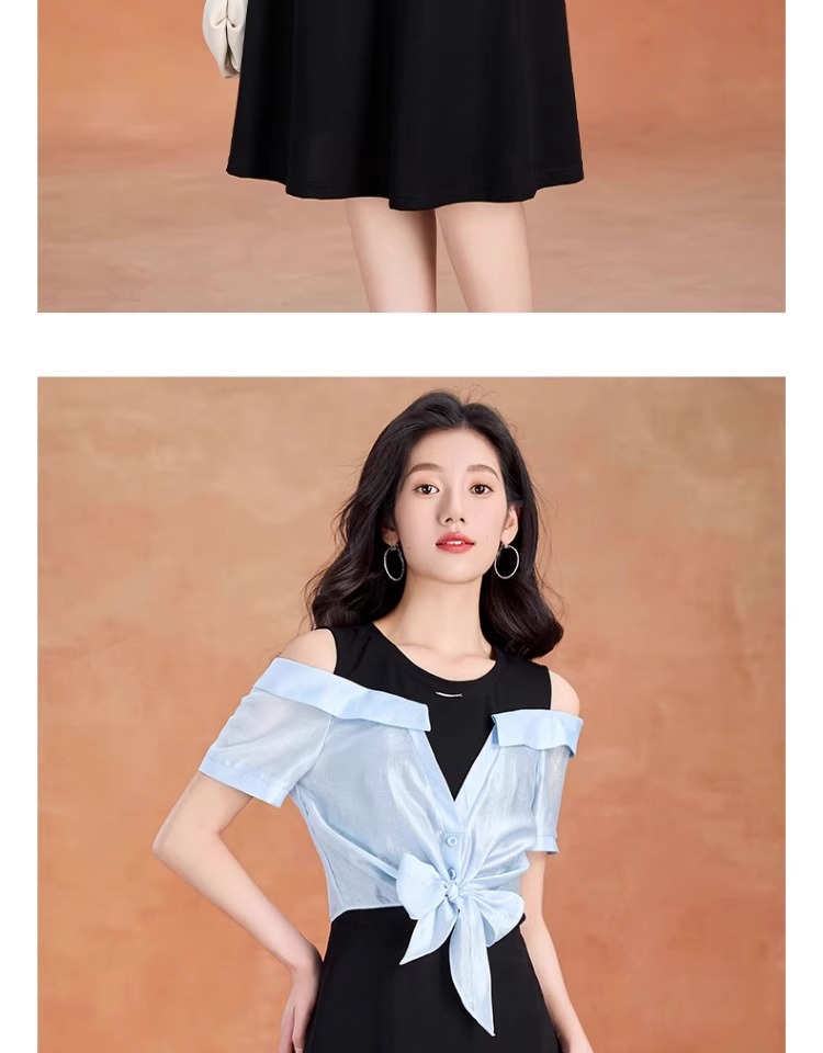 全新升级【铂金会员220/天猫299/差价79】(05228)洛诗琳气质拼接连衣裙2025夏季新款假两连裙子