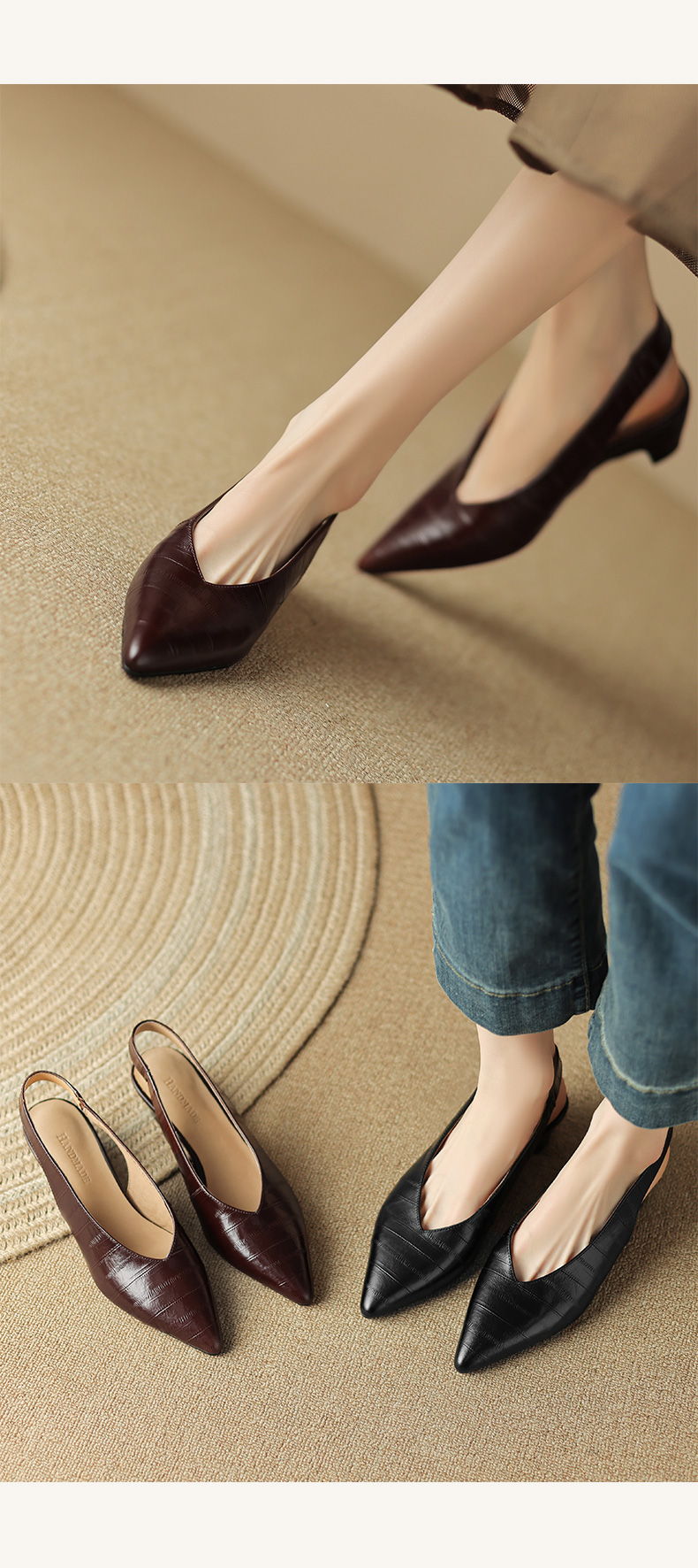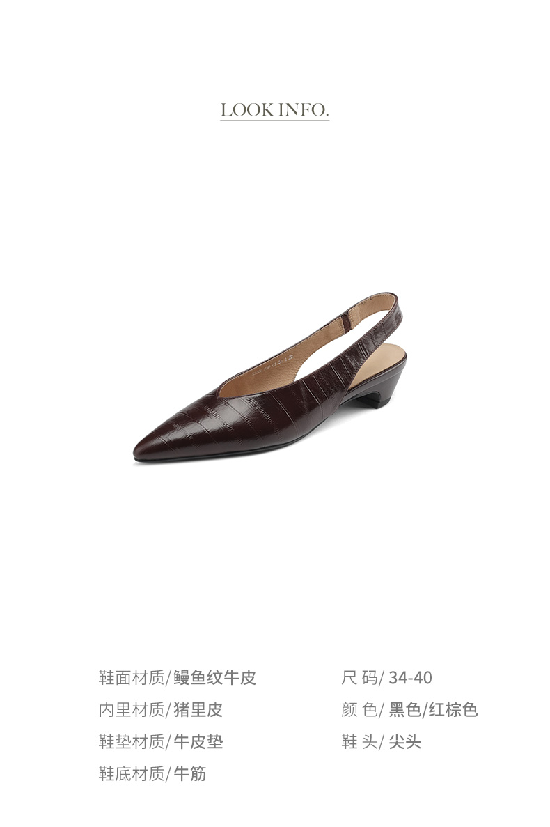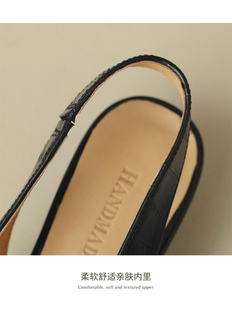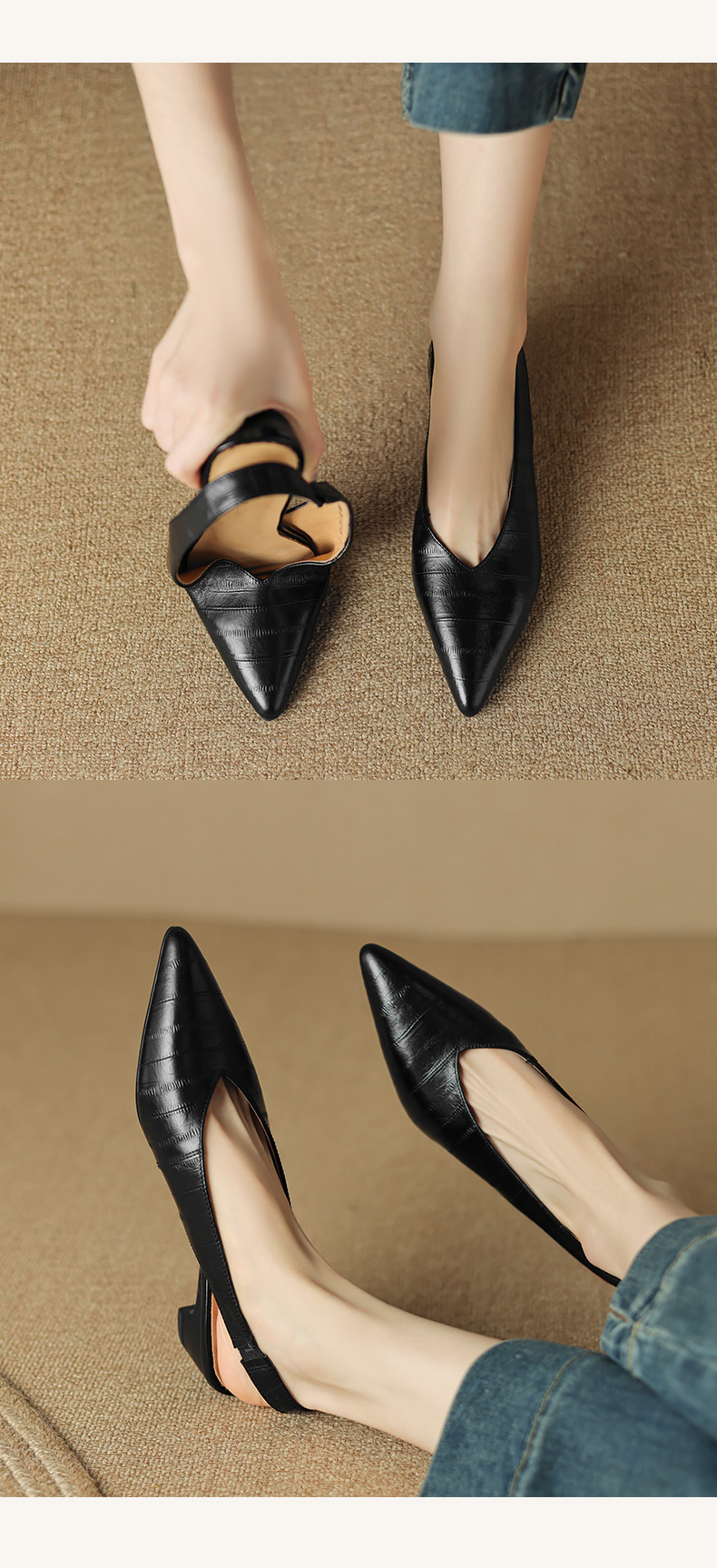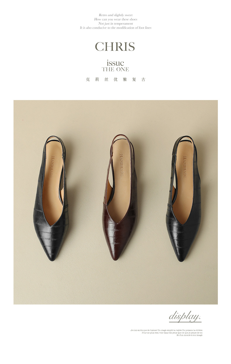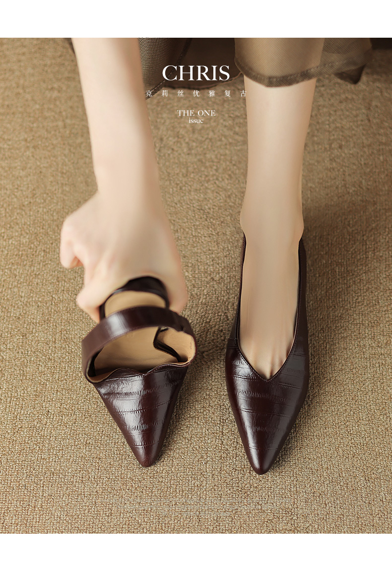 法式优雅,尖头头层牛皮中跟后空凉鞋SSS-S5200