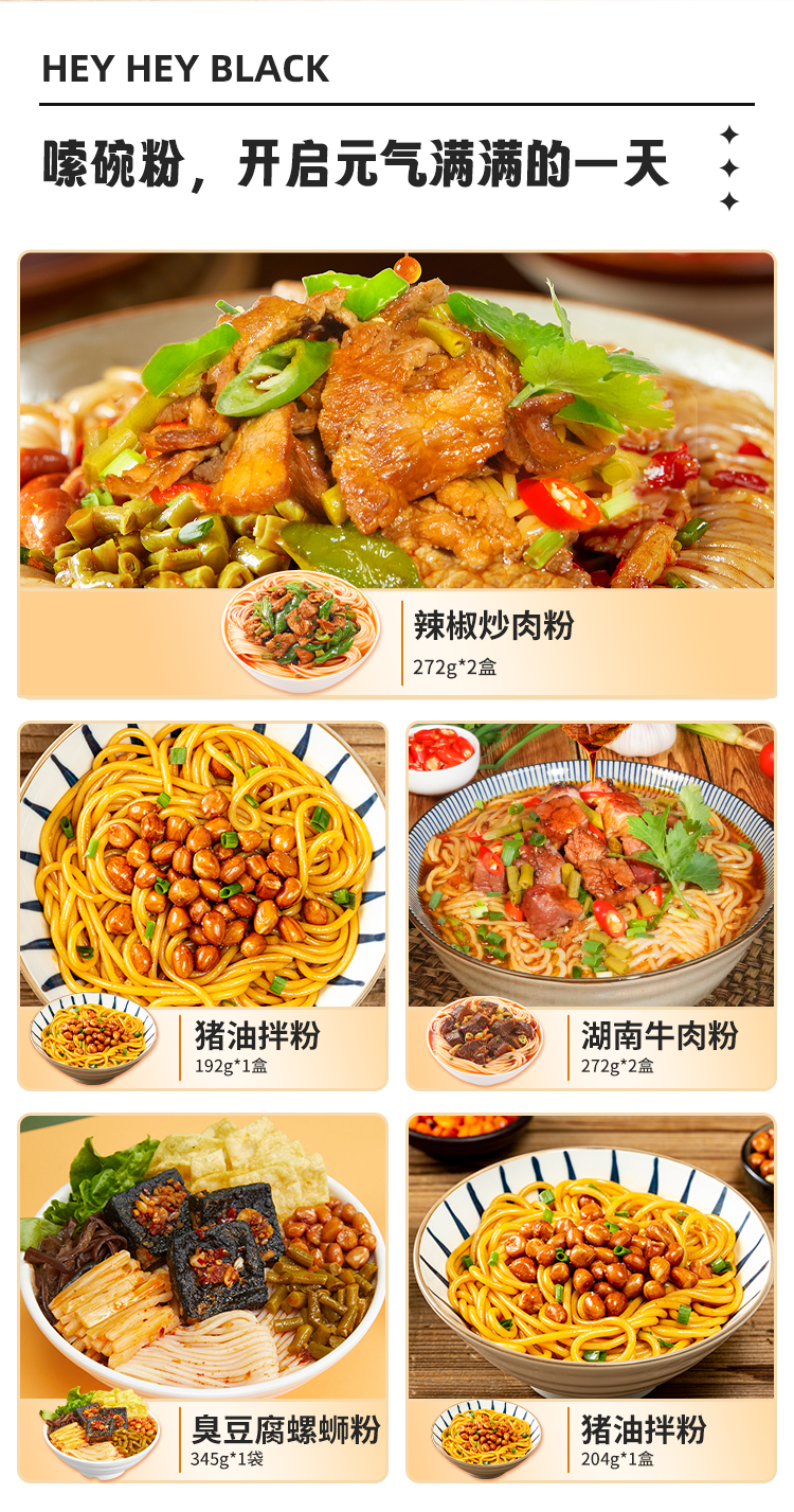 【夜宵嗦粉】黑色经典弗兰人的早餐湖南米粉套餐 多种口味方便速食