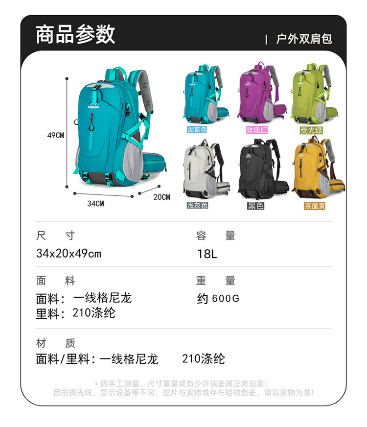 户外男女同款大容量登山背包 旅游爬山轻便专业徒步运动旅行双肩包国庆出游