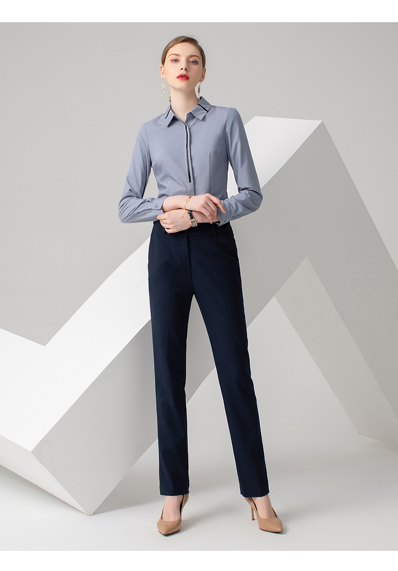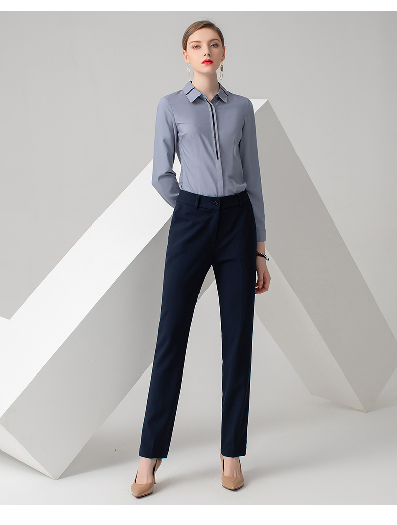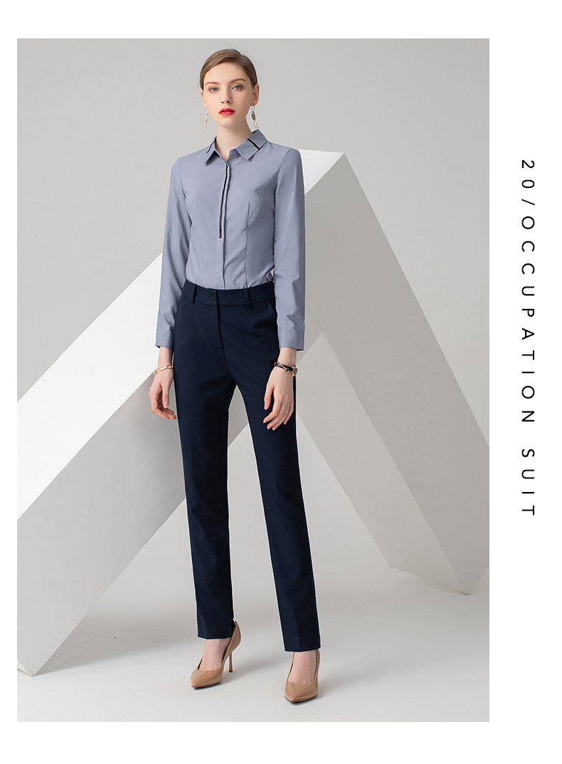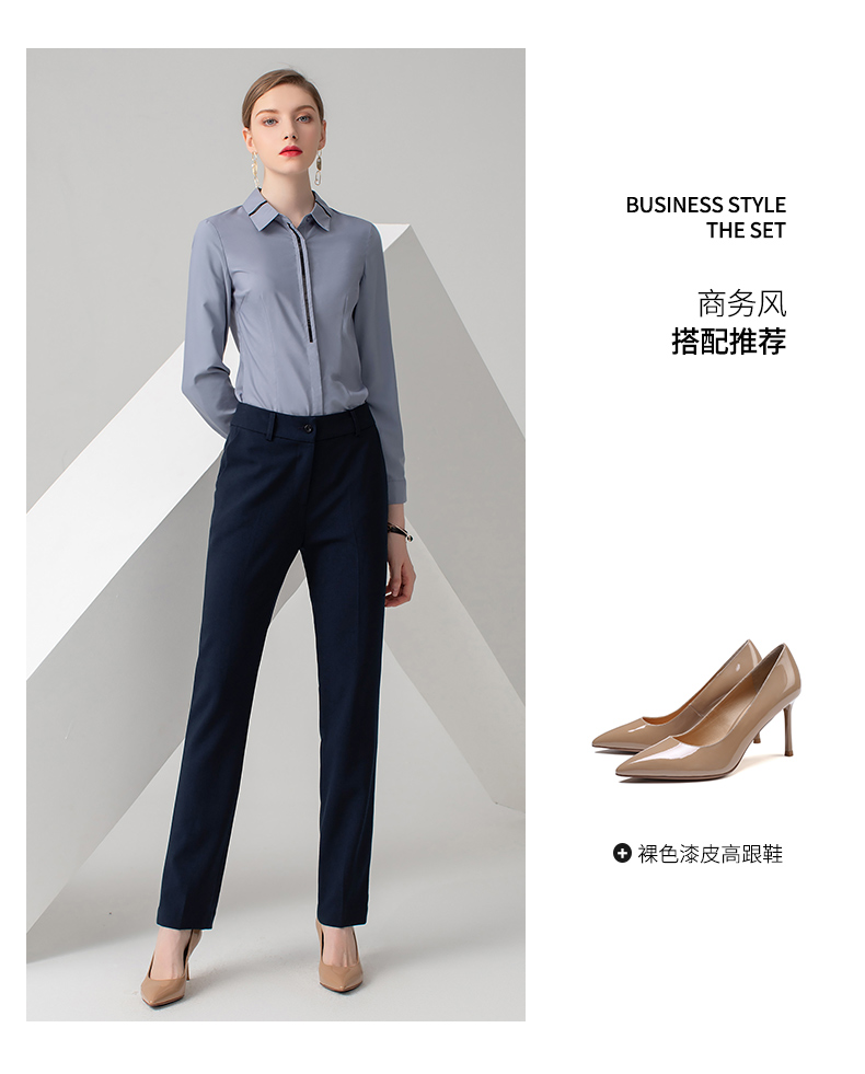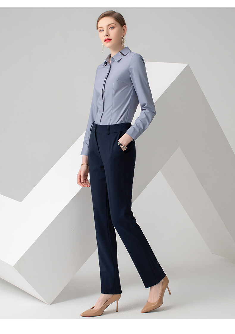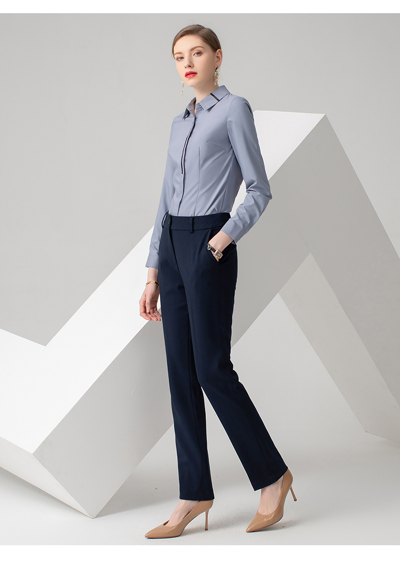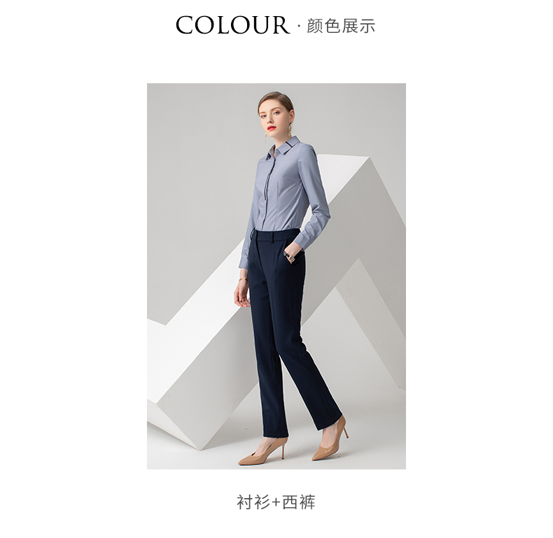 IWY/浅灰色长袖衬衫藏蓝色长裤套装B778+P722