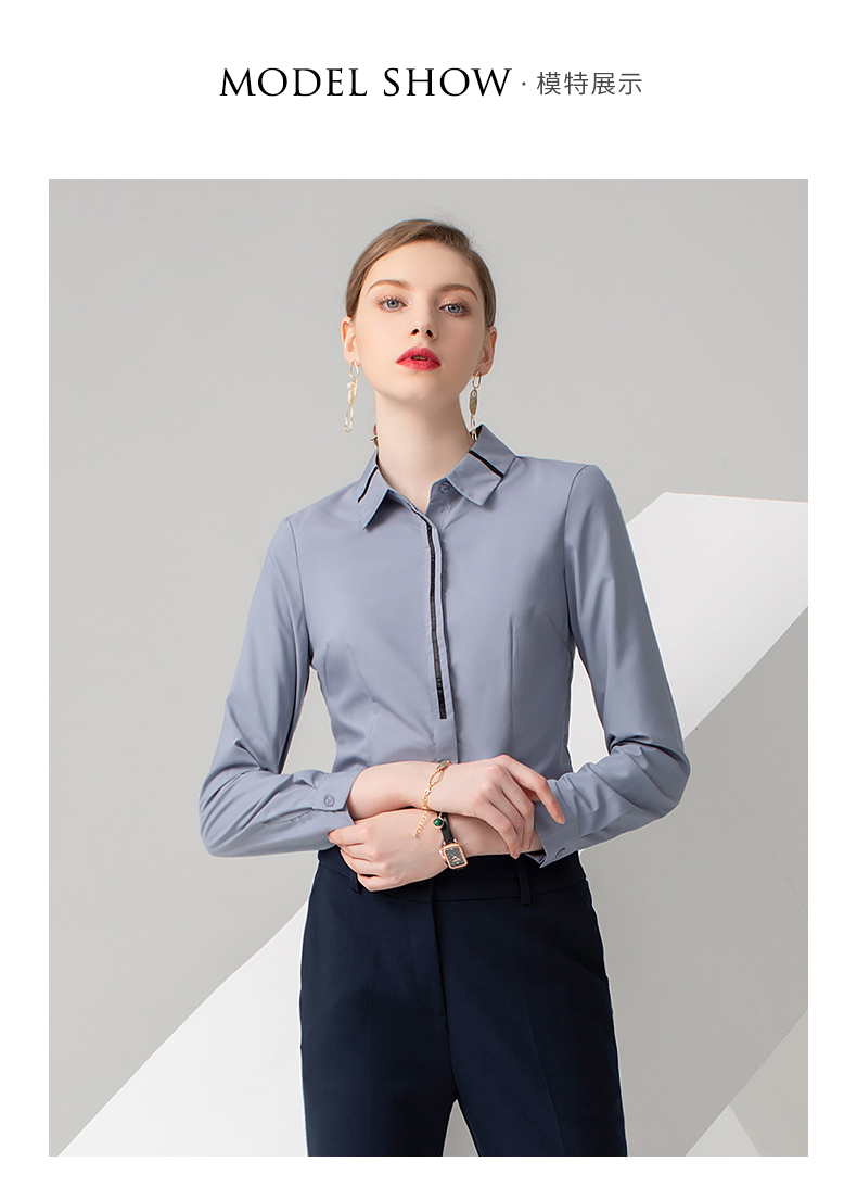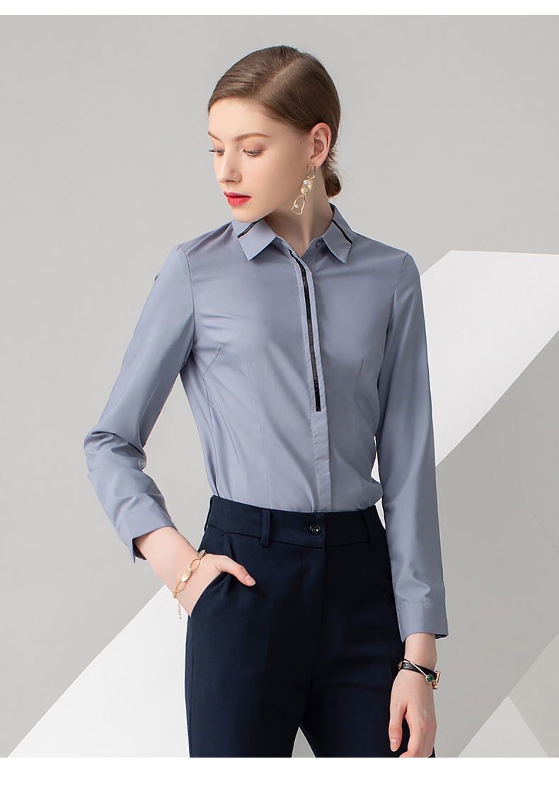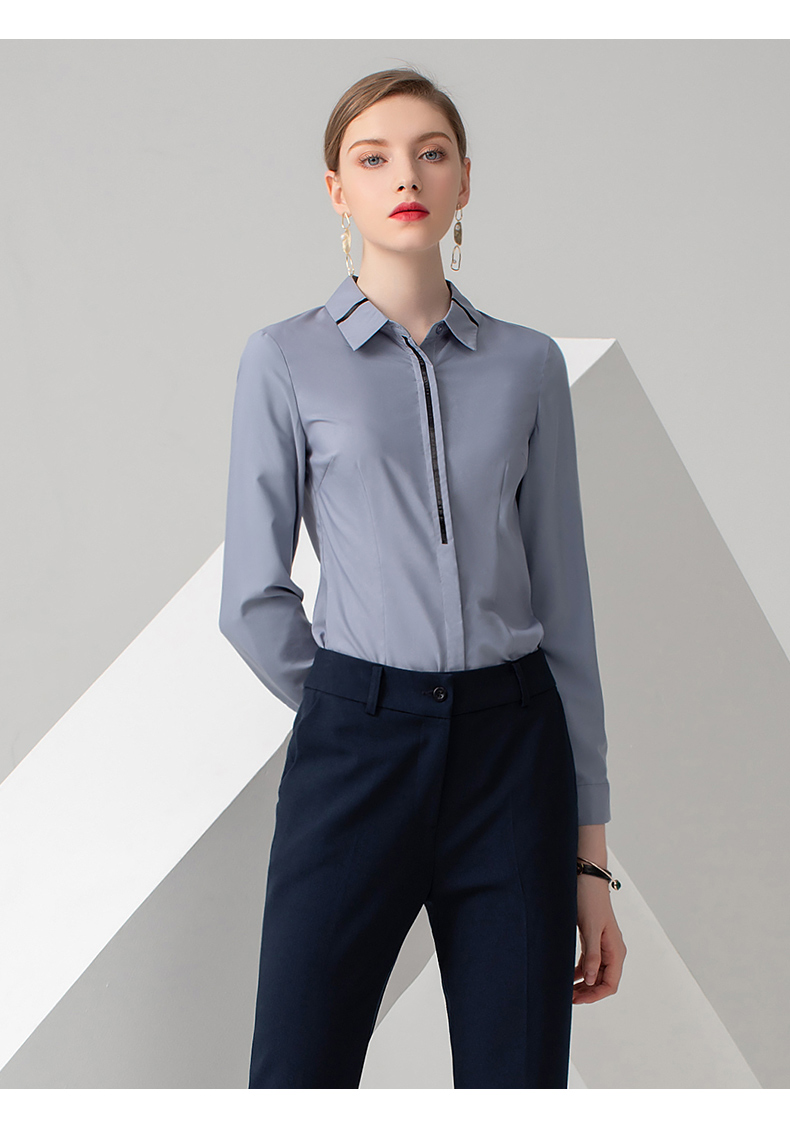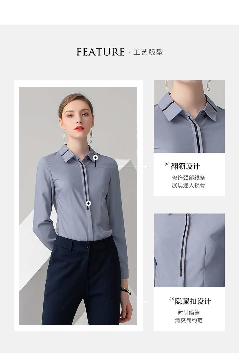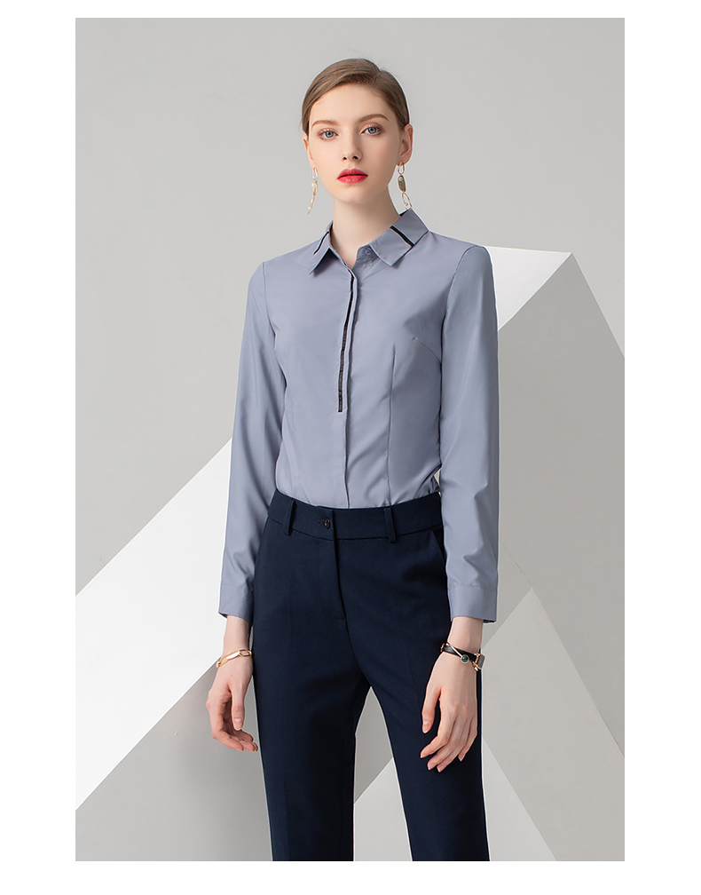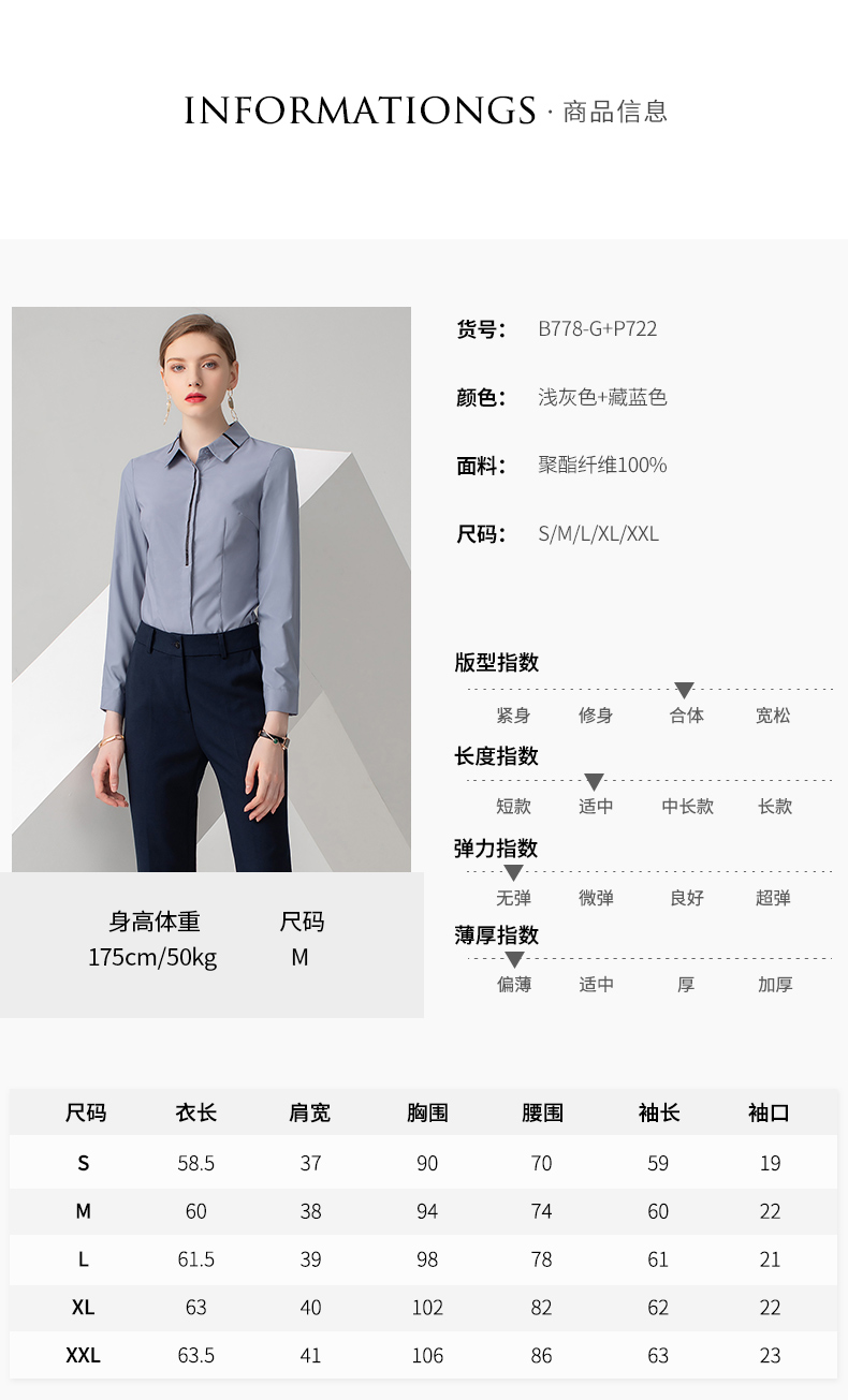 IWY/浅灰色长袖衬衫藏蓝色长裤套装B778+P722