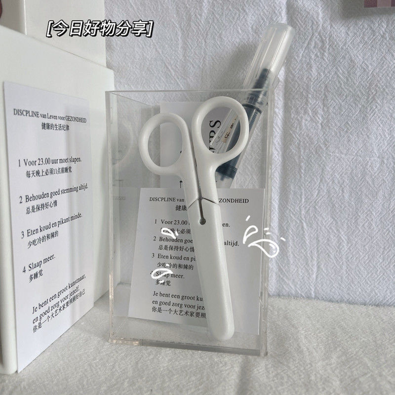 简洁白色便携式手工剪刀不锈钢美工带盖子安全剪刀儿童学生剪刀