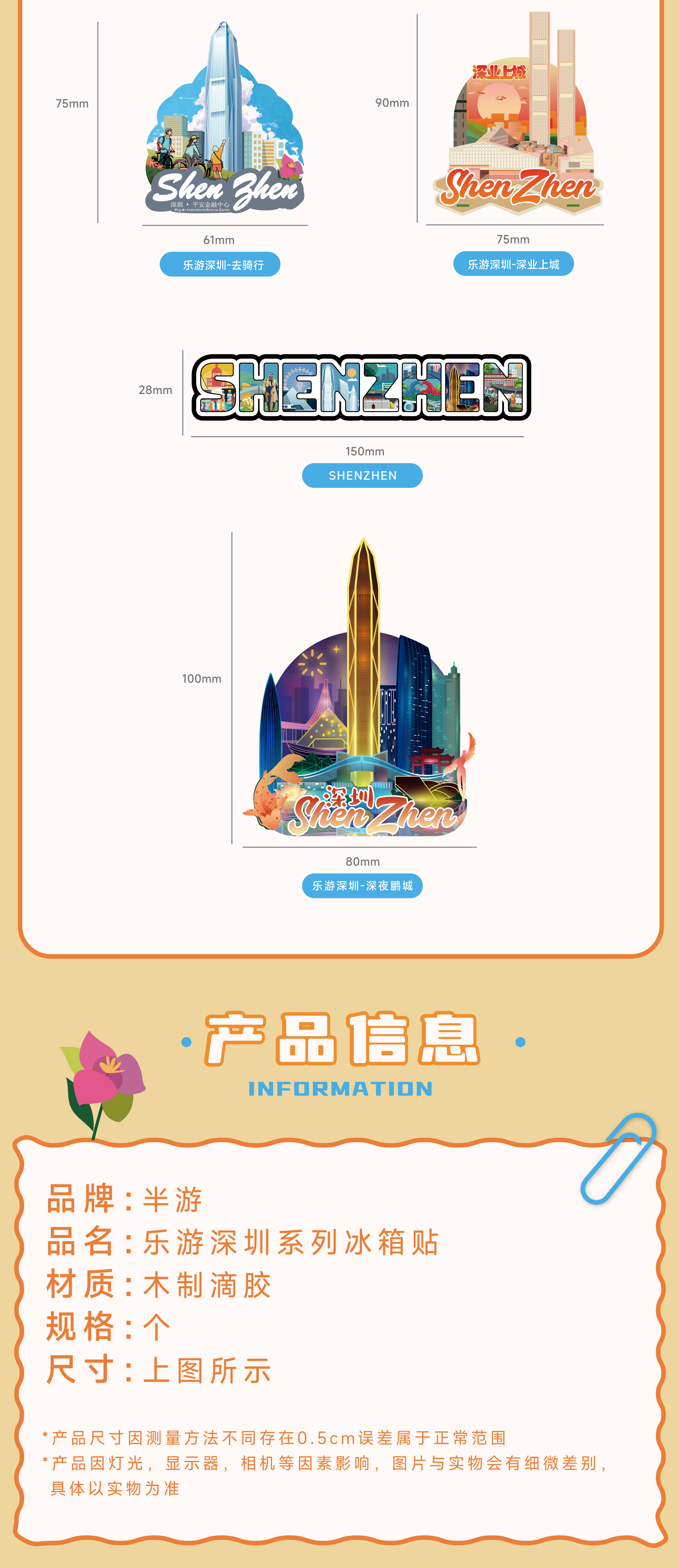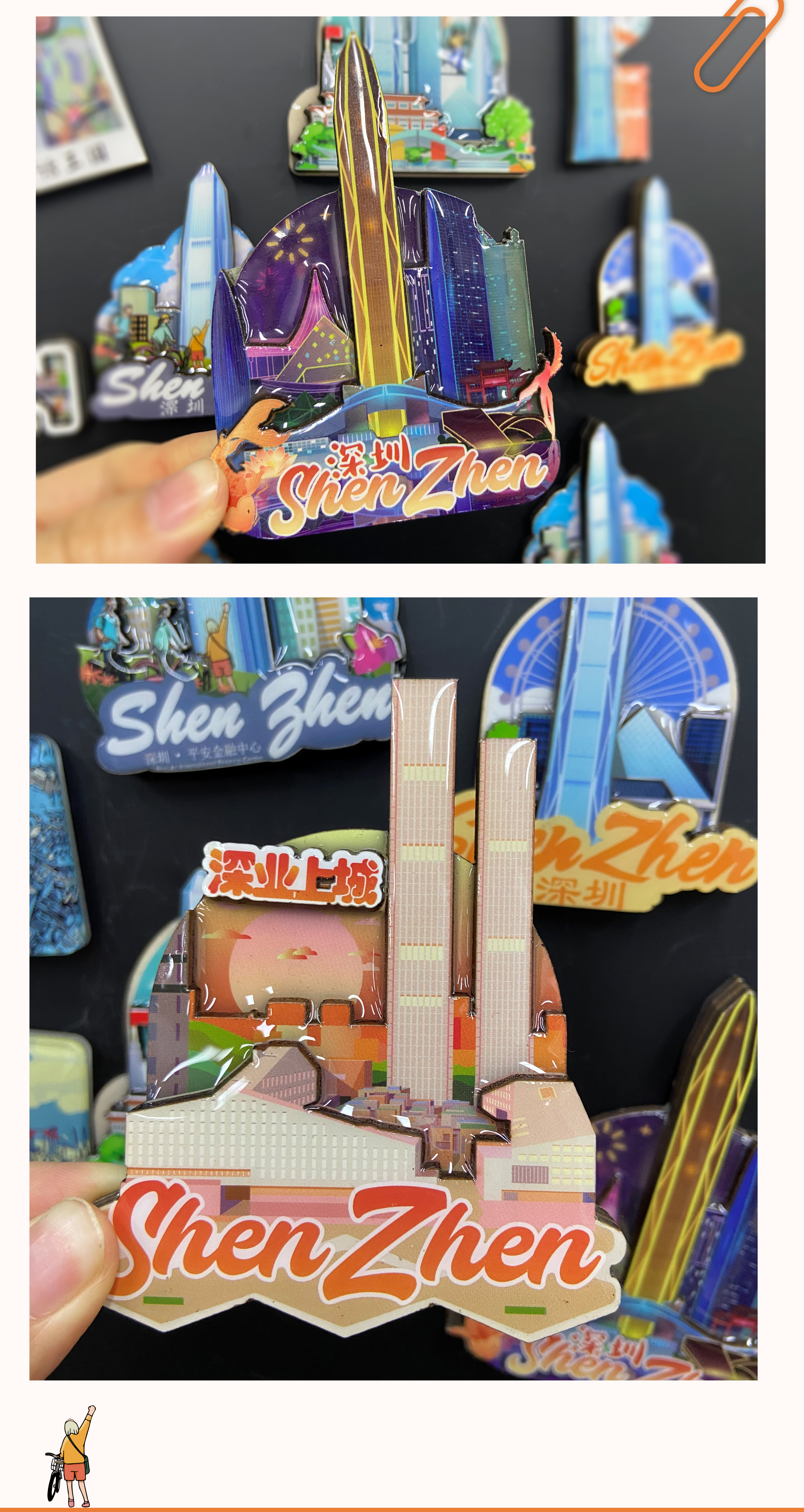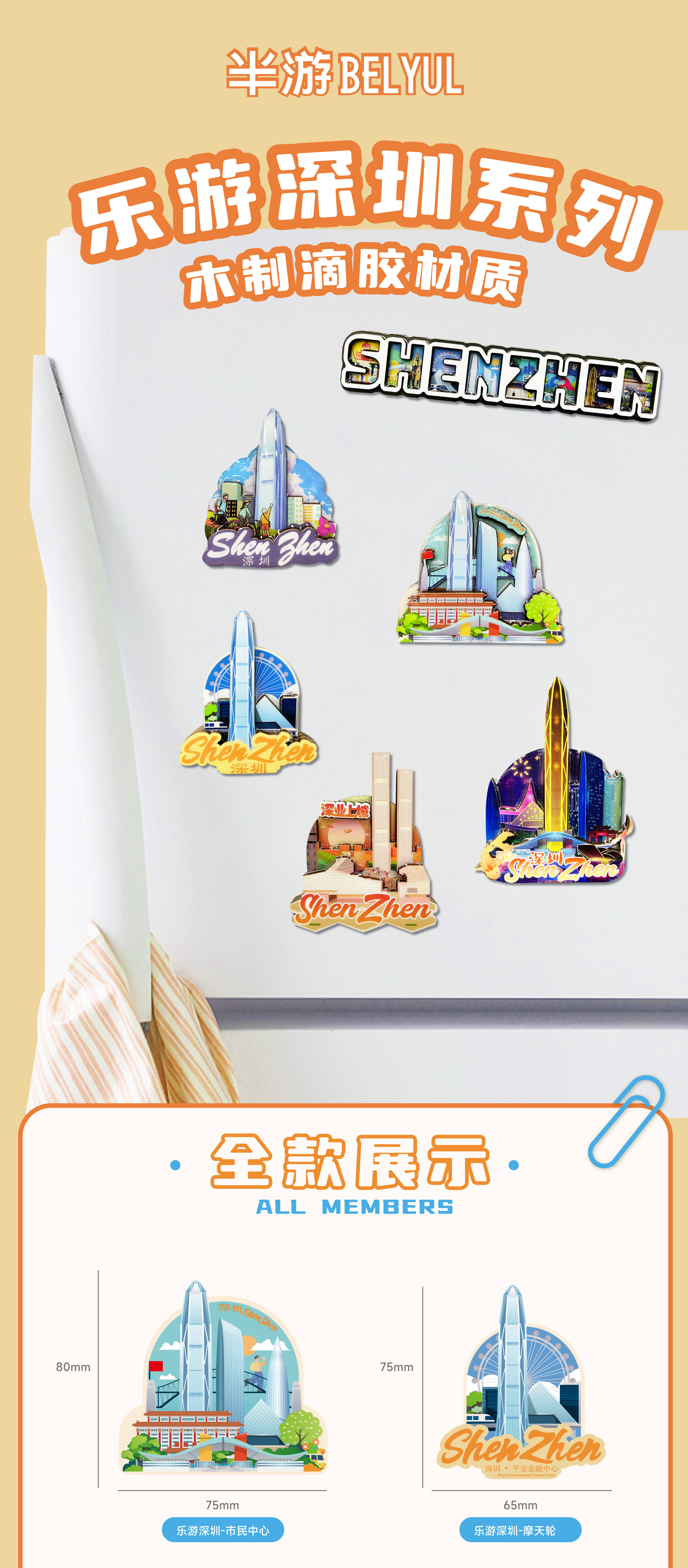 深圳手信 半游深圳印象木制滴胶冰箱贴