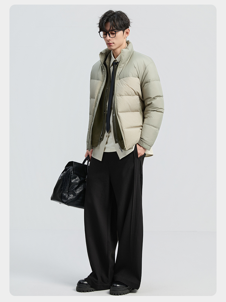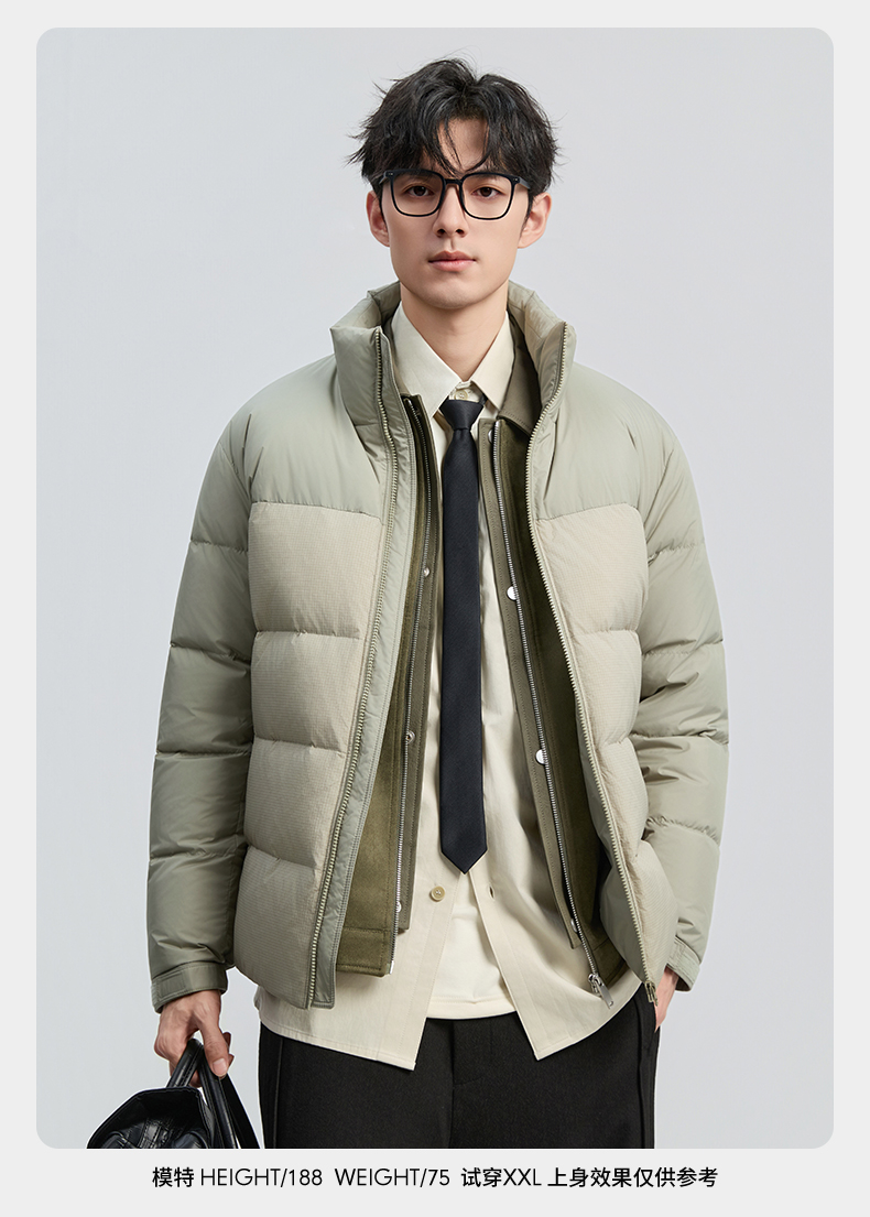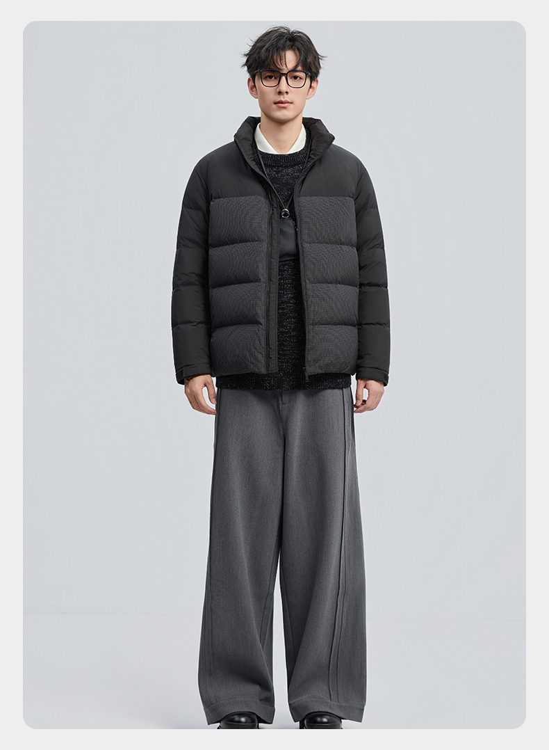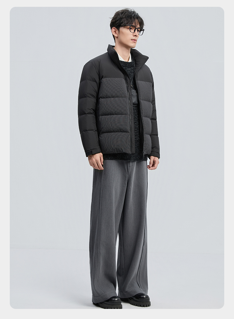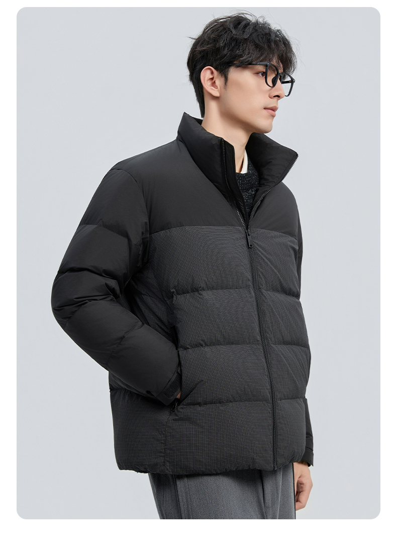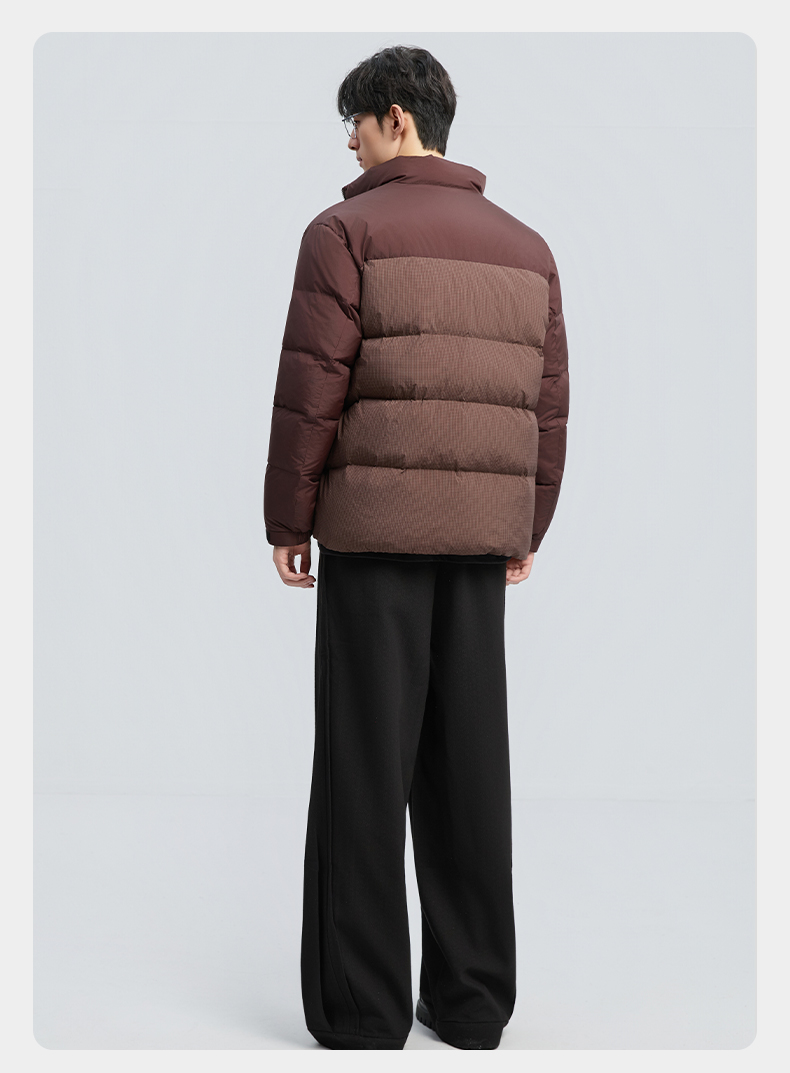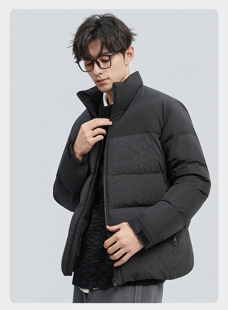 贝纳川冬季新品细格拼接立领面包ECF405261