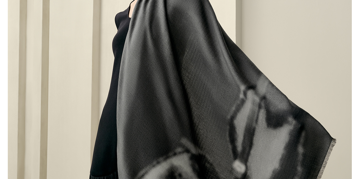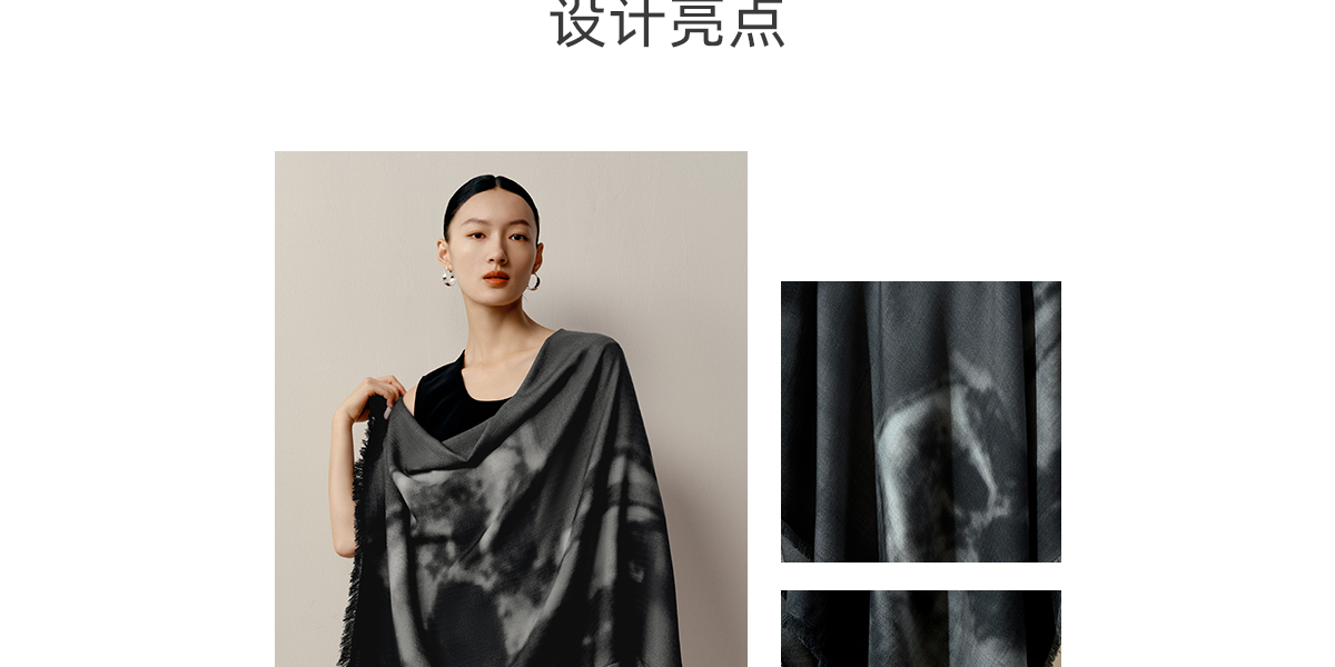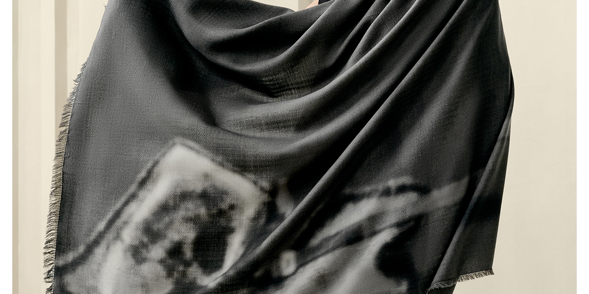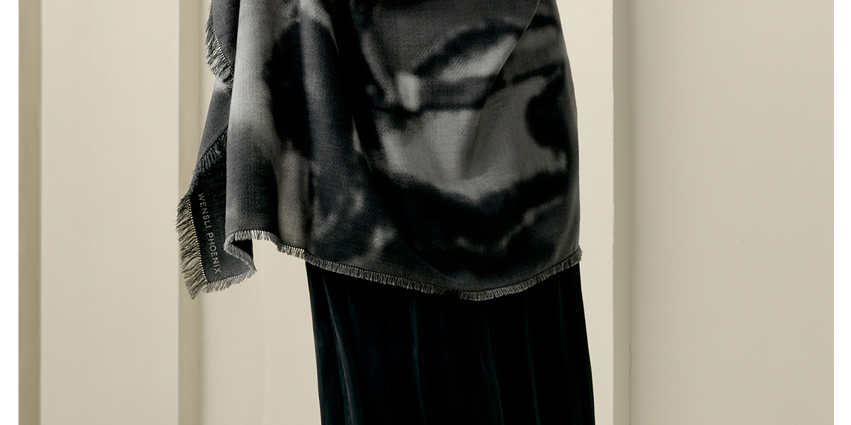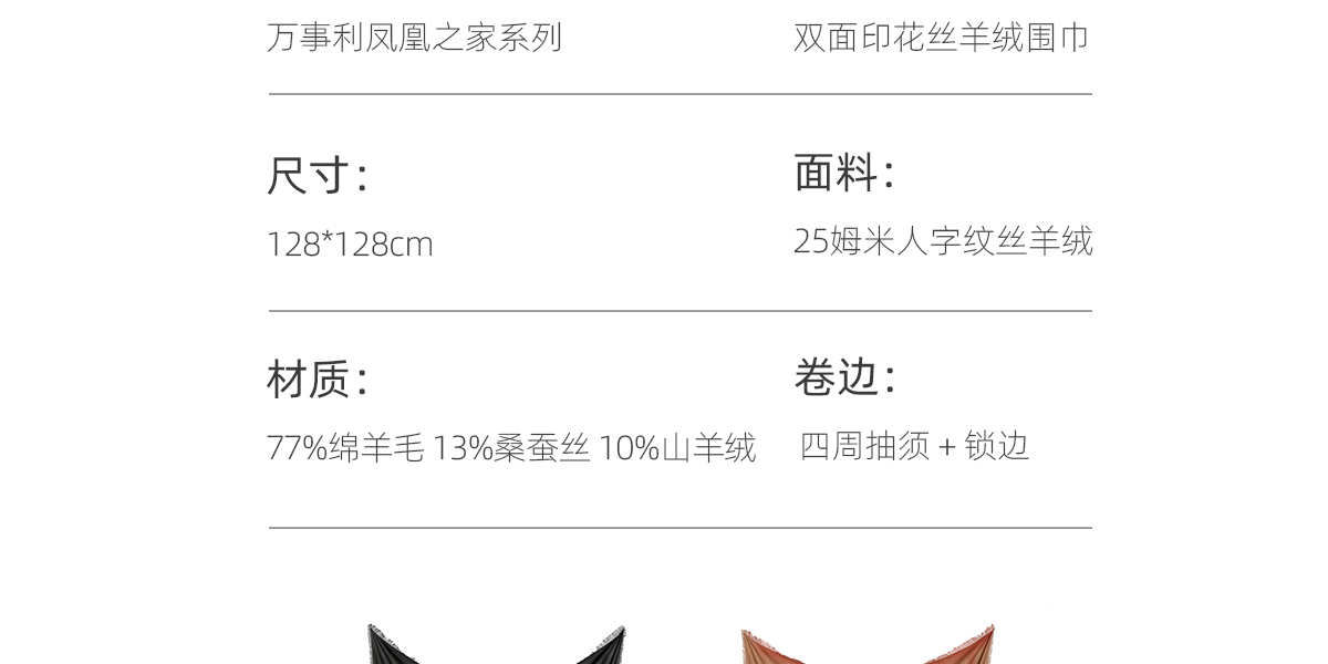 凤凰之家“爱与琴”128厘米双面印花丝羊绒围巾