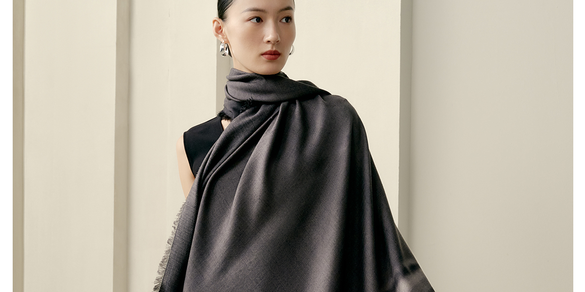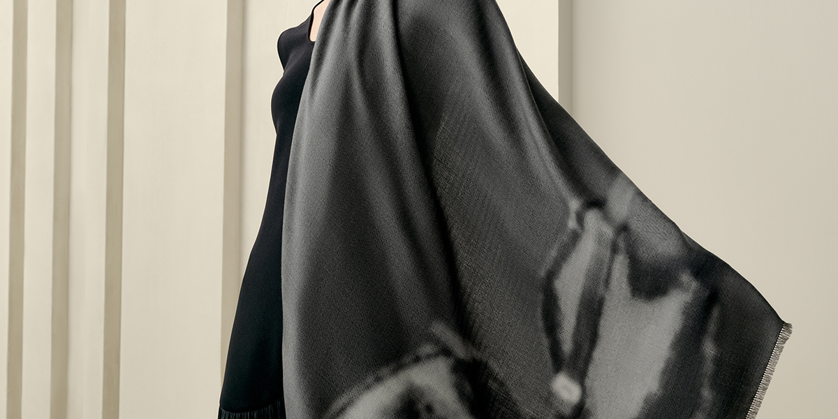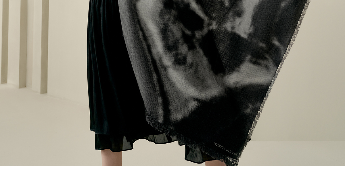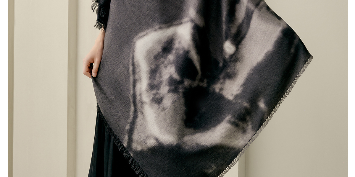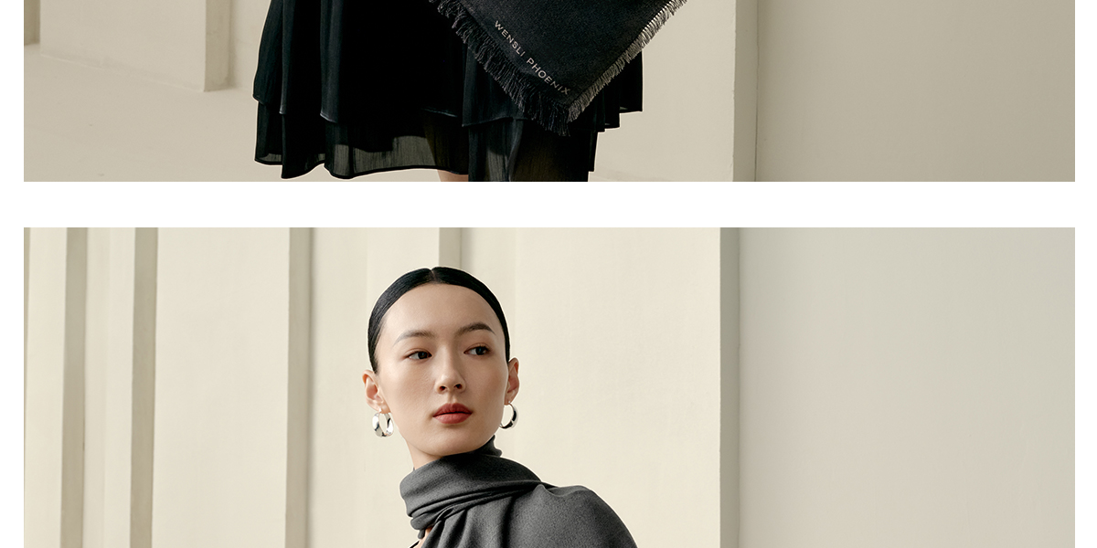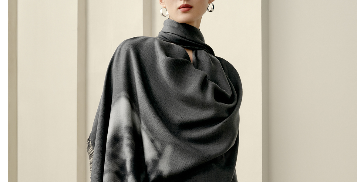 凤凰之家“爱与琴”128厘米双面印花丝羊绒围巾