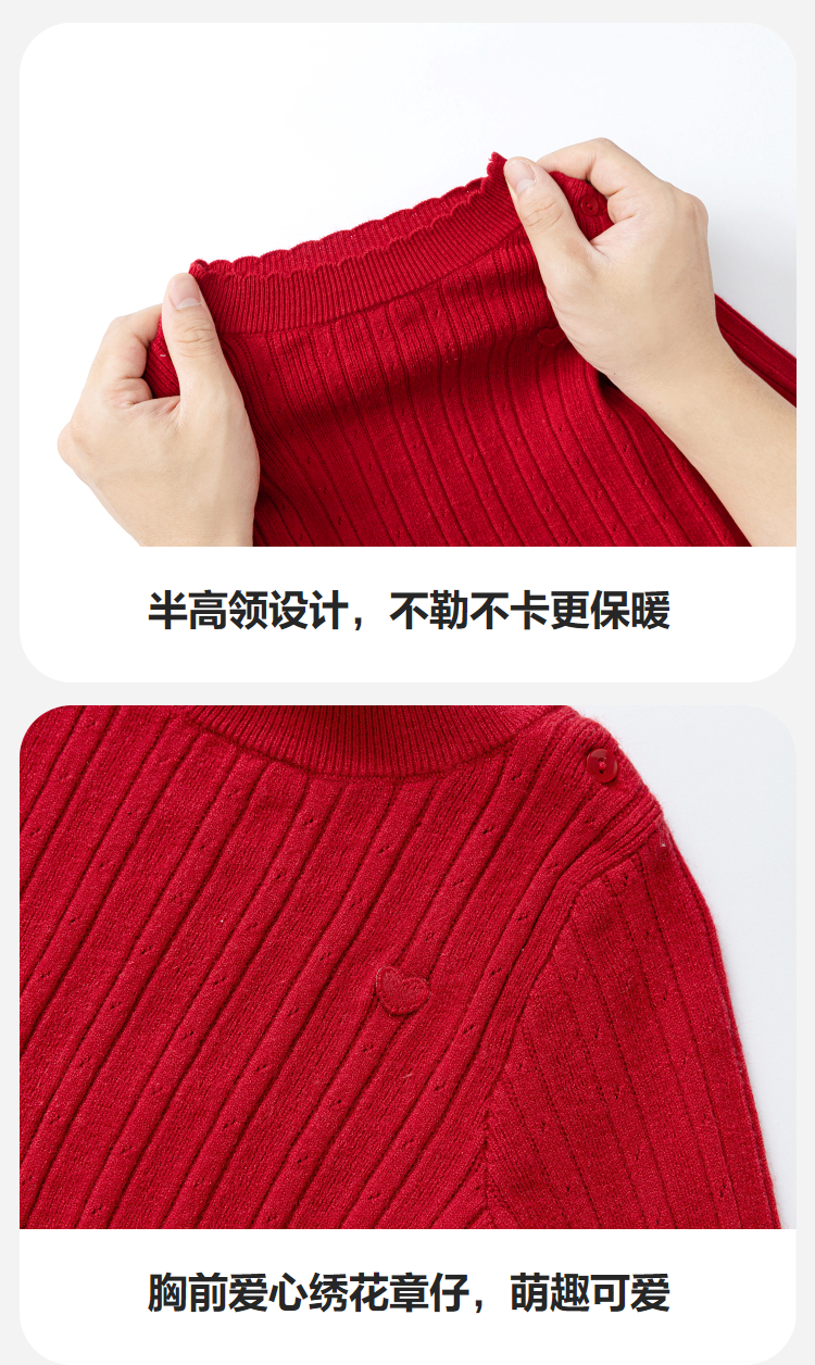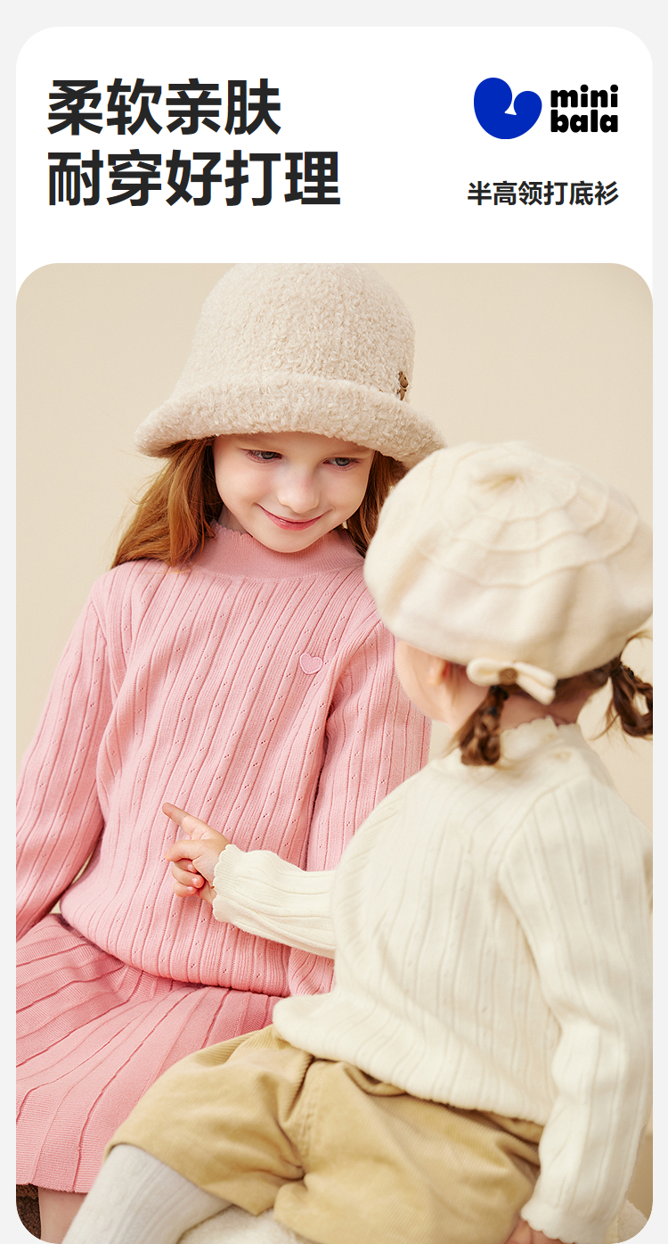 迷你巴拉女童宝宝半高领软毛衣打底衫亲肤温暖甜美2025冬新款