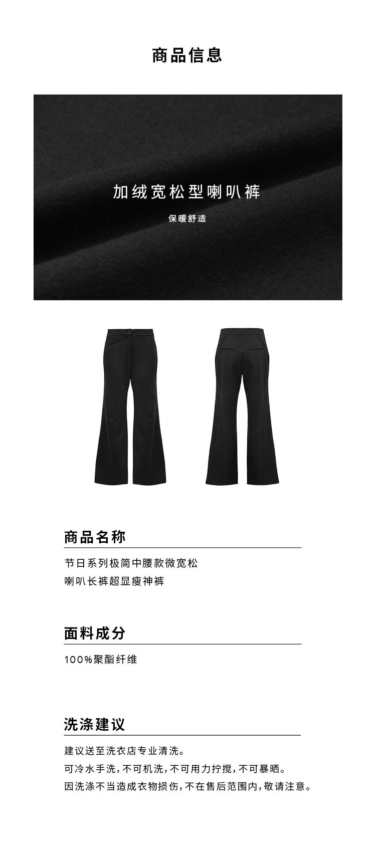 HIDEMI节日系列极简中腰款微宽松喇叭长裤超显瘦神裤