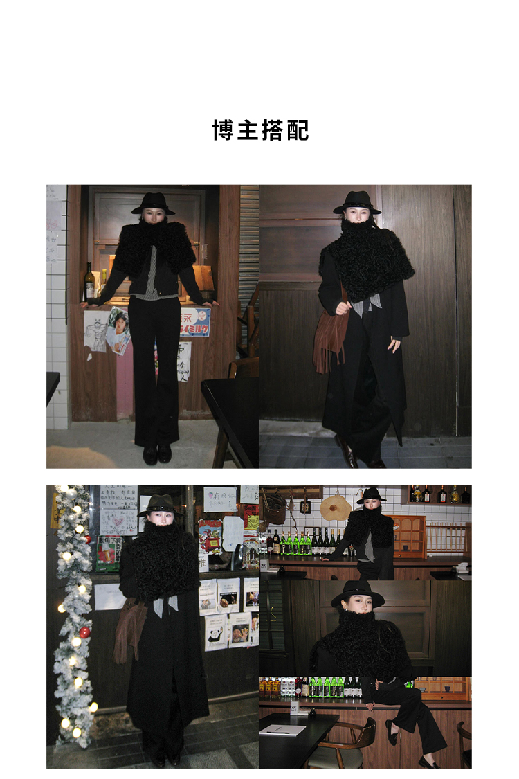 HIDEMI 美利奴羊毛趣味设计感连帽式围巾