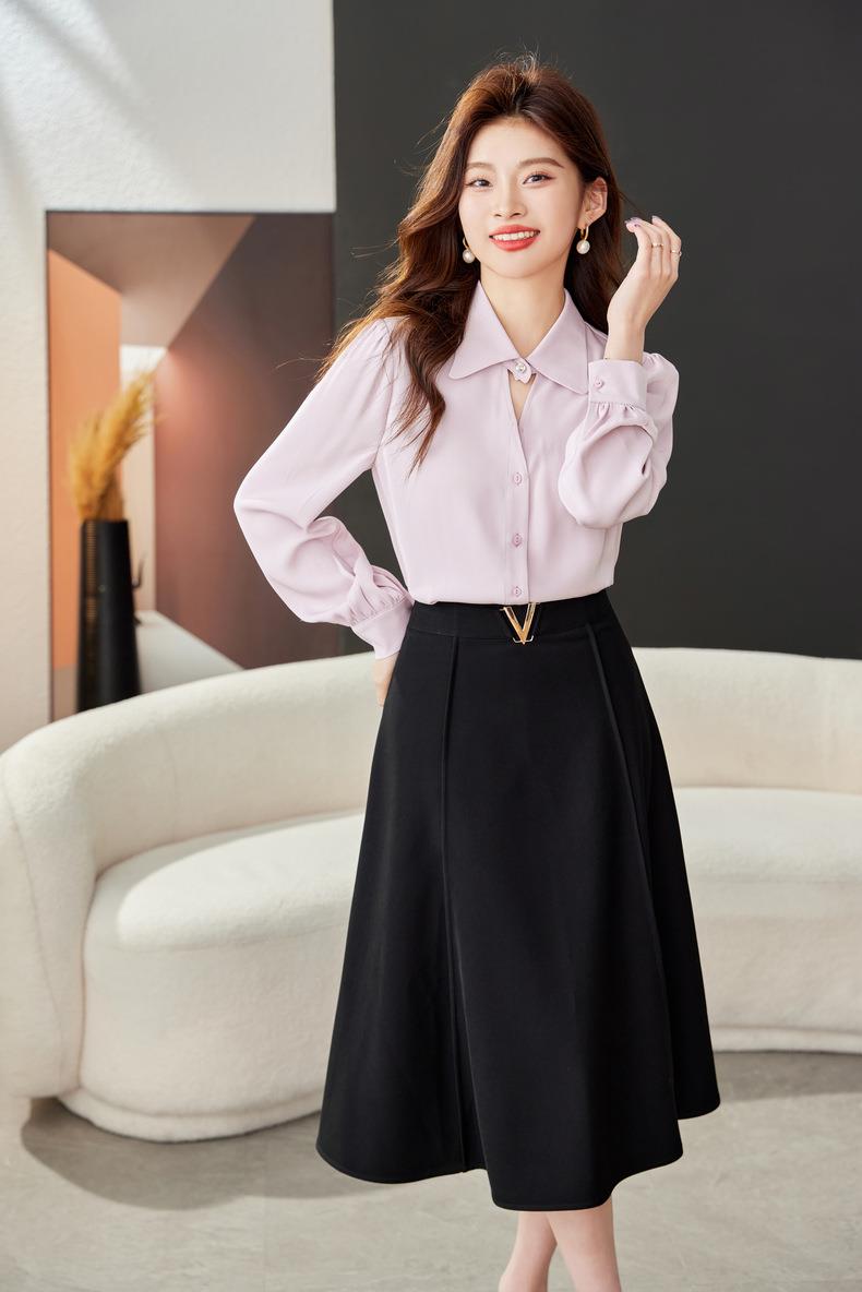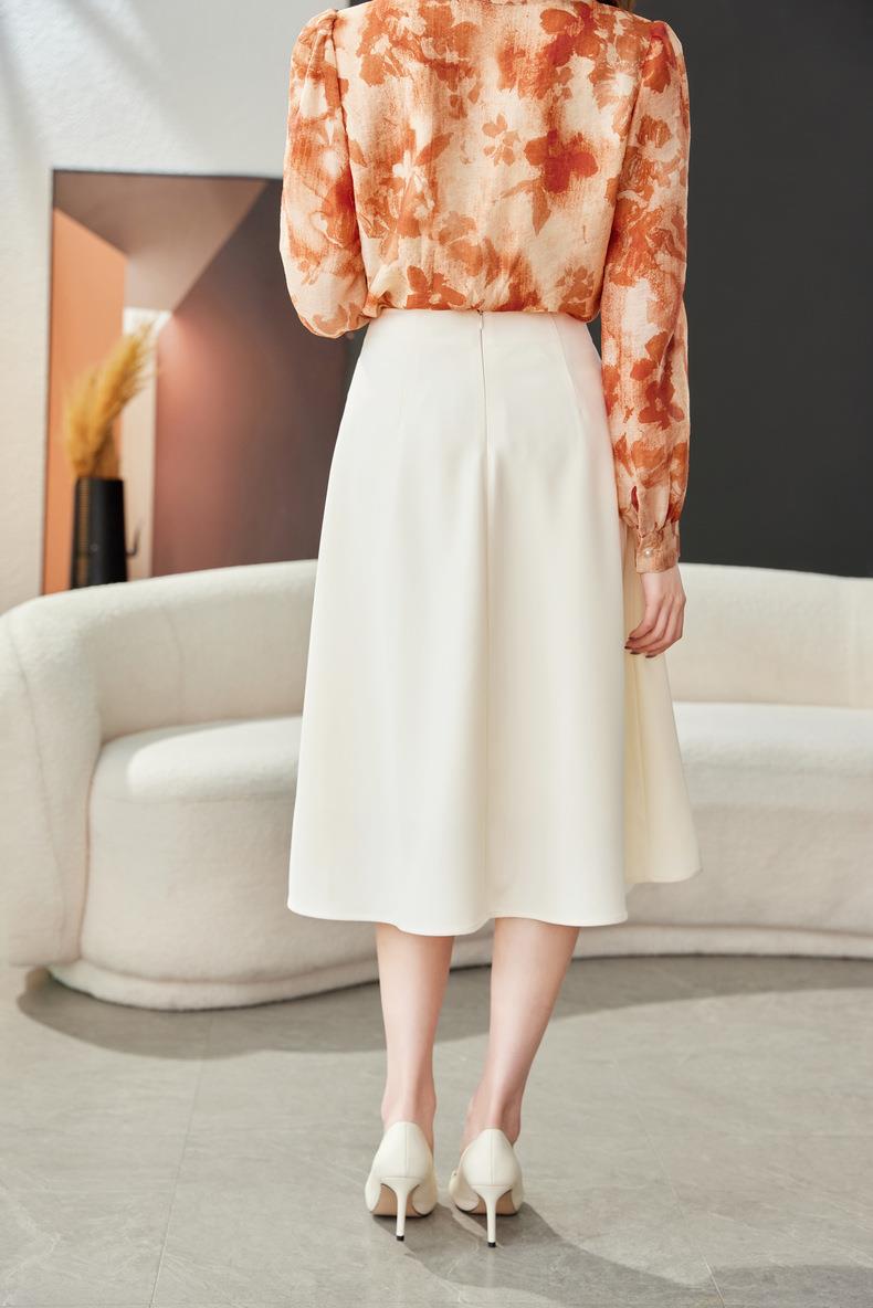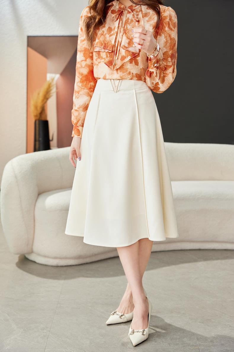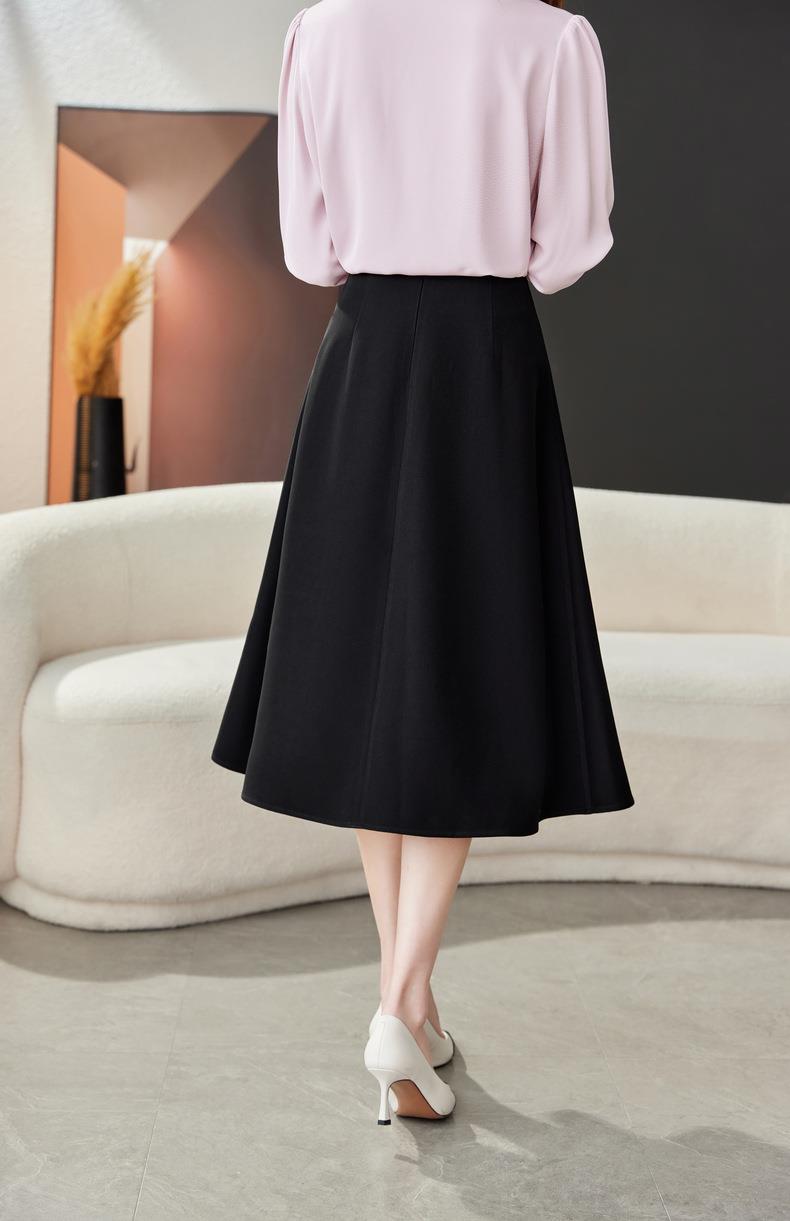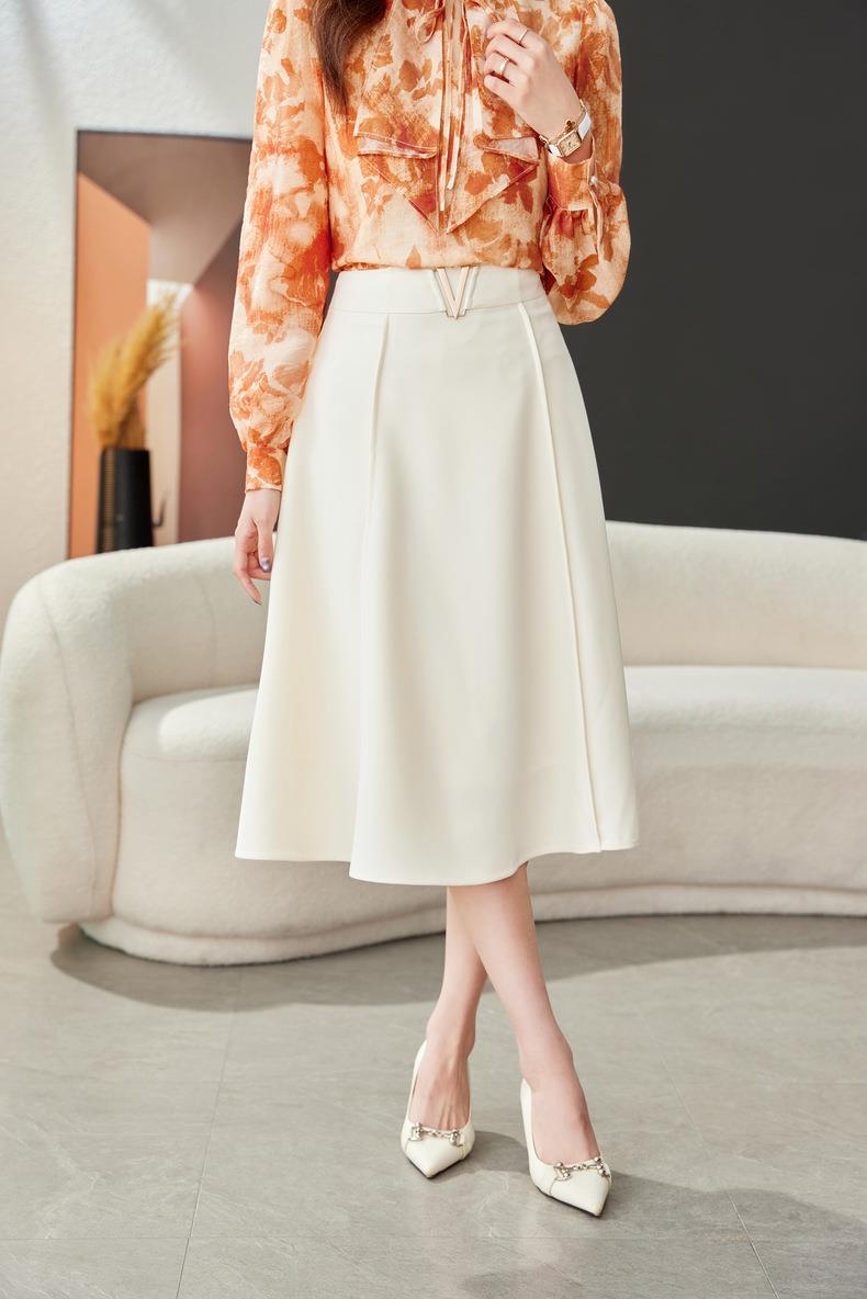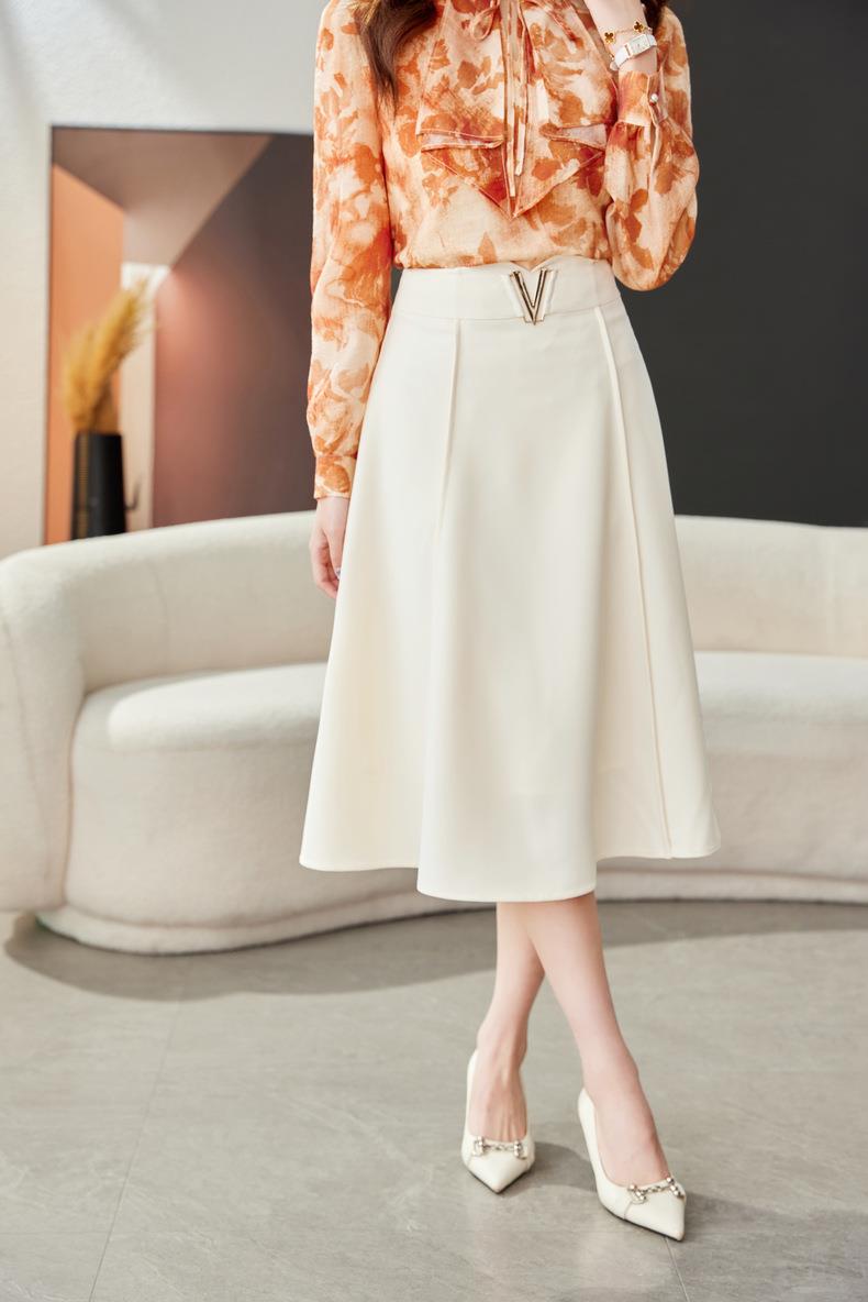 高腰垂感绿色半身裙2024春装新款金属V字扣A字中长裙伞裙1727