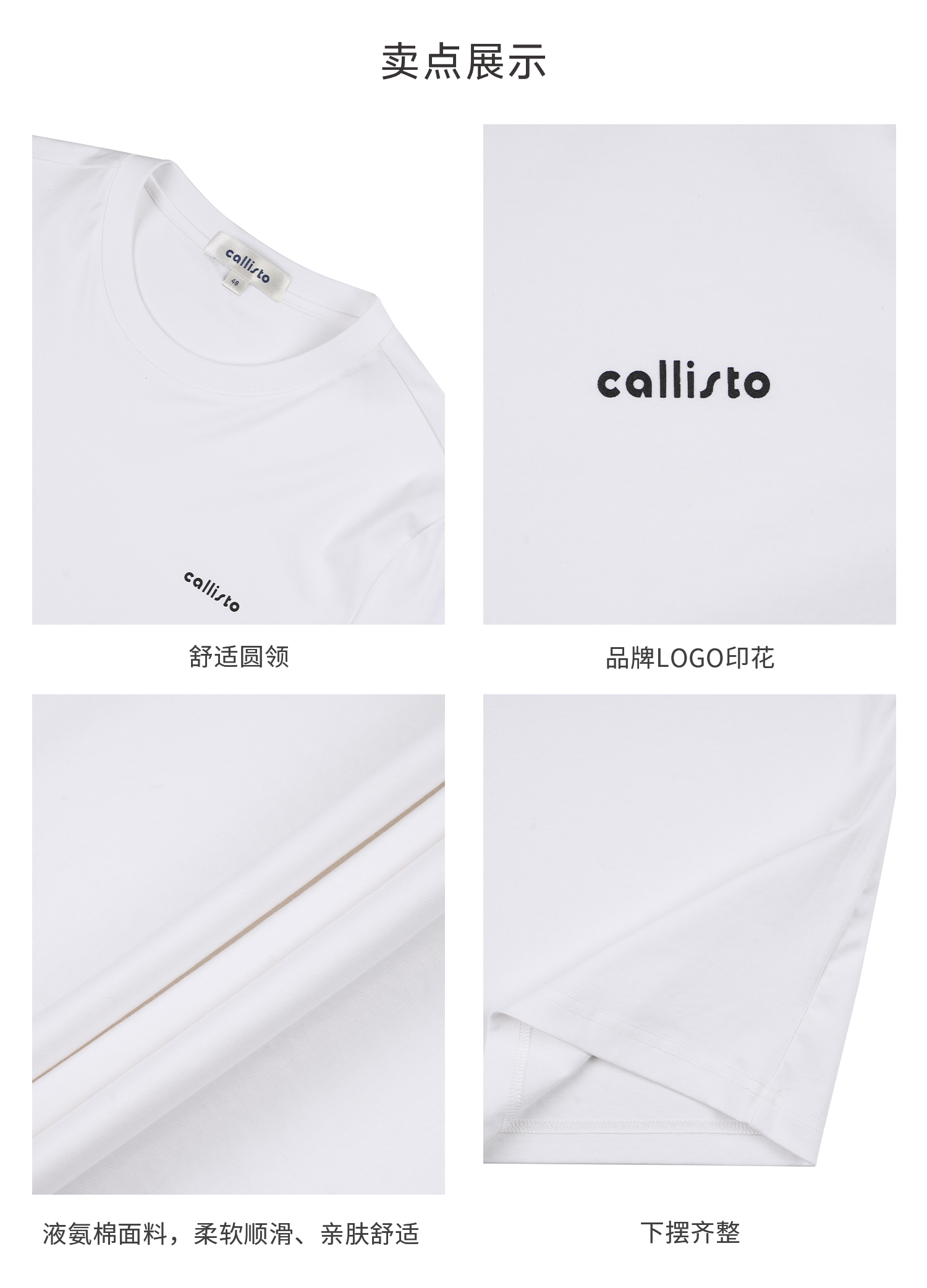 callisto白色液氨棉基础logoT恤