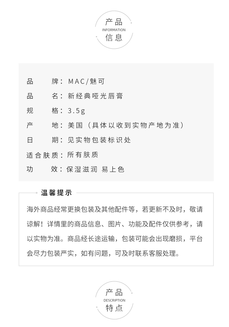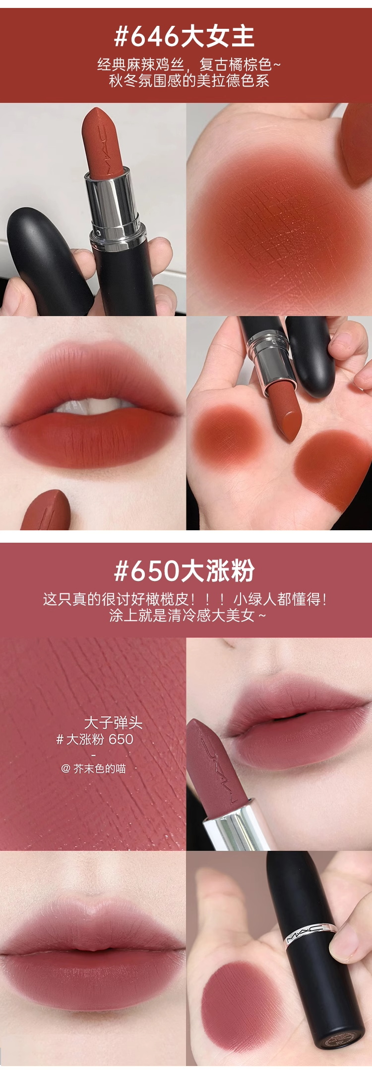 MAC/魅可大子弹头口红唇膏哑光滋润显色显白602/616/646/662/691【CDF】