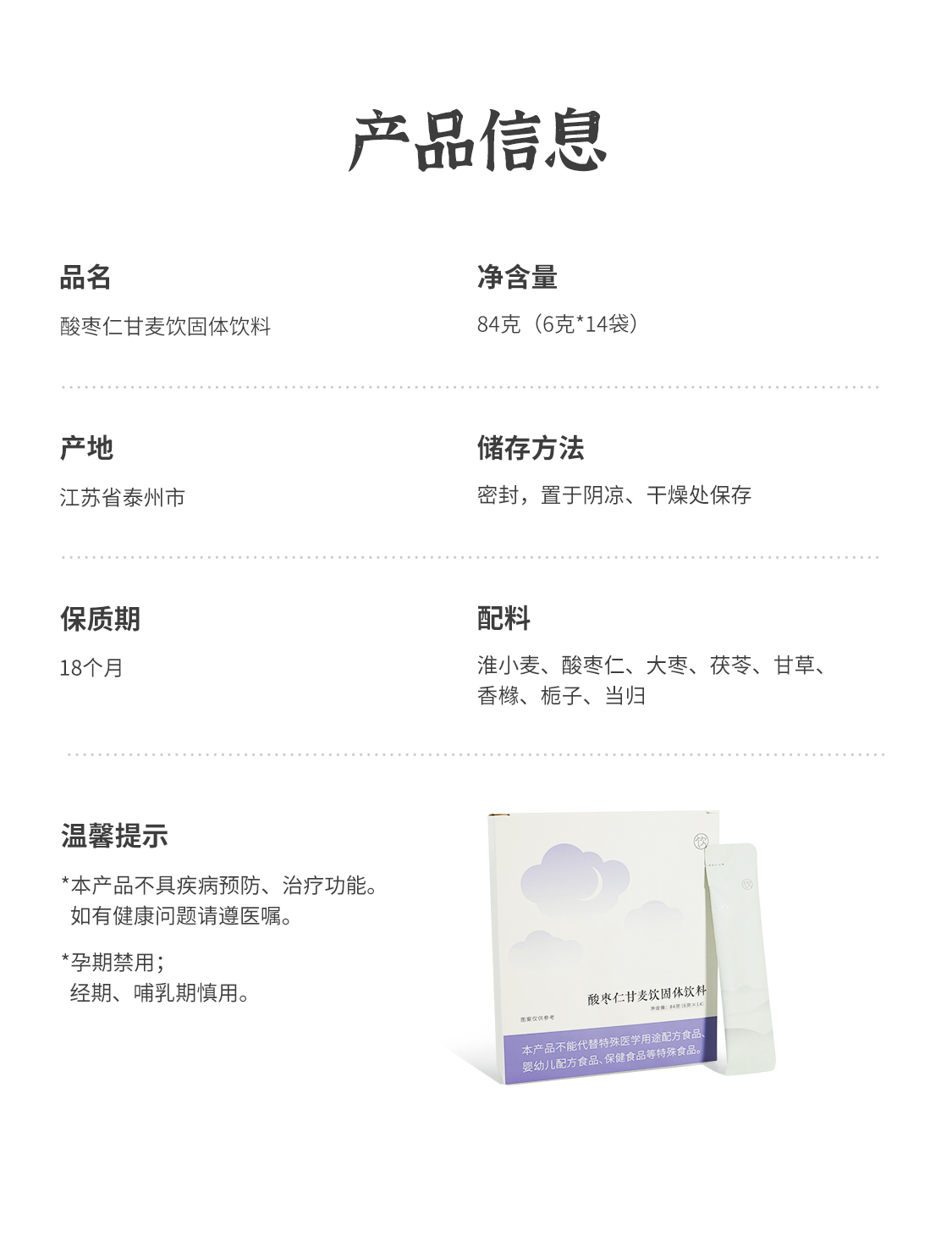 【酸枣仁甘麦饮】美梦整晚 舒缓放松 植物萃取固体饮料 84g(6gx14条)zy