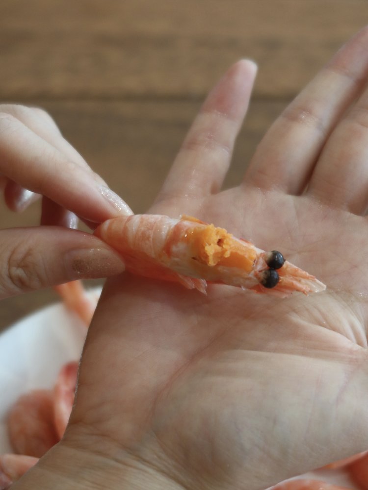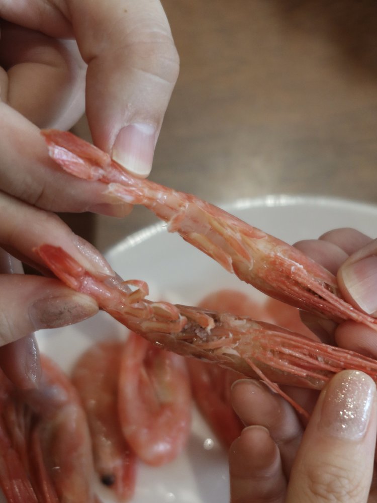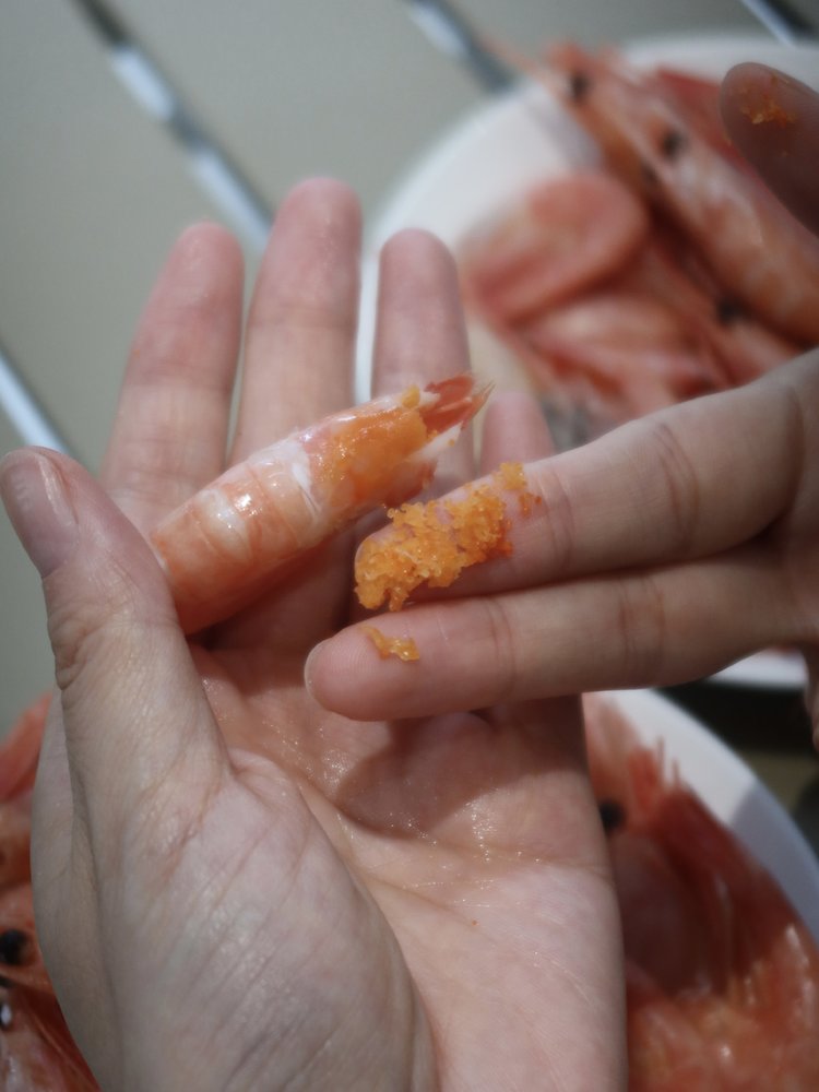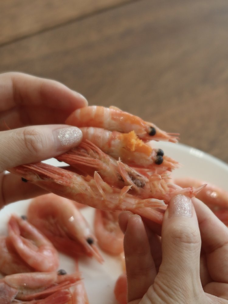 甜虾剥不剥壳都可以,自带的海洋味道加上小火加热,是和吃平时买的虾完全不一样的体验呢!