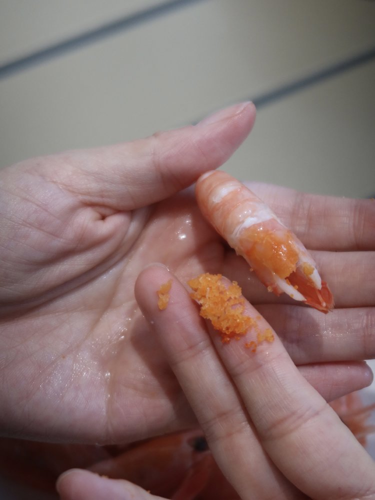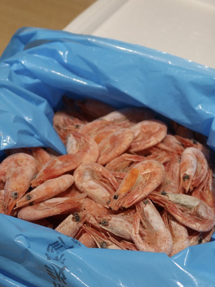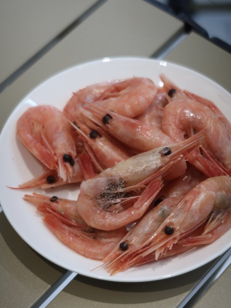 新鲜的北极甜虾带着一些冰碴的口感更好哦