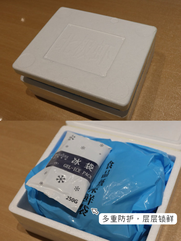 【商品包装】高密度泡沫箱+冰袋+干冰+彩色礼盒箱