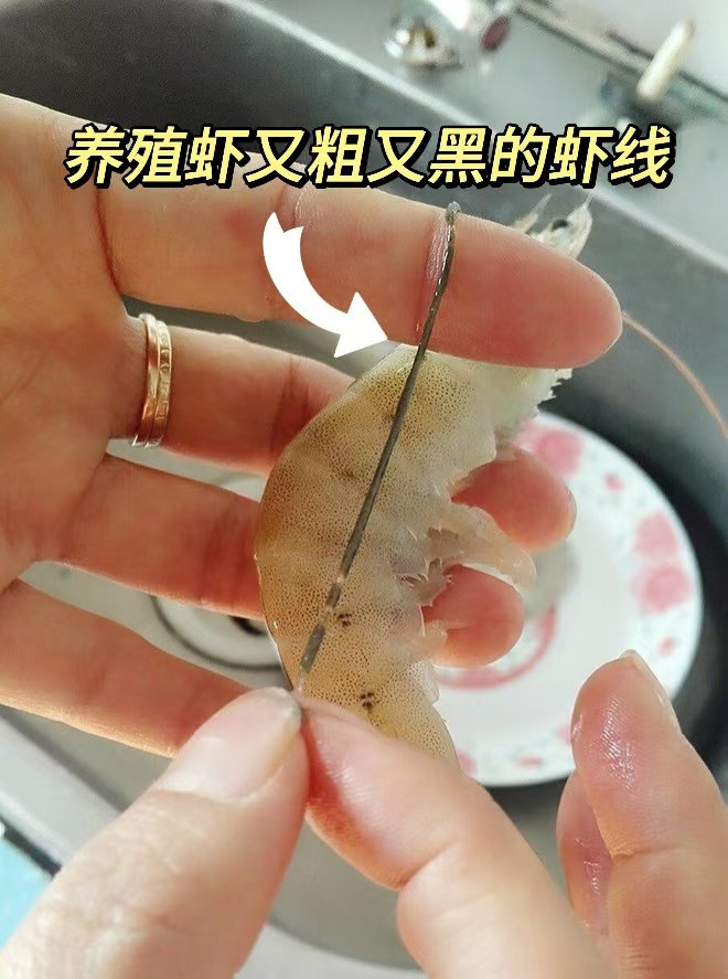 比如:黑色的虾线、不知名液体的虾头、 虾线等