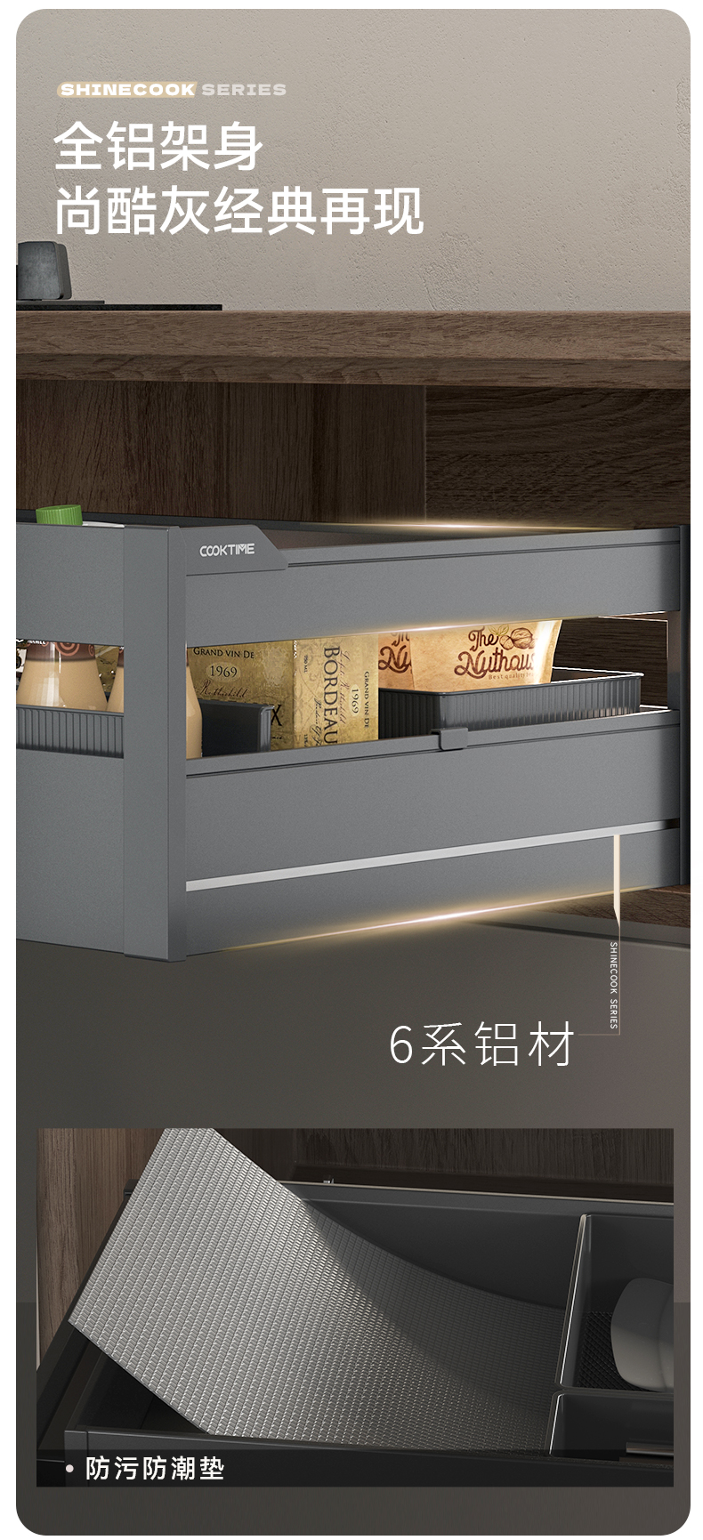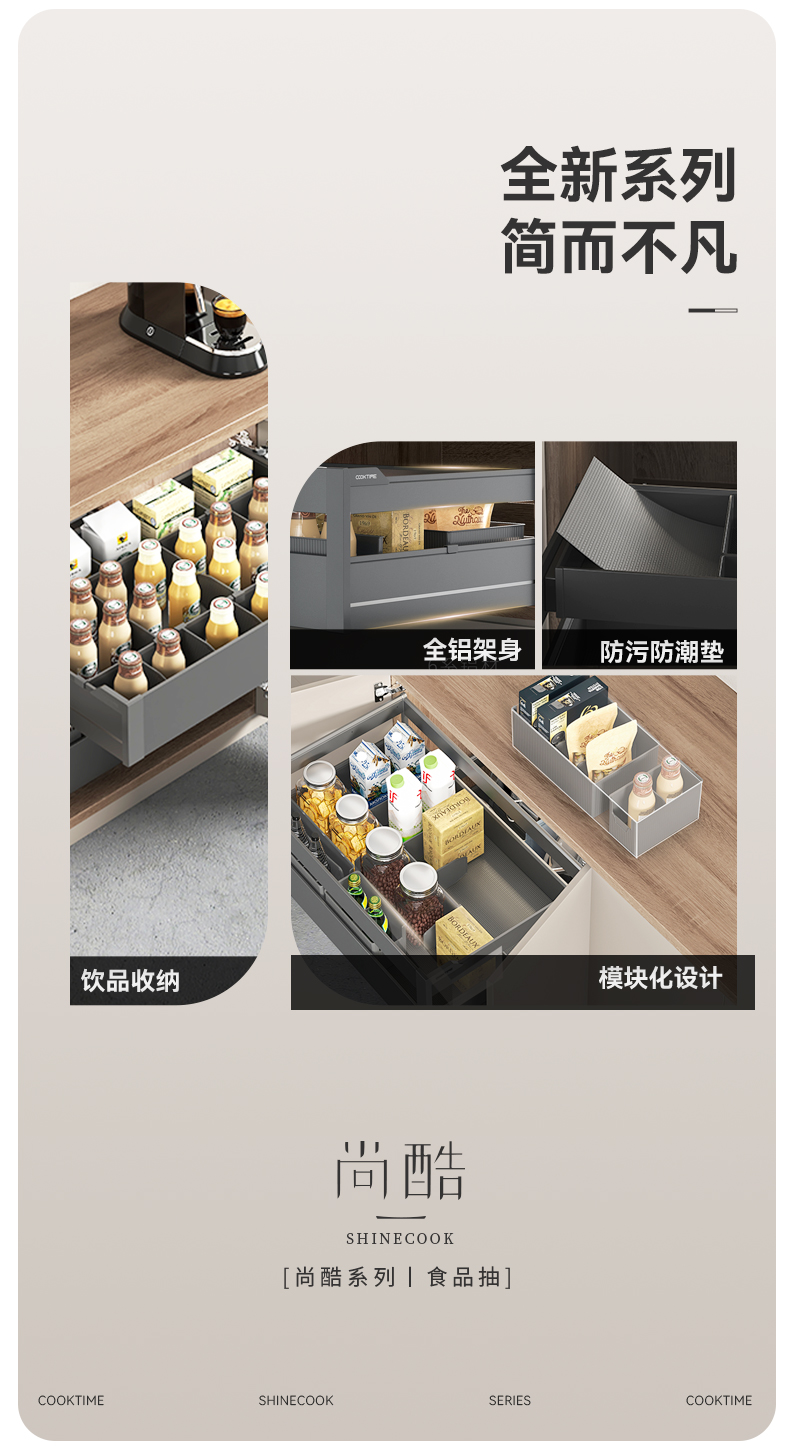 - 酷太坚持8年自主研发,已获得专利证书130项,拥有一套领先市场的厨房收纳系统,为千万中国家庭解决厨房脏乱差,缔造厨房新生活。