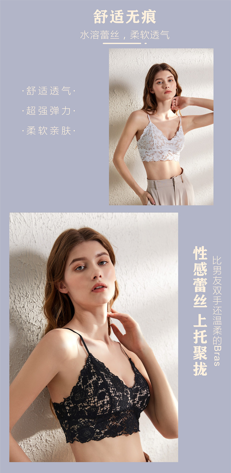 YANECINE 法式吊带水溶花精致蕾丝内衣