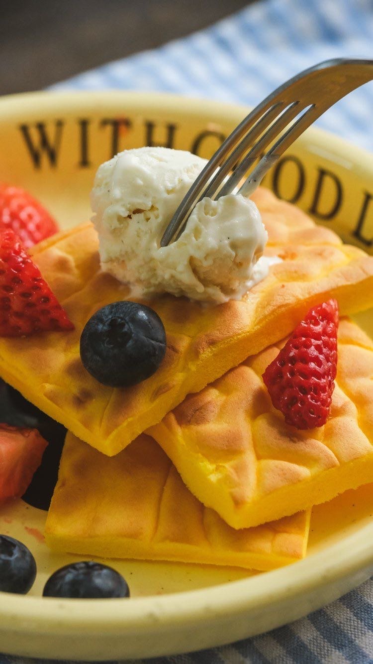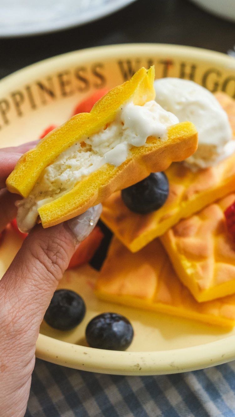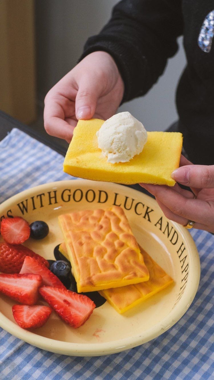 热烘烘的虎皮蛋糕,外酥内软,裹挟着圆滚滚、透心凉的冰淇淋球。一冷一热,一冰一暖,两种极致口感在口腔里激烈碰撞又完美交融,冰火两重天的奇妙体验,好吃到超乎想象,为你解锁甜品新境界