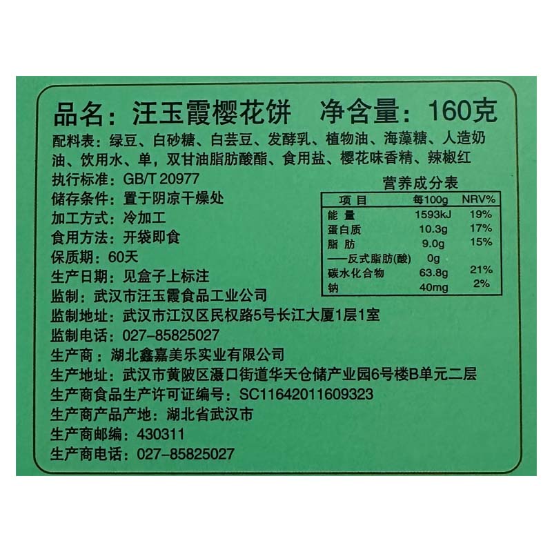 武汉 供销荆选汪玉霞樱花饼160g