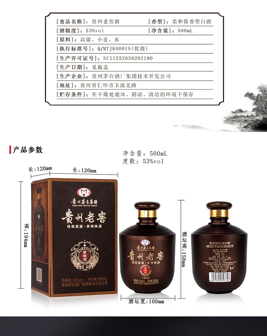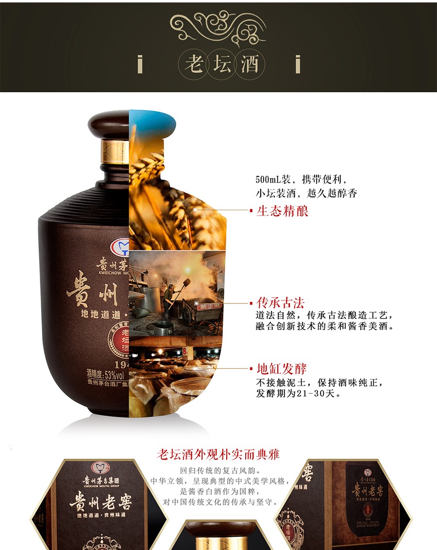 【贵州茅台集团】 贵州老窖老坛酒1949 53度柔和酱香型礼盒装坛子酒