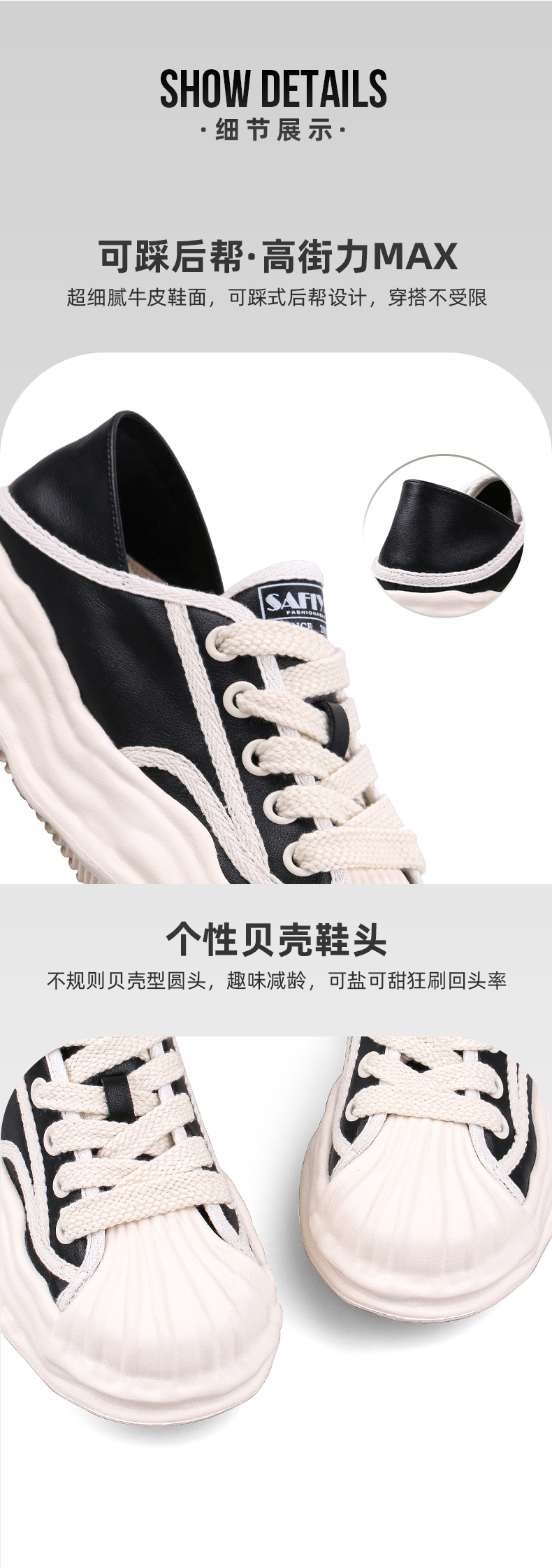 Safiya/索菲娅 新潮设计感2022秋季新款小众个性贝壳头溶解休闲鞋 SF23112423