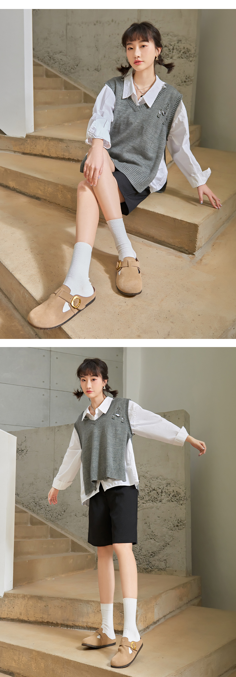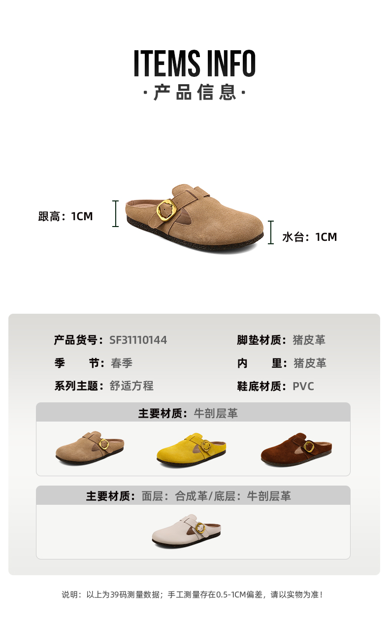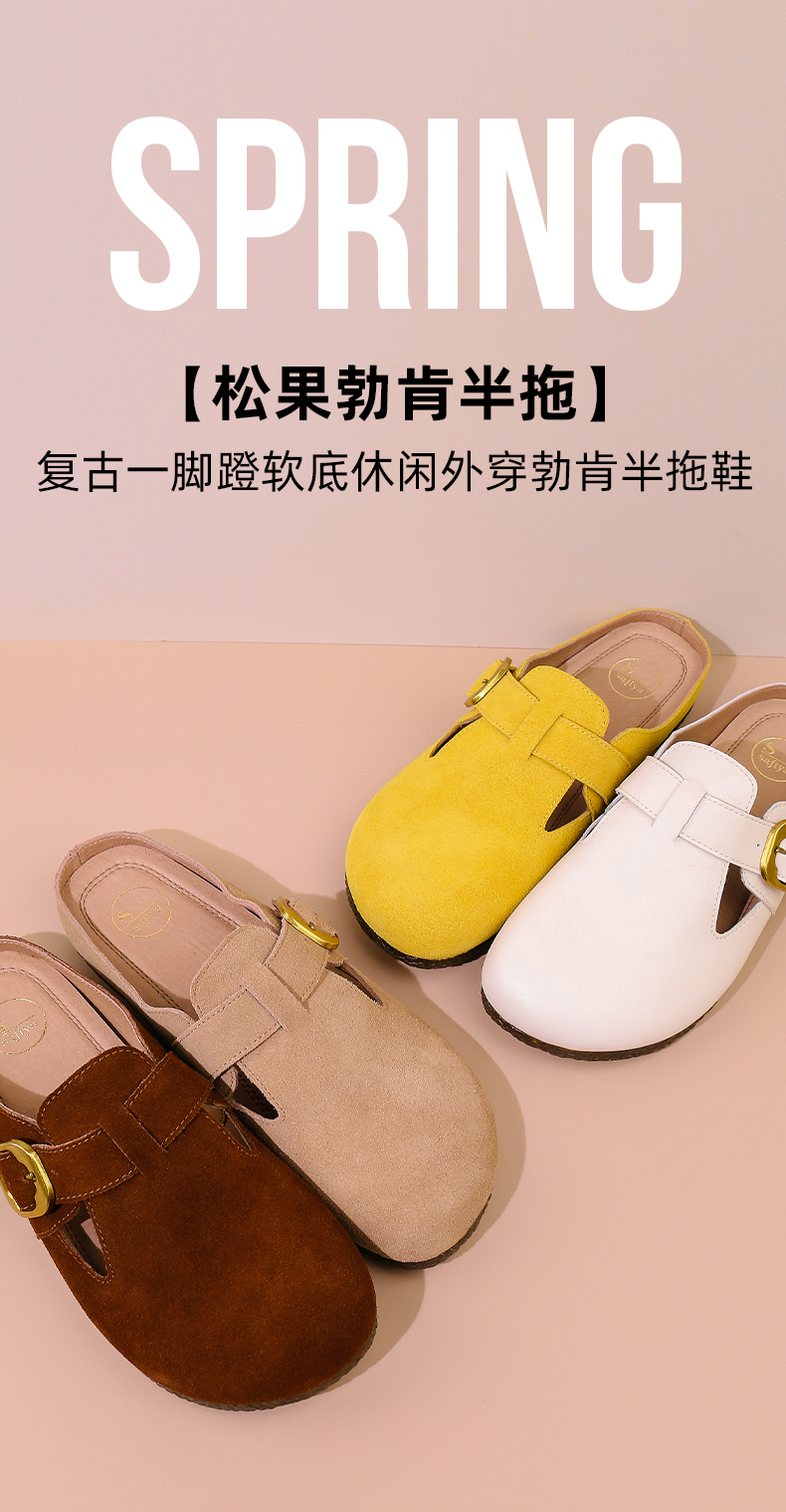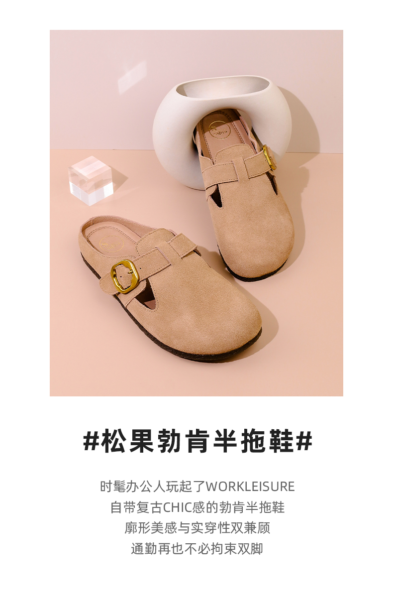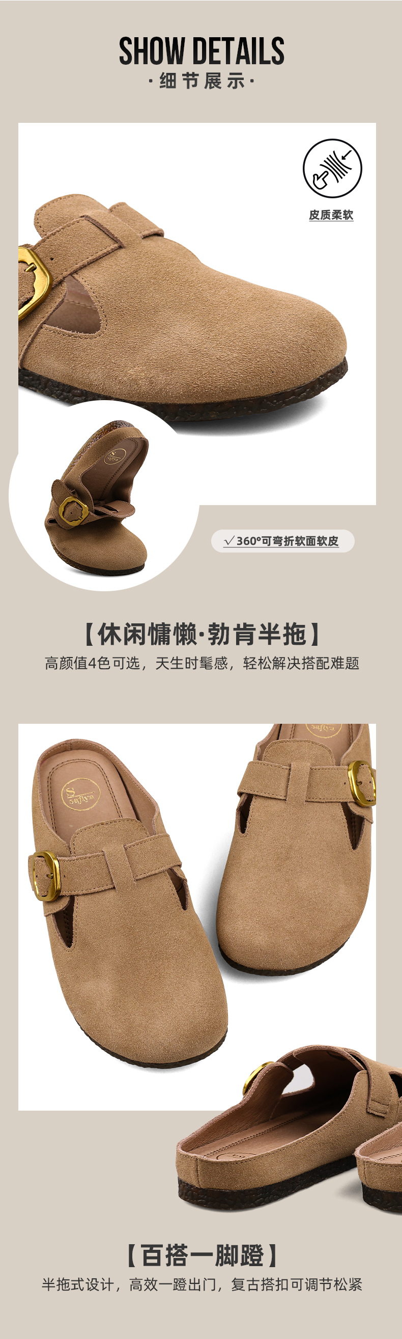 Safiya/索菲娅 复古一脚蹬2023年春季新款软底休闲外穿勃肯半拖鞋 SF31110144