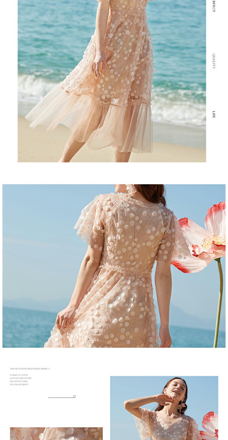 欧芮儿夏装新款短袖V领网纱连衣裙女中长款气质显瘦收腰A字裙