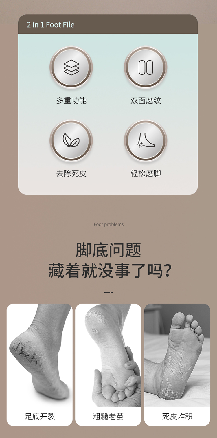 FaSoLa二合一脚锉去死皮老茧脚板锉家用脚后跟修脚工具刮脚低皮搓脚板磨脚器
